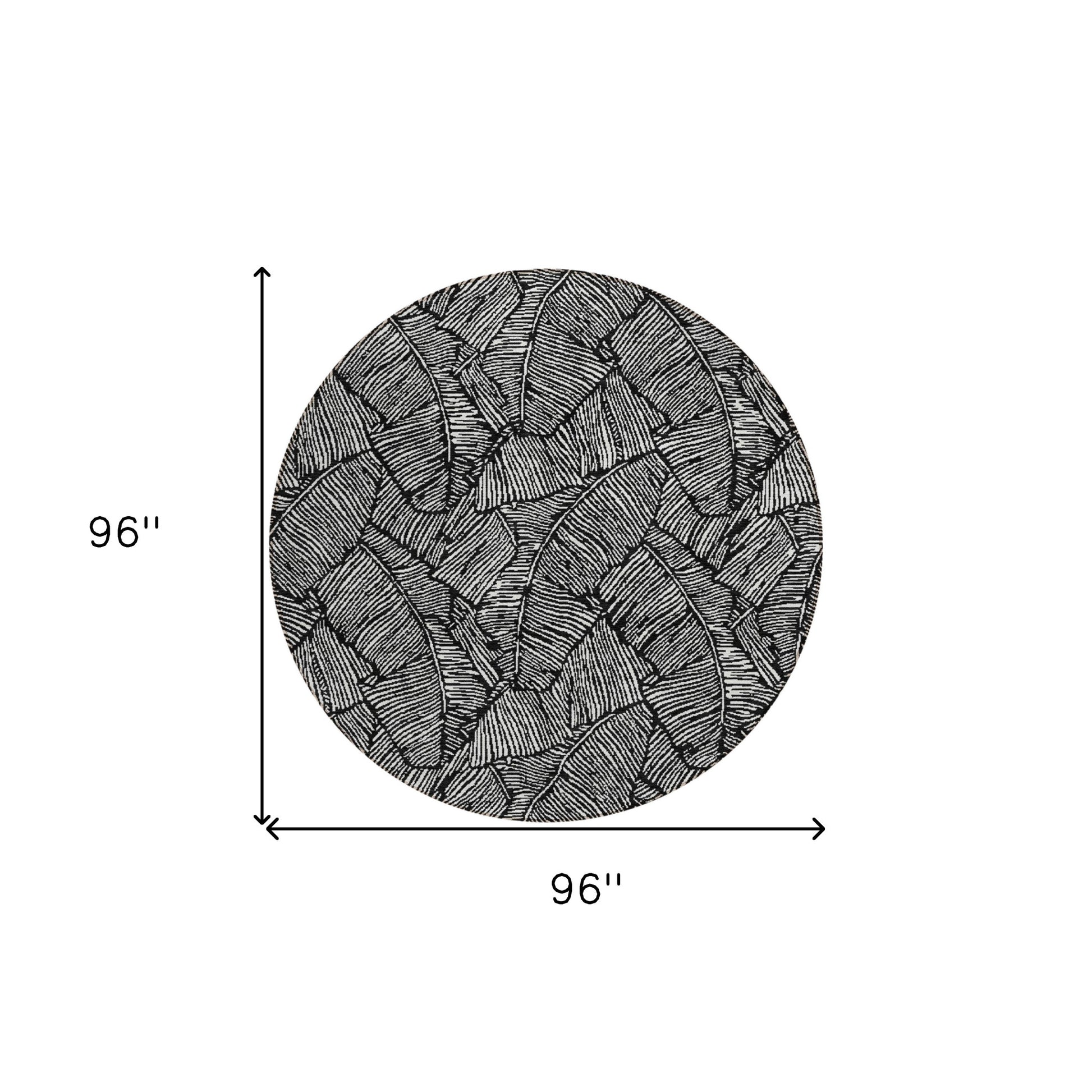 Tabselect Home Line 8' Black And Ivory Round Floral Washable Indoor Outdoor Area Rug