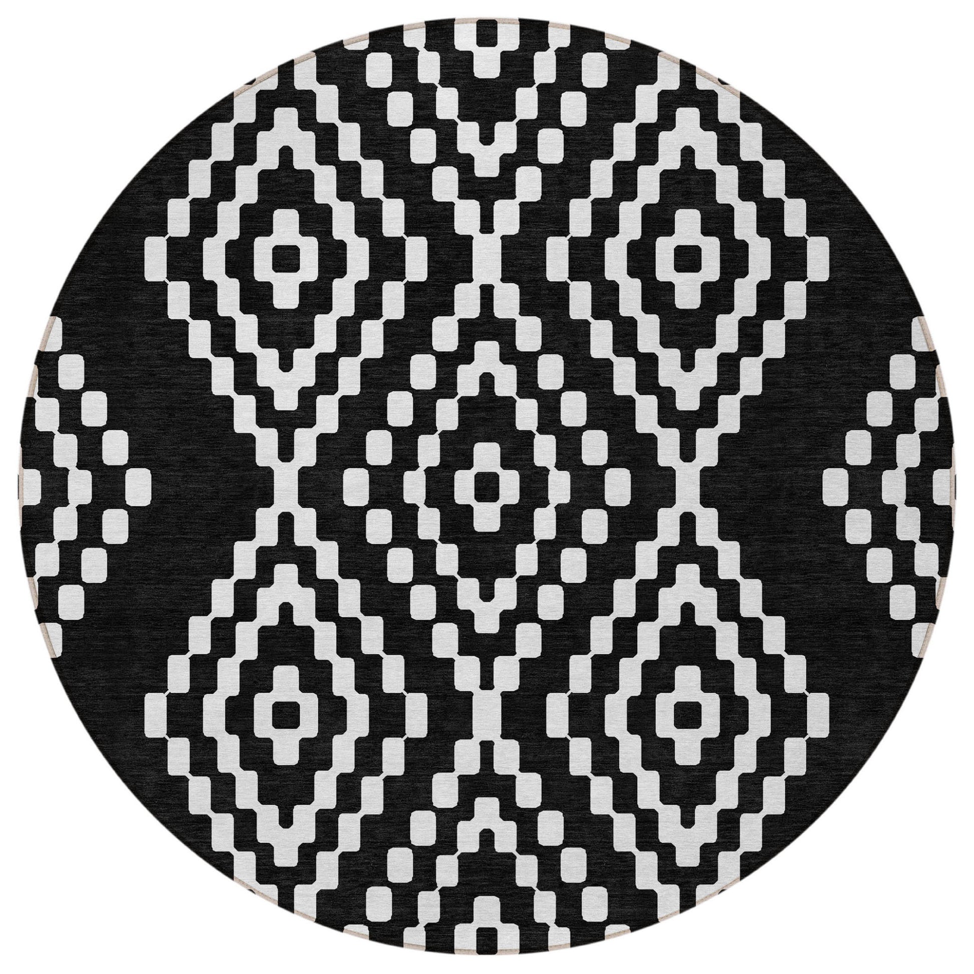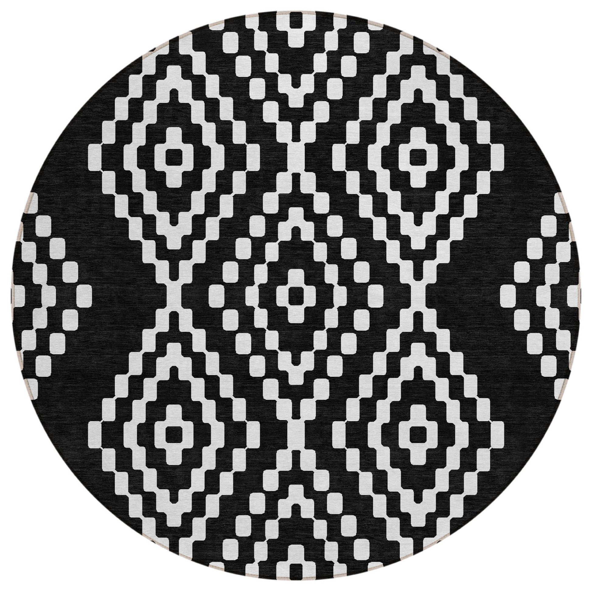 Tabselect Home Line 8' Black And Ivory Round Geometric Washable Indoor Outdoor Area Rug
