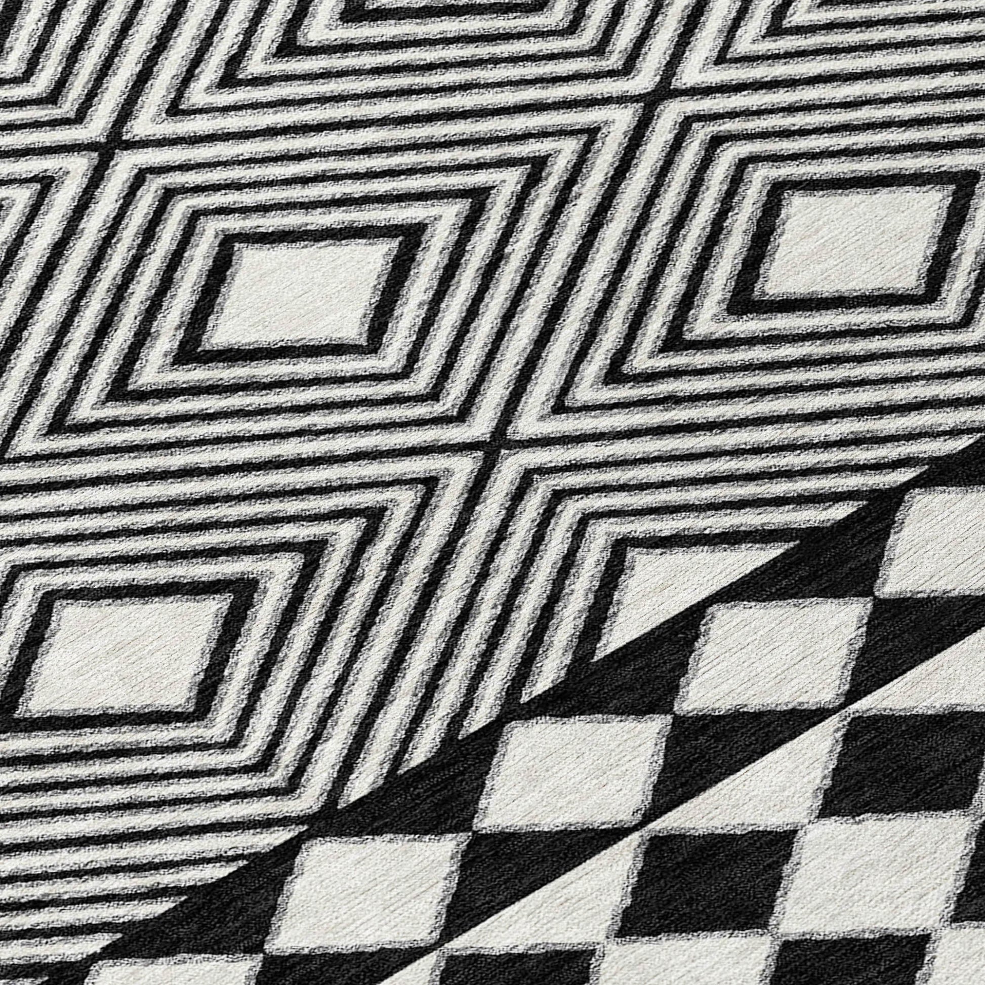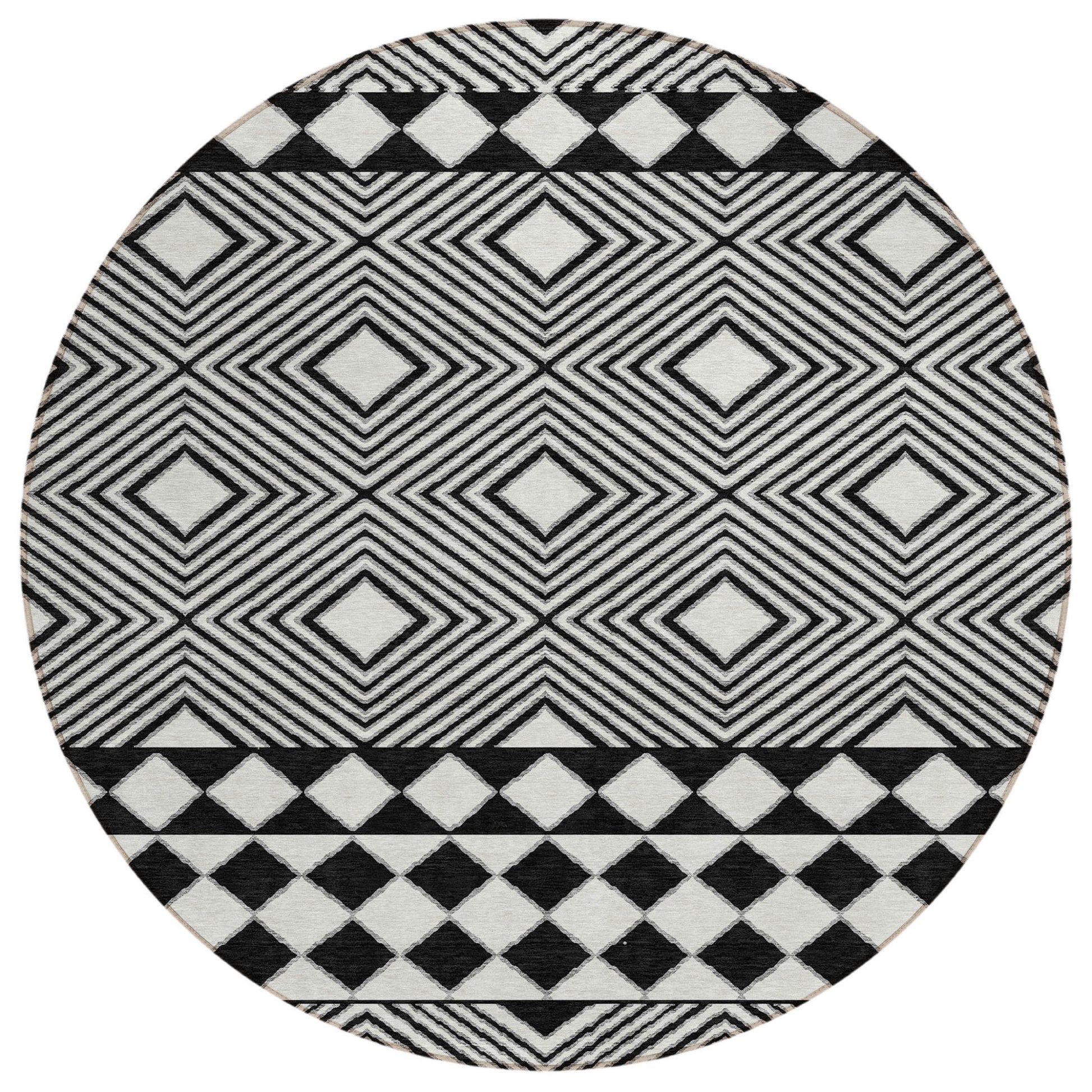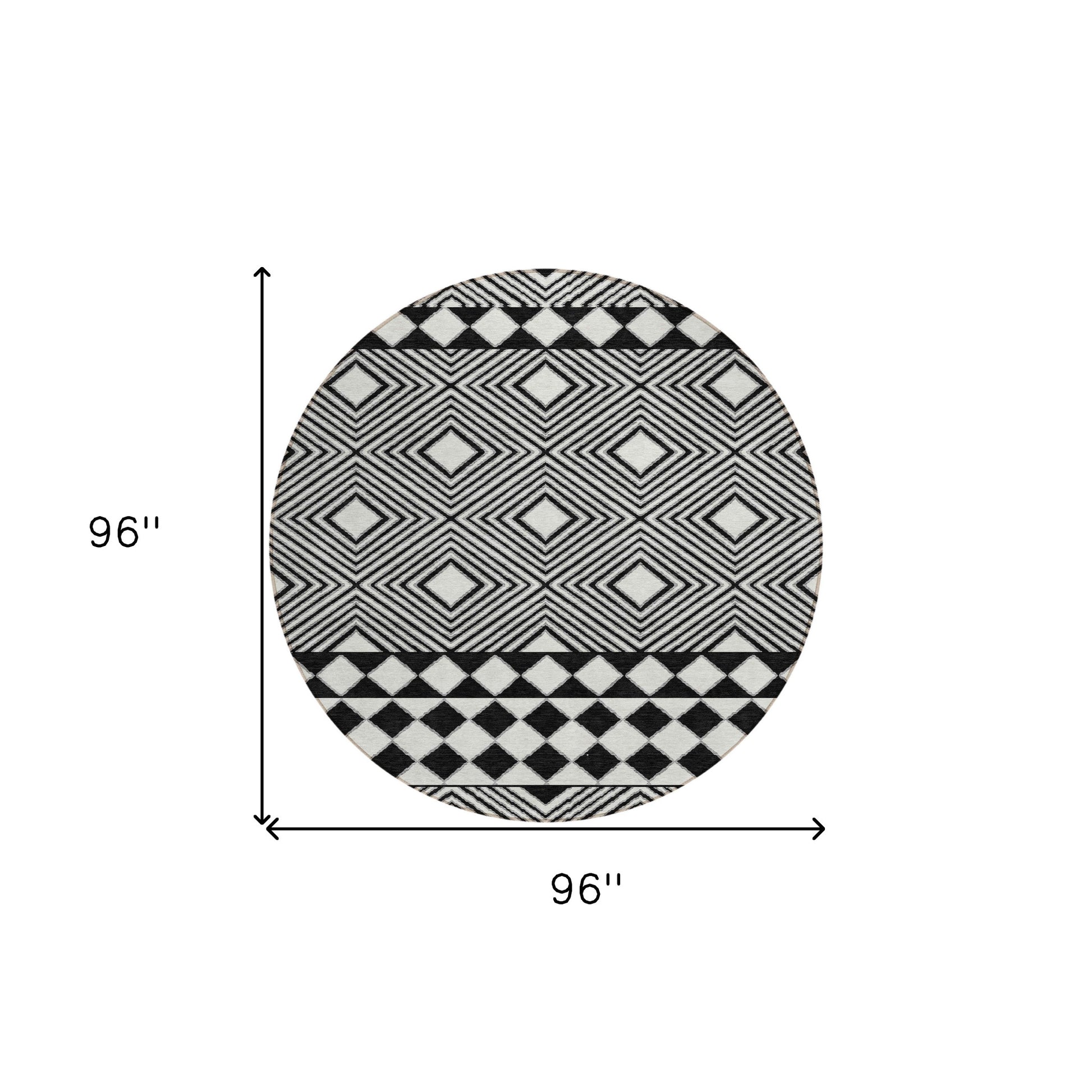 Tabselect Home Line 8' Black And Ivory Round Geometric Washable Indoor Outdoor Area Rug
