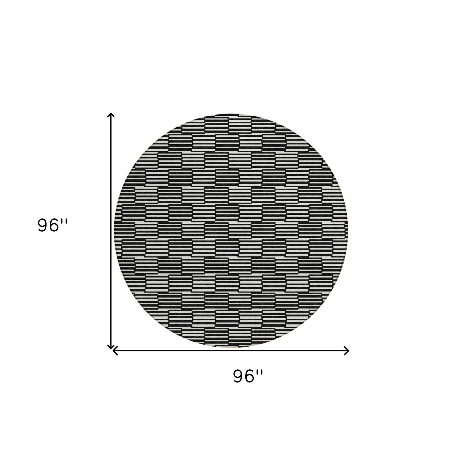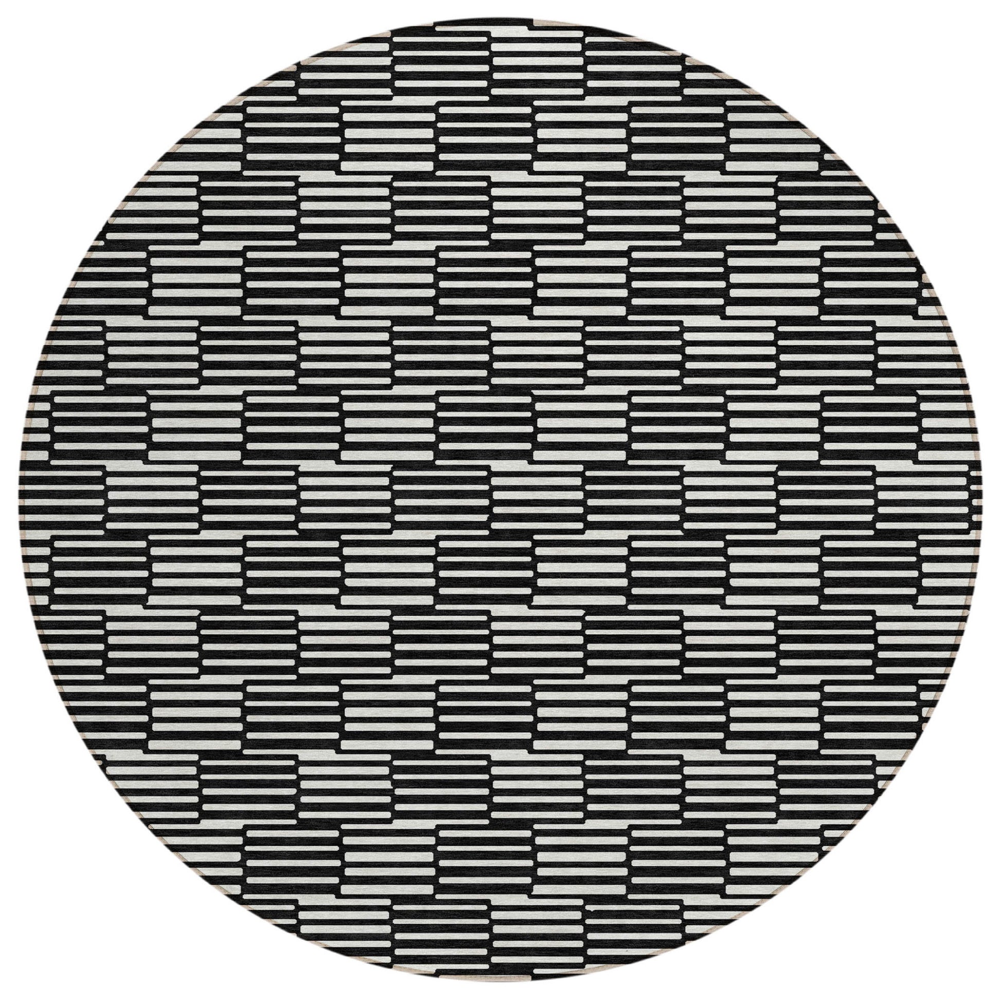 Tabselect Home Line 8' Black And Ivory Round Geometric Washable Indoor Outdoor Area Rug