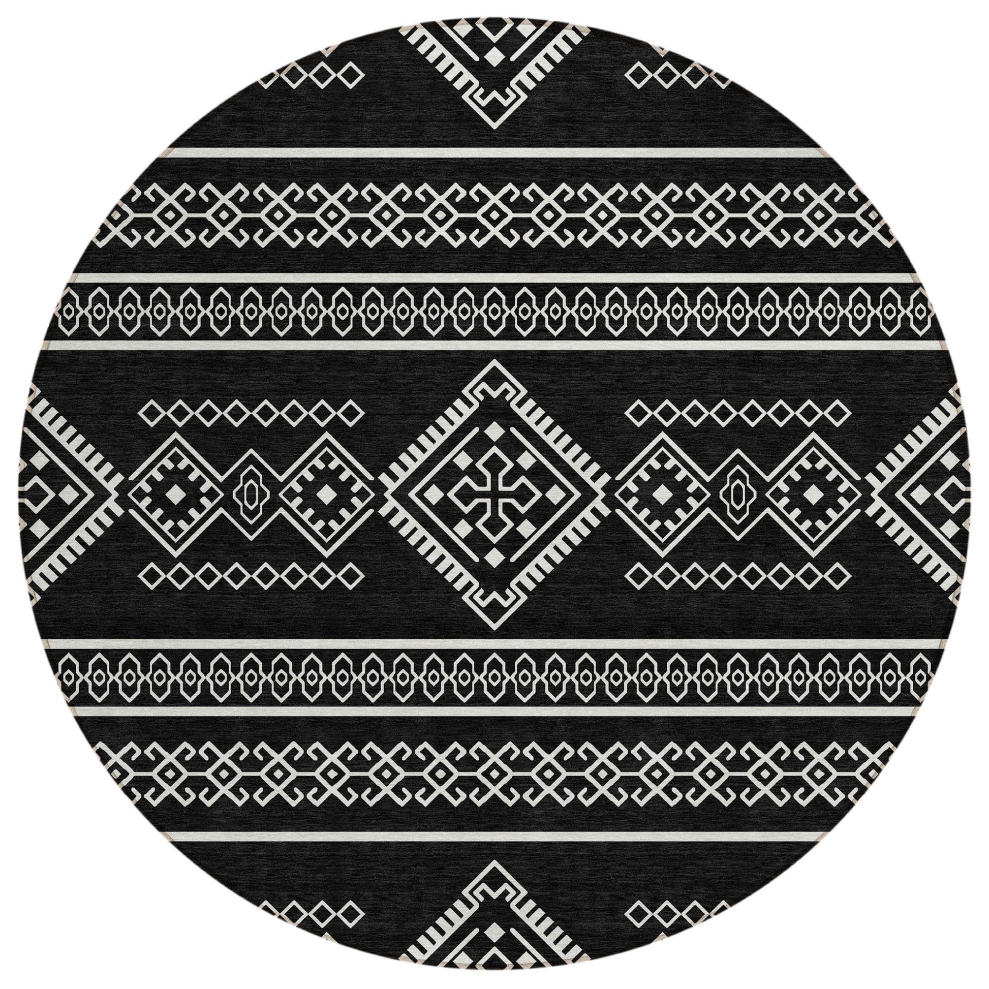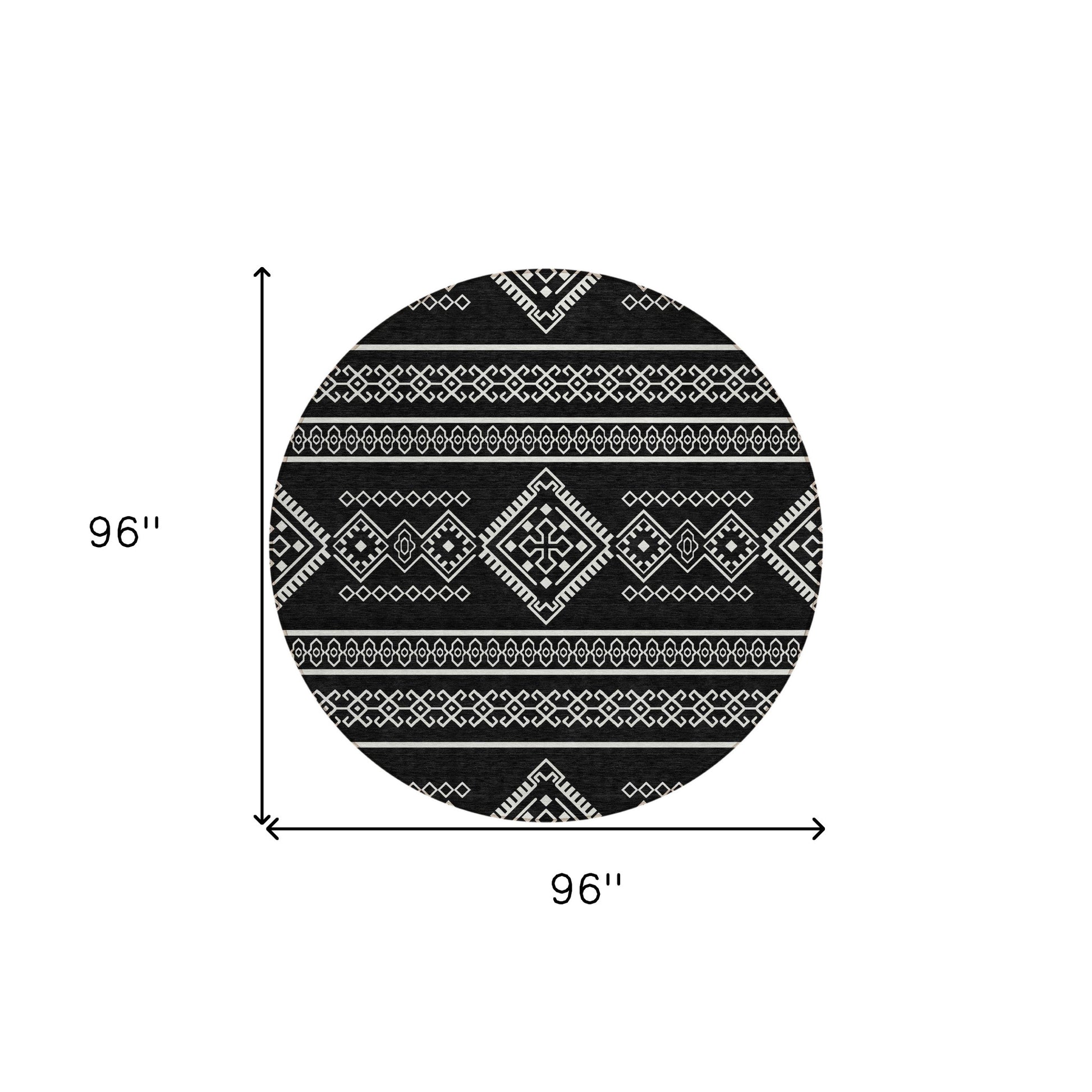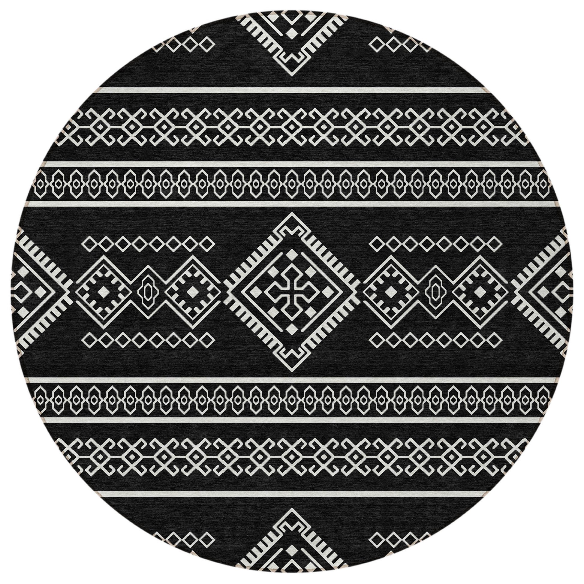 Tabselect Home Line 8' Black And Ivory Round Southwestern Washable Indoor Outdoor Area Rug