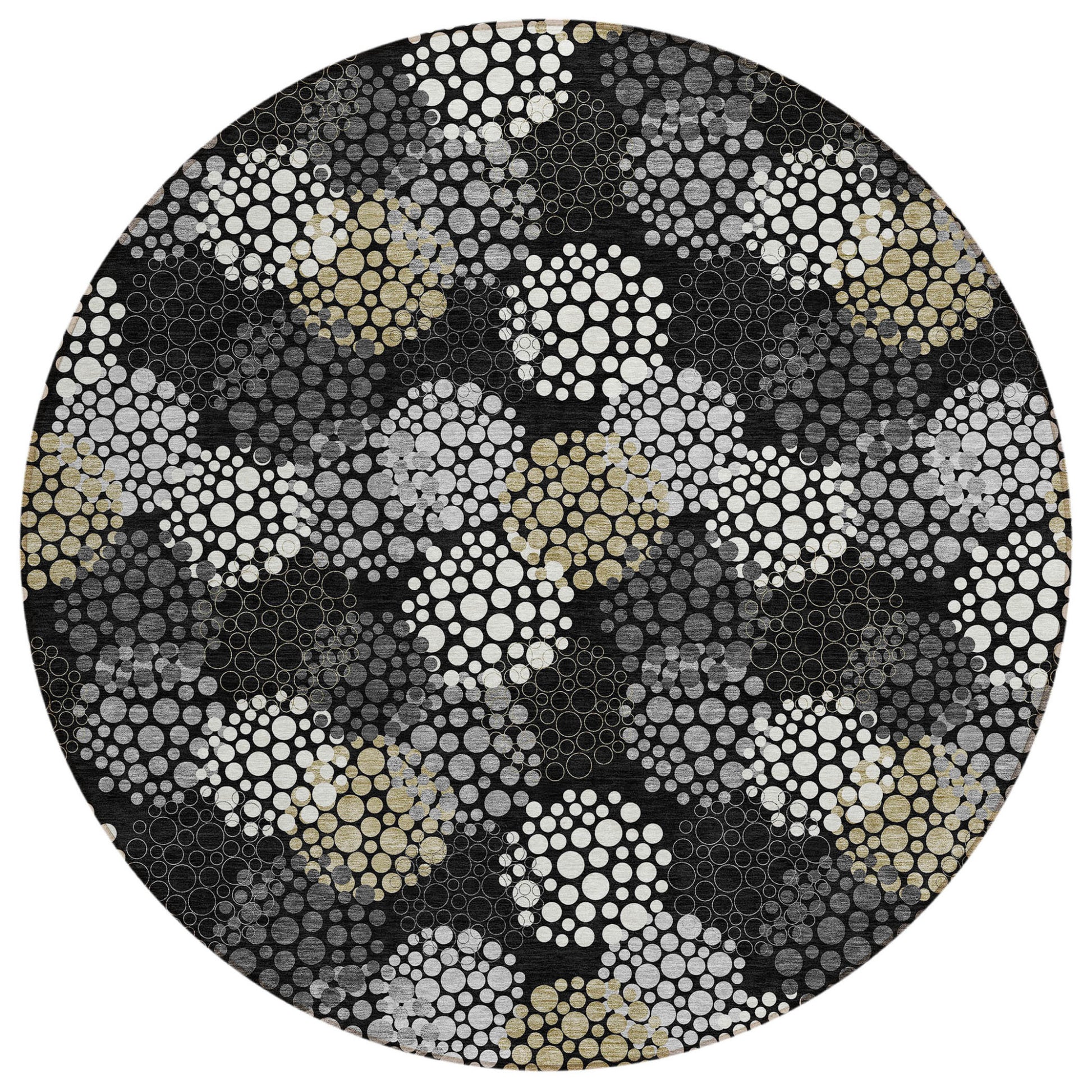Tabselect Home Line 8' Black Gray And Ivory Round Polka Dot Washable Indoor Outdoor Area Rug