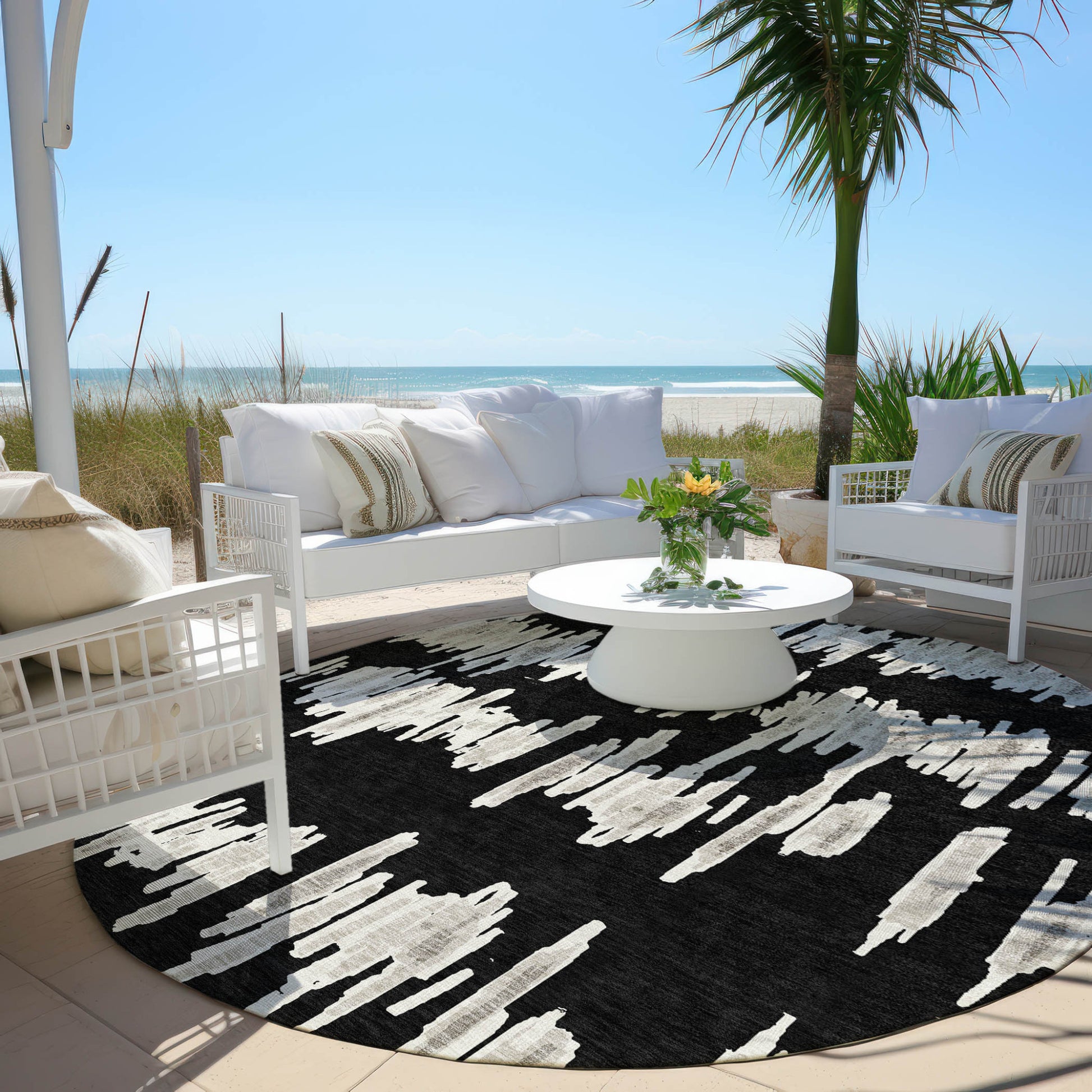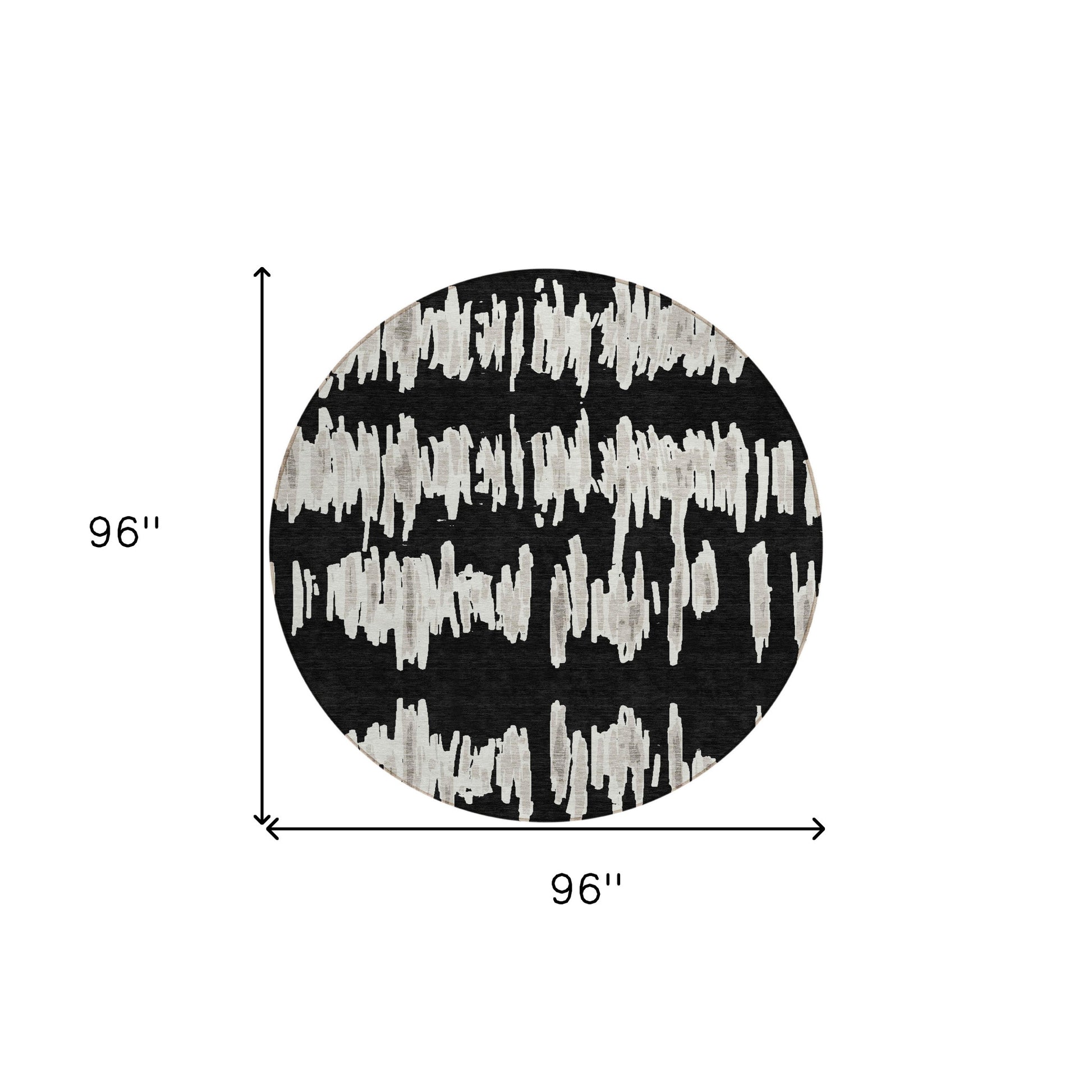 Tabselect Home Line 8' Black Ivory And Gray Round Striped Washable Indoor Outdoor Area Rug