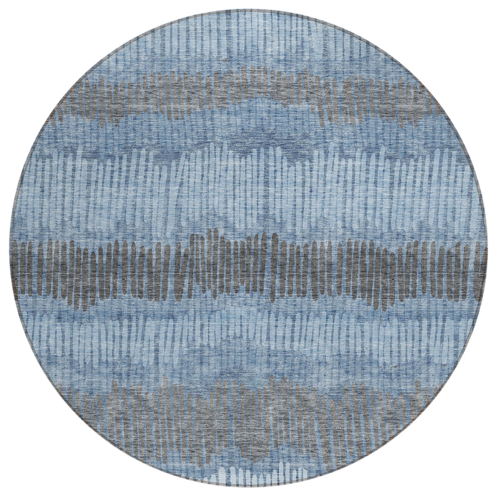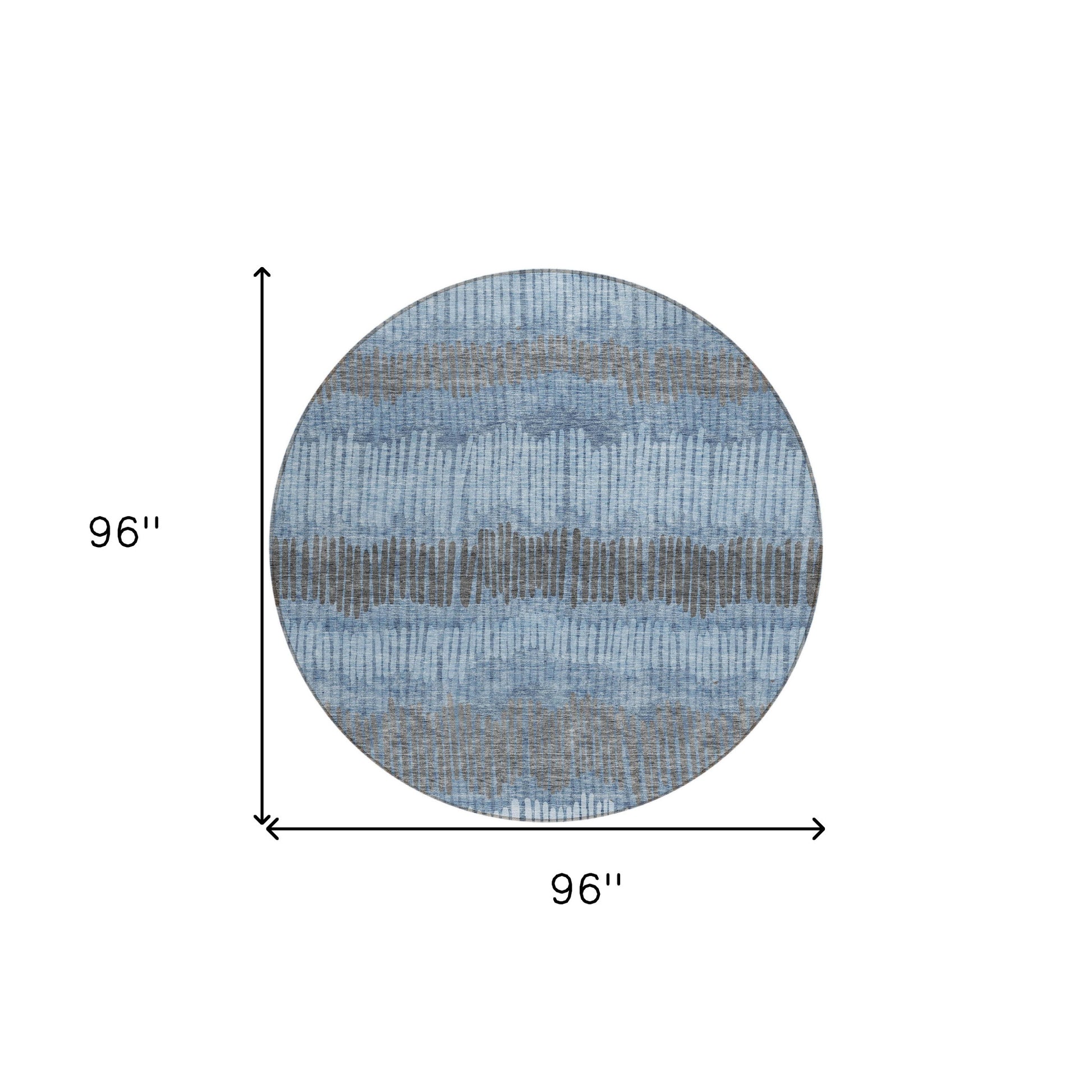 Tabselect Home Line 8' Blue Black And Gray Round Striped Washable Indoor Outdoor Area Rug
