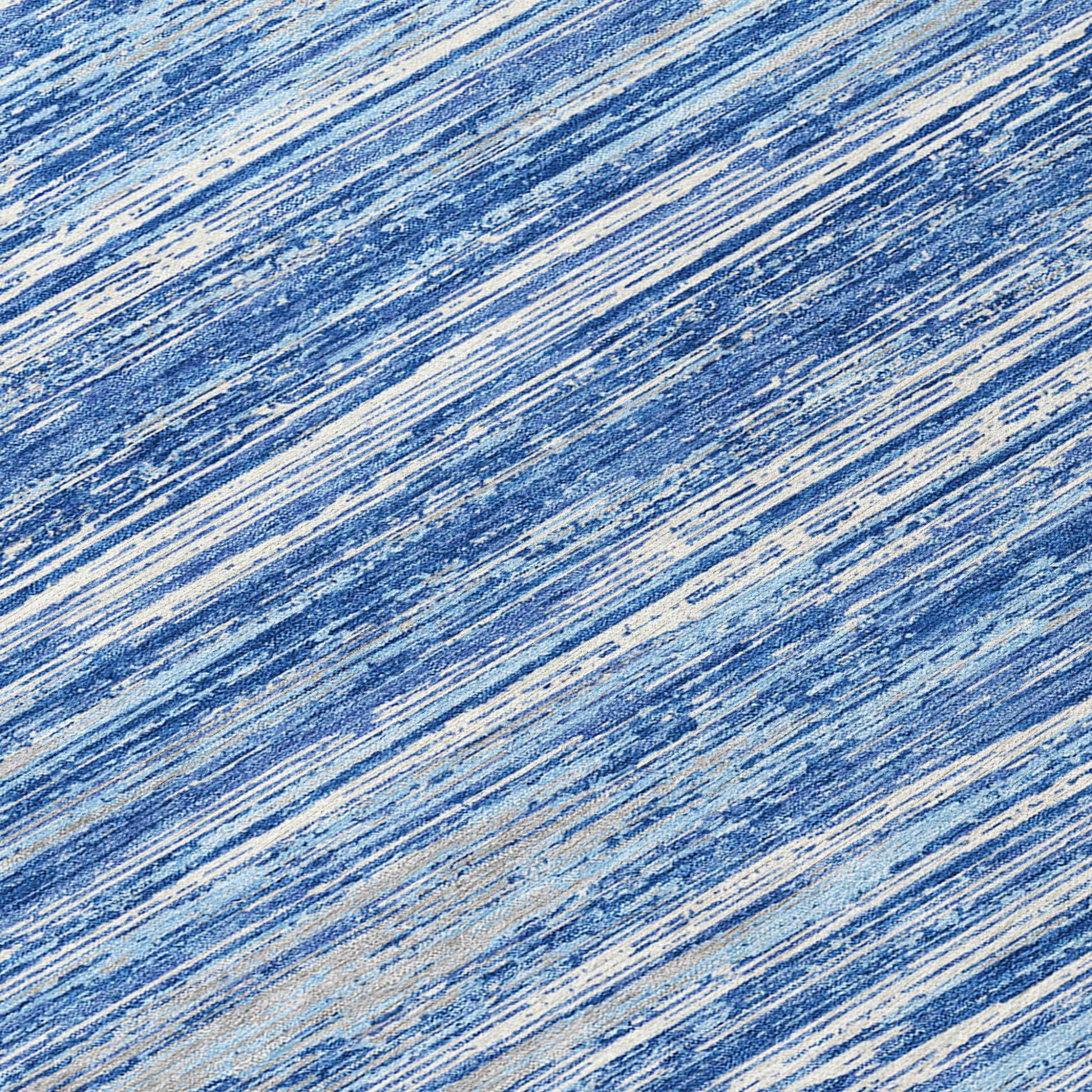 This 8-foot blue gray and ivory round striped washable indoor outdoor area rug, is a great way to add warmth to a room. This geometric round shaped rug features a striped pattern in blue, gray, and ivory that combines a good looking print with a unique and updated shape. The mix of shape, color, and design gives this rug refreshing visual interest. Ideal for outdoor spaces or high traffic areas with kids and pets, this rug is made from heavy duty polyester that is stain resistant to help repel water, dirt, and stains. Makes a great way to dress up your patio, porch, or poolside, but also works well as a durable and easy to maintain option in the kitchen, family room, or mudroom. 96-inch h x 96-inch w x 0.19-inch d.