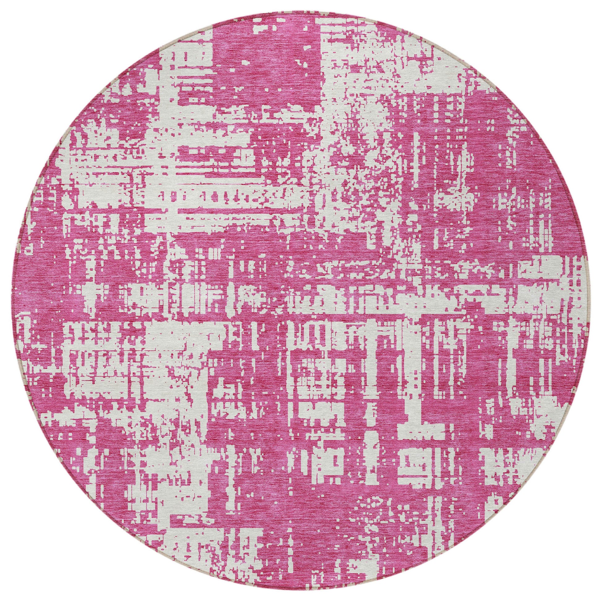 Tabselect Home Line 8' Blush And Ivory Round Abstract Washable Indoor Outdoor Area Rug
