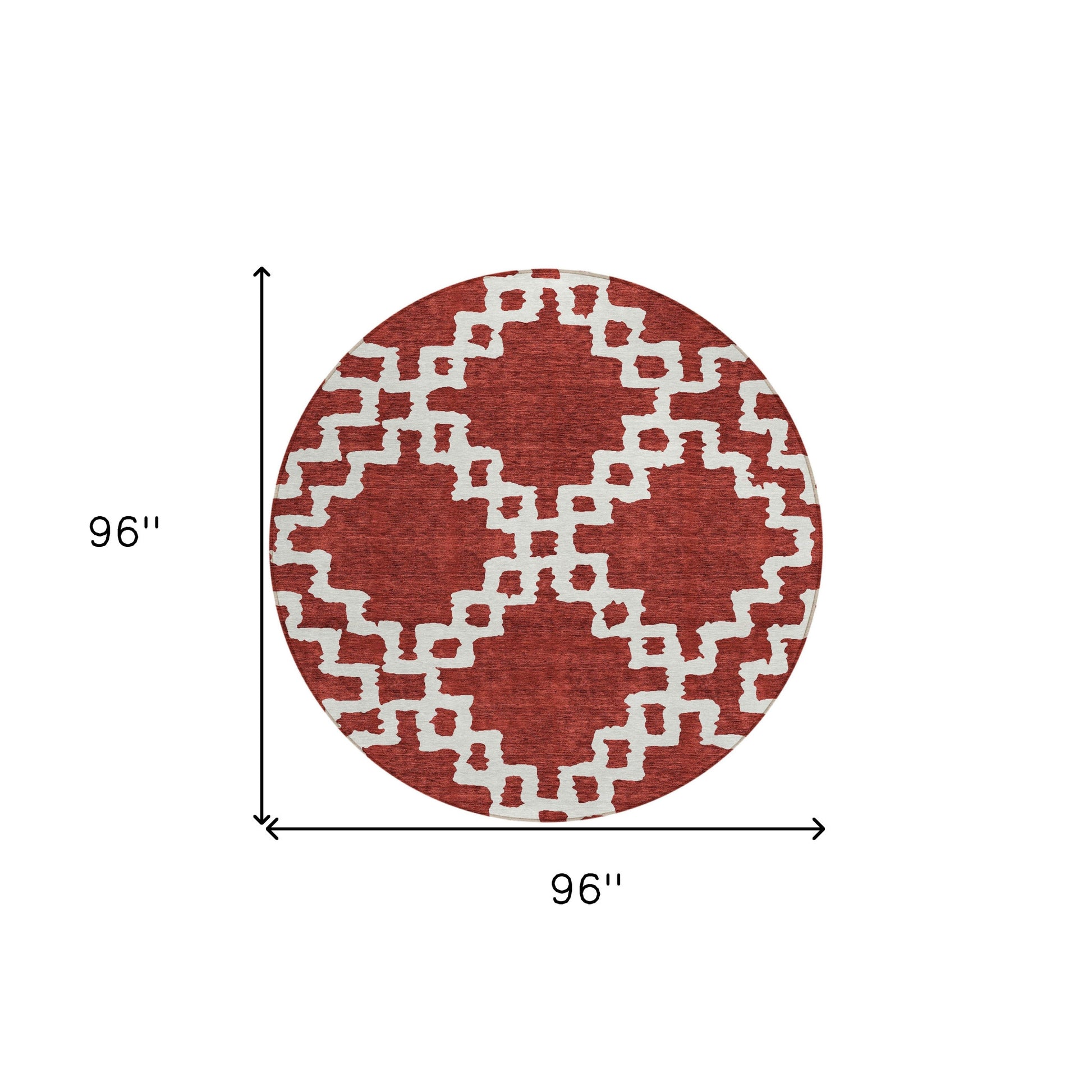 Tabselect Home Line 8' Brick Red And Ivory Round Geometric Washable Indoor Outdoor Area Rug