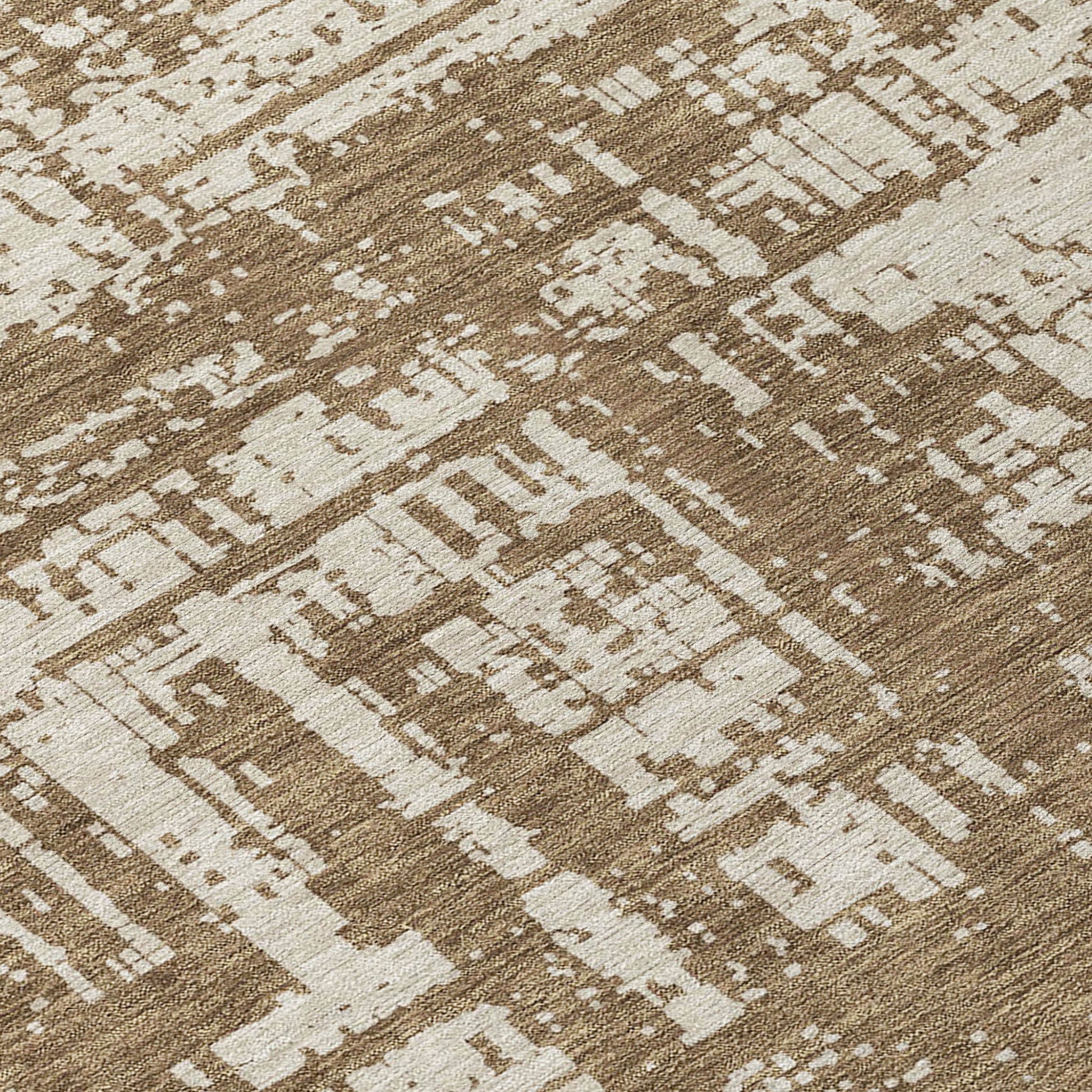 Tabselect Home Line 8' Brown And Beige Round Abstract Washable Indoor Outdoor Area Rug
