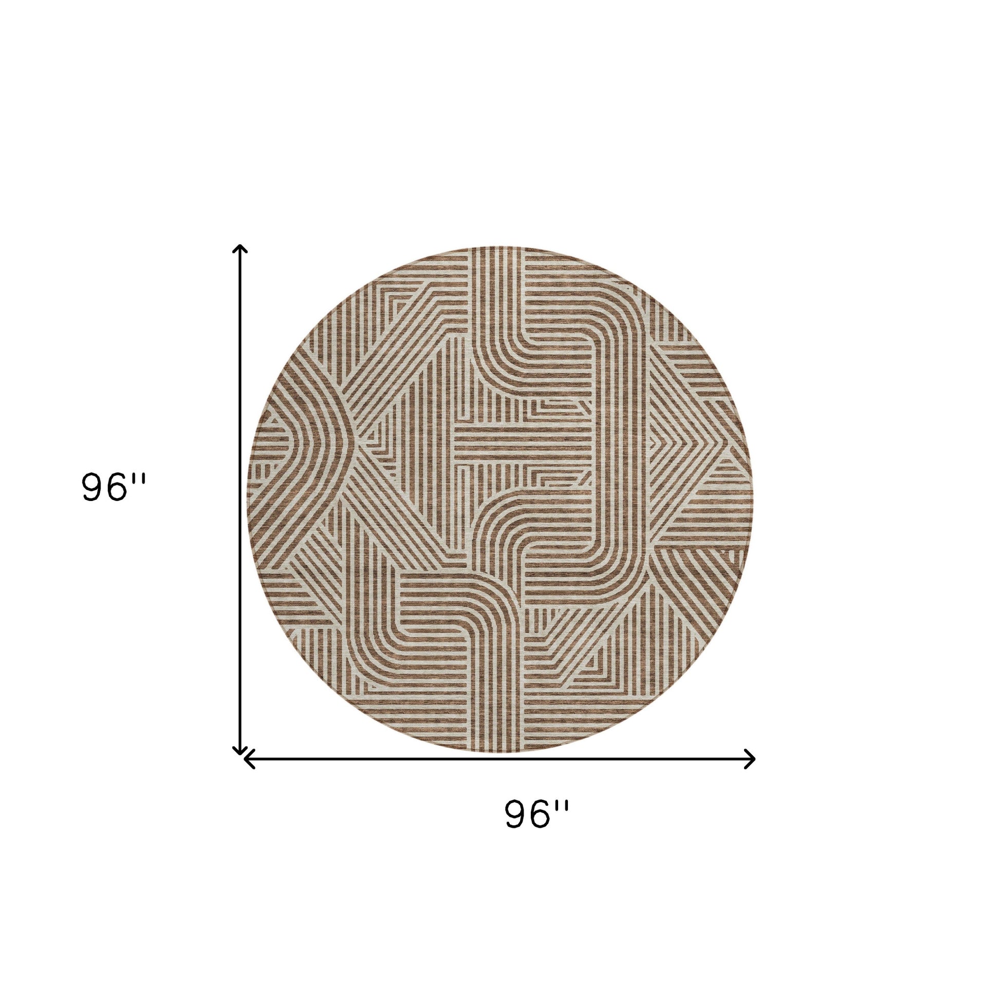 This 8-foot brown and beige round abstract washable indoor outdoor area rug, is a great way to add warmth to a room. This geometric round shaped rug features a abstract pattern in brown and beige that combines a good looking print with a unique and updated shape. The mix of shape, color, and design gives this rug refreshing visual interest. Ideal for outdoor spaces or high traffic areas with kids and pets, this rug is made from heavy duty polyester that is stain resistant to help repel water, dirt, and stains. Makes a great way to dress up your patio, porch, or poolside, but also works well as a durable and easy to maintain option in the kitchen, family room, or mudroom. 96-inch h x 96-inch w x 0.19-inch d.