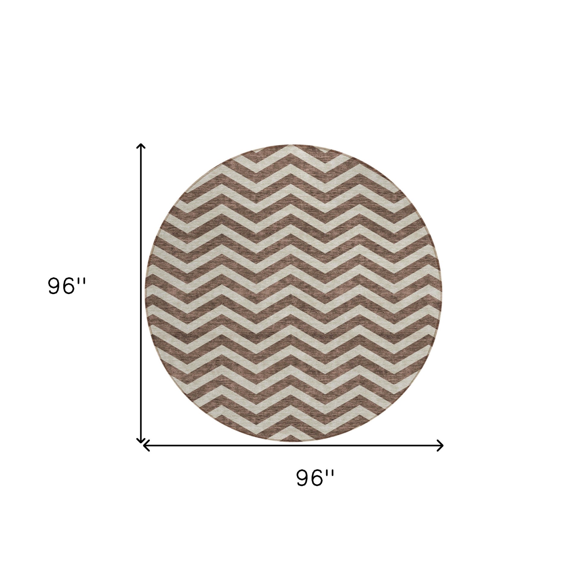 Tabselect Home Line 8' Brown And Beige Round Chevron Washable Indoor Outdoor Area Rug