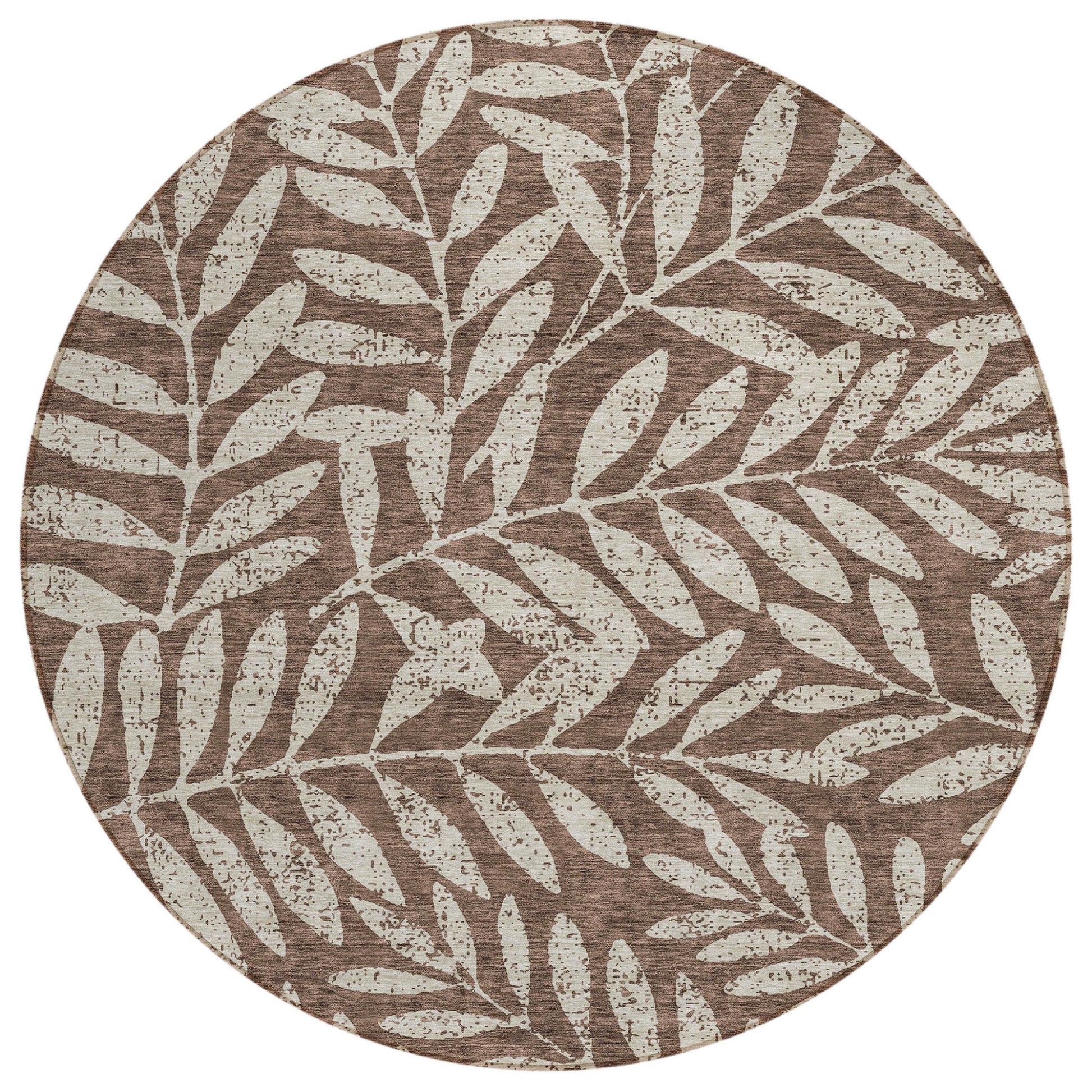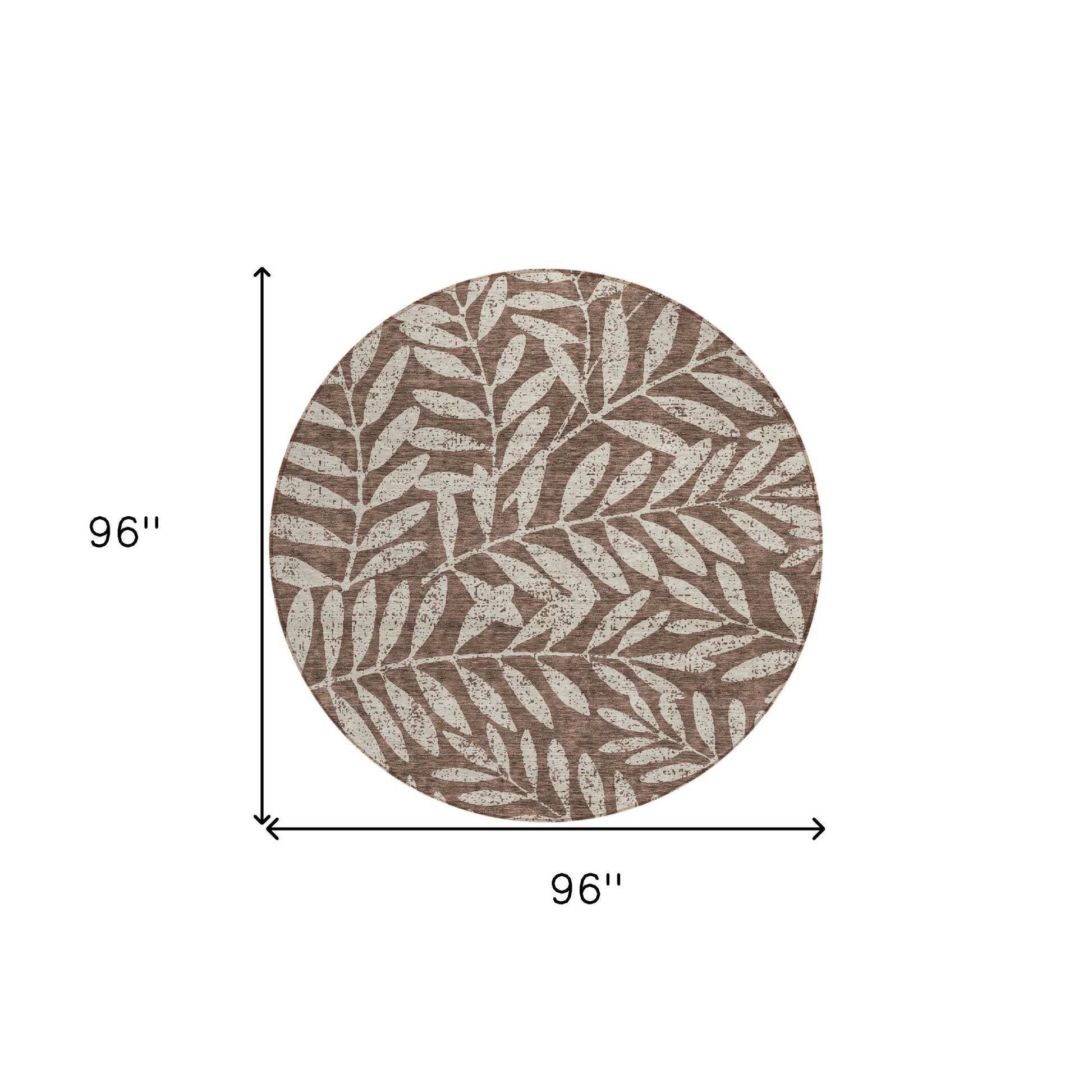 Tabselect Home Line 8' Brown And Beige Round Floral Washable Indoor Outdoor Area Rug