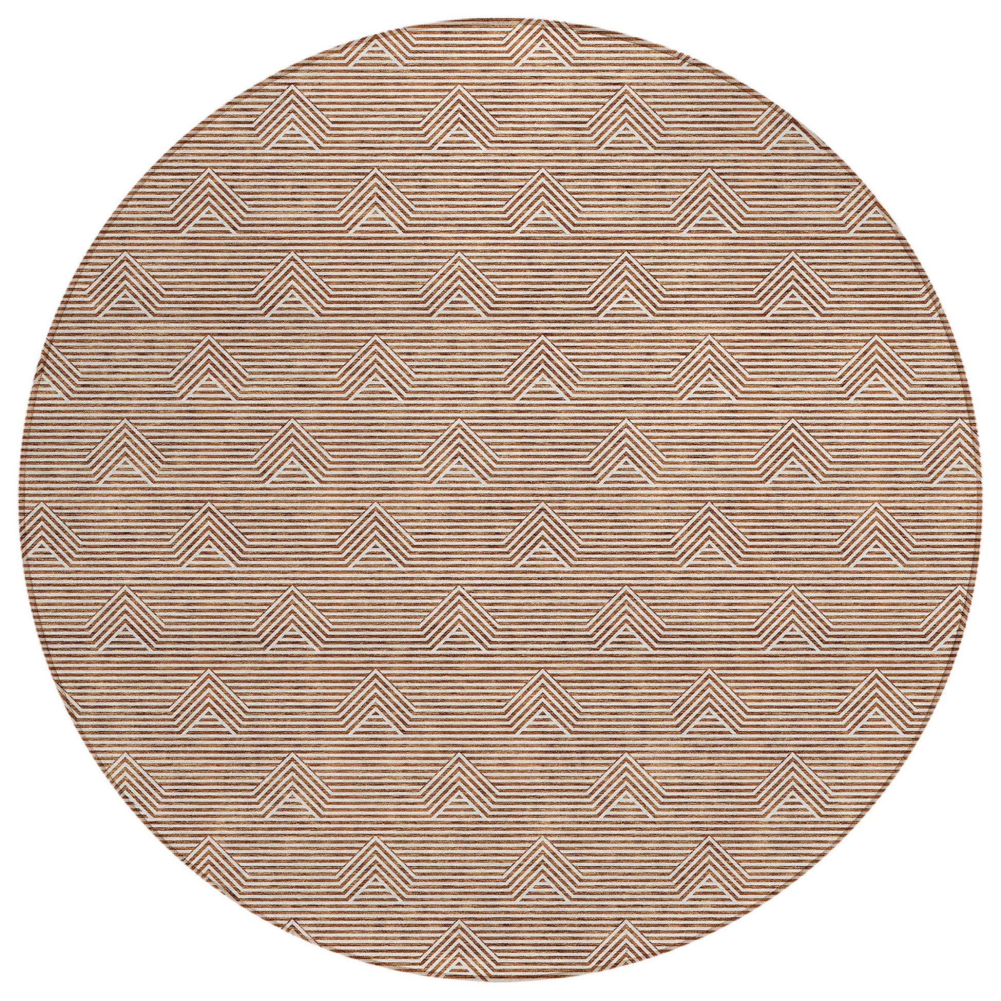 Tabselect Home Line 8' Brown And Beige Round Geometric Washable Indoor Outdoor Area Rug