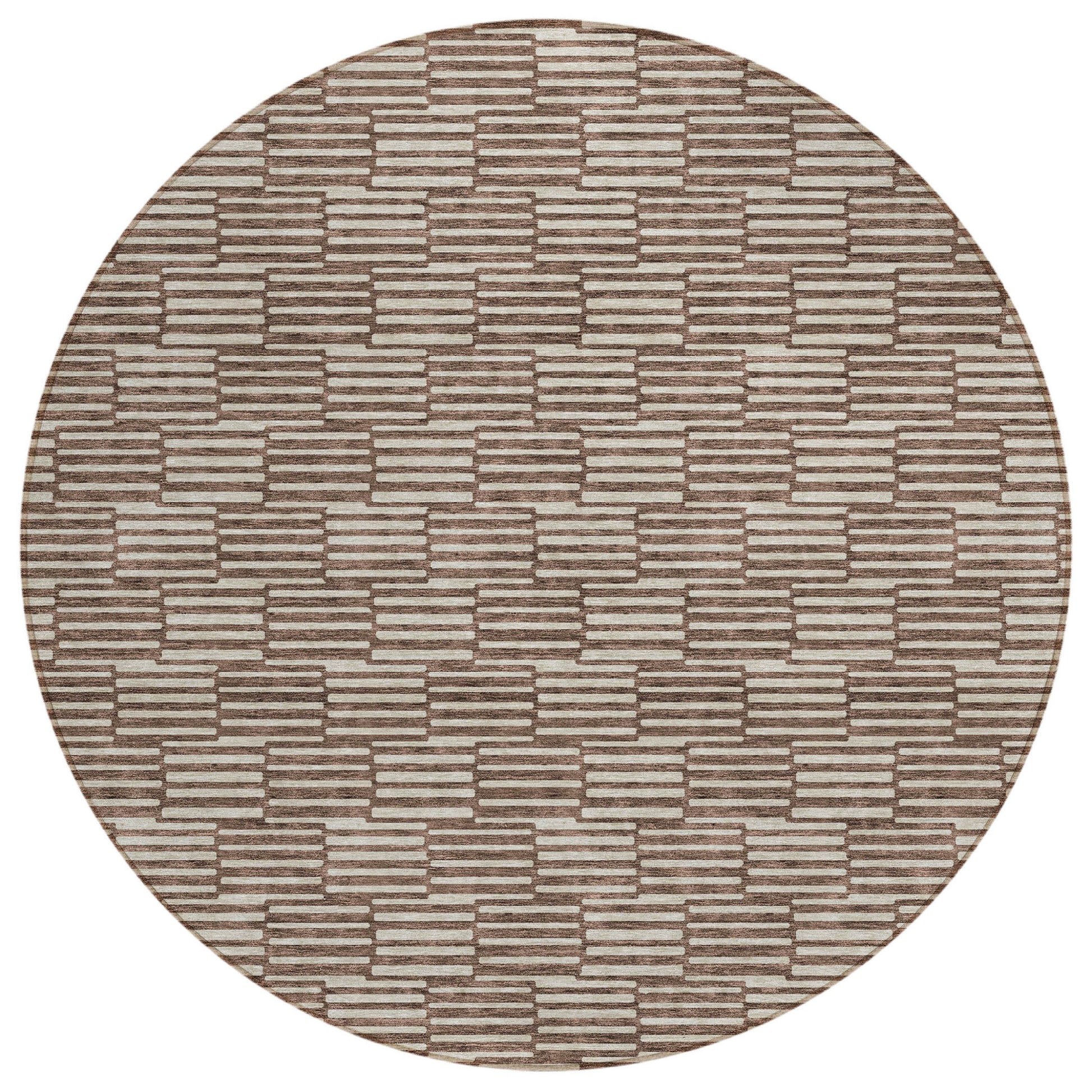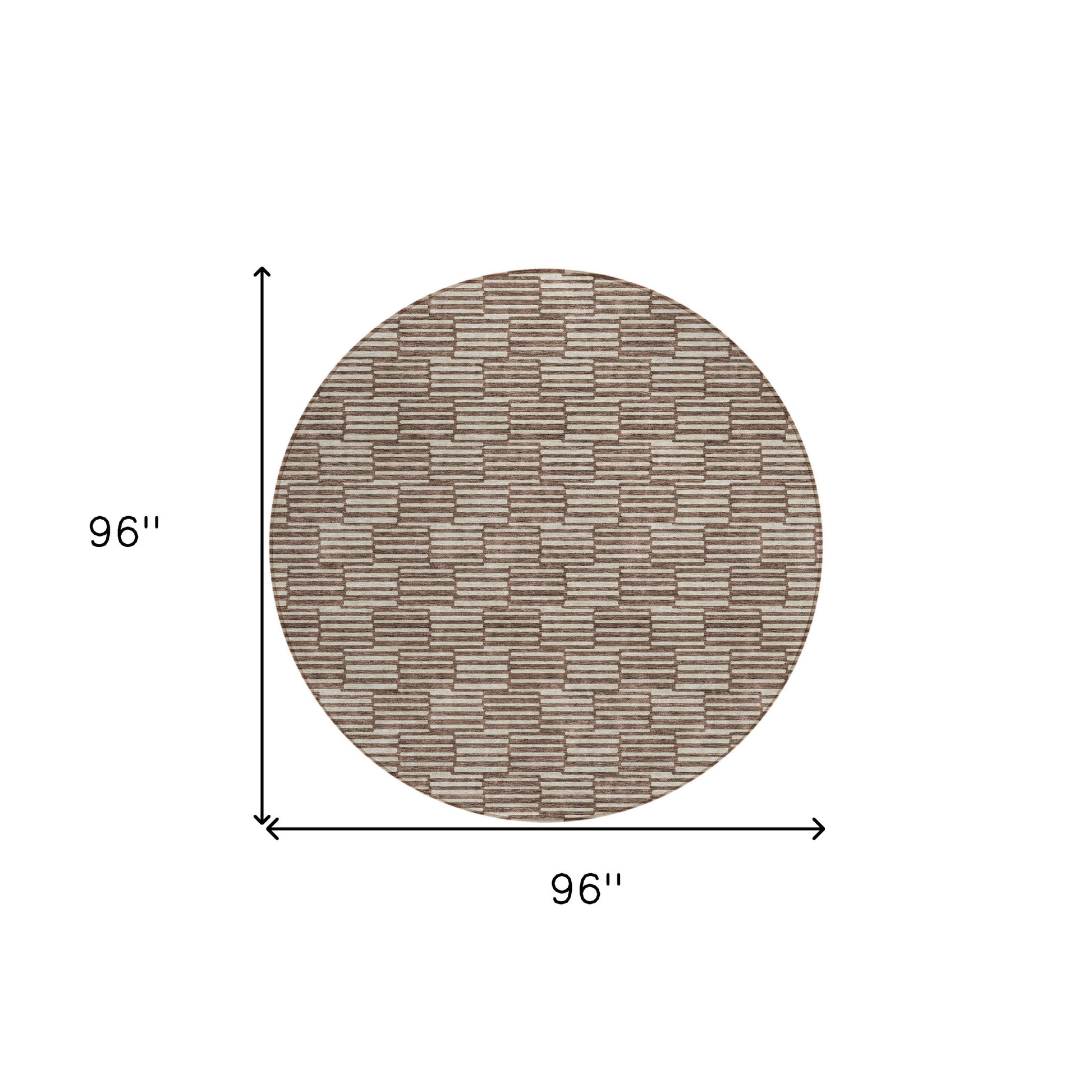 Tabselect Home Line 8' Brown And Beige Round Geometric Washable Indoor Outdoor Area Rug