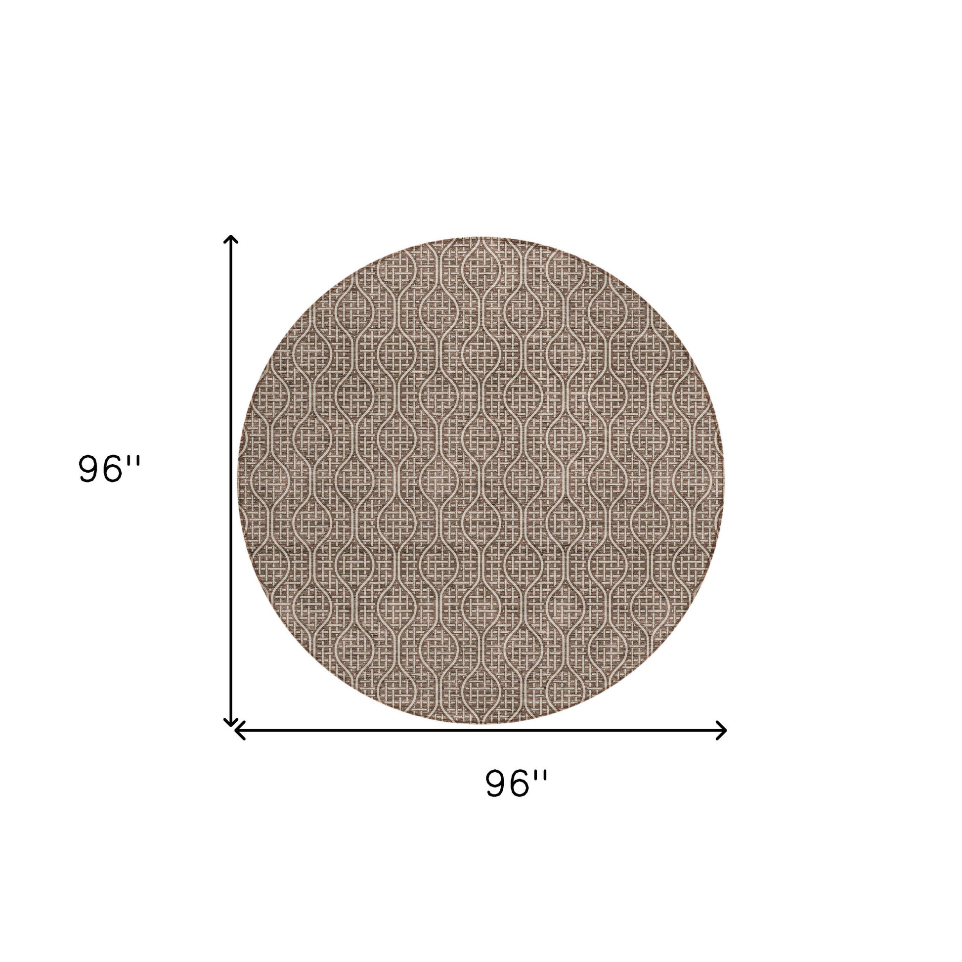 Tabselect Home Line 8' Brown And Beige Round Geometric Washable Indoor Outdoor Area Rug