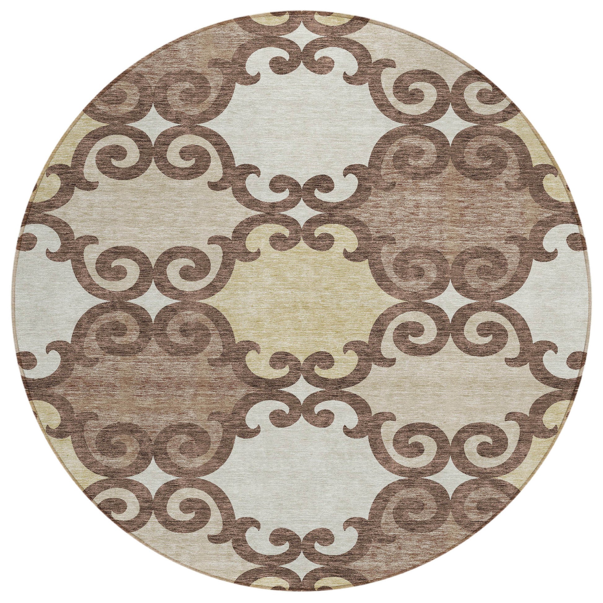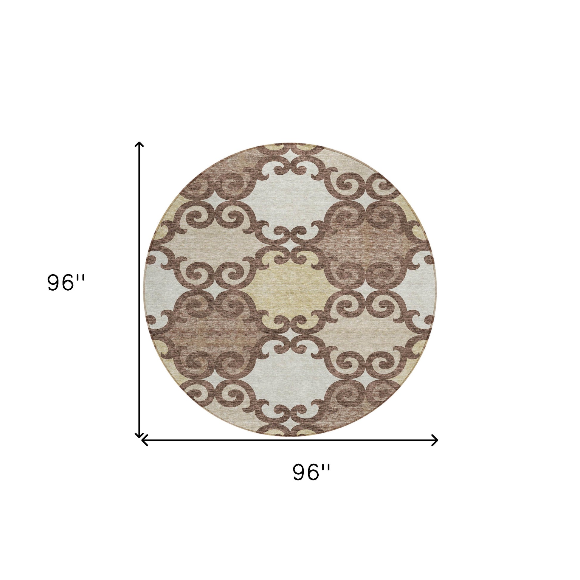 Tabselect Home Line 8' Brown And Beige Round Trellis Washable Indoor Outdoor Area Rug