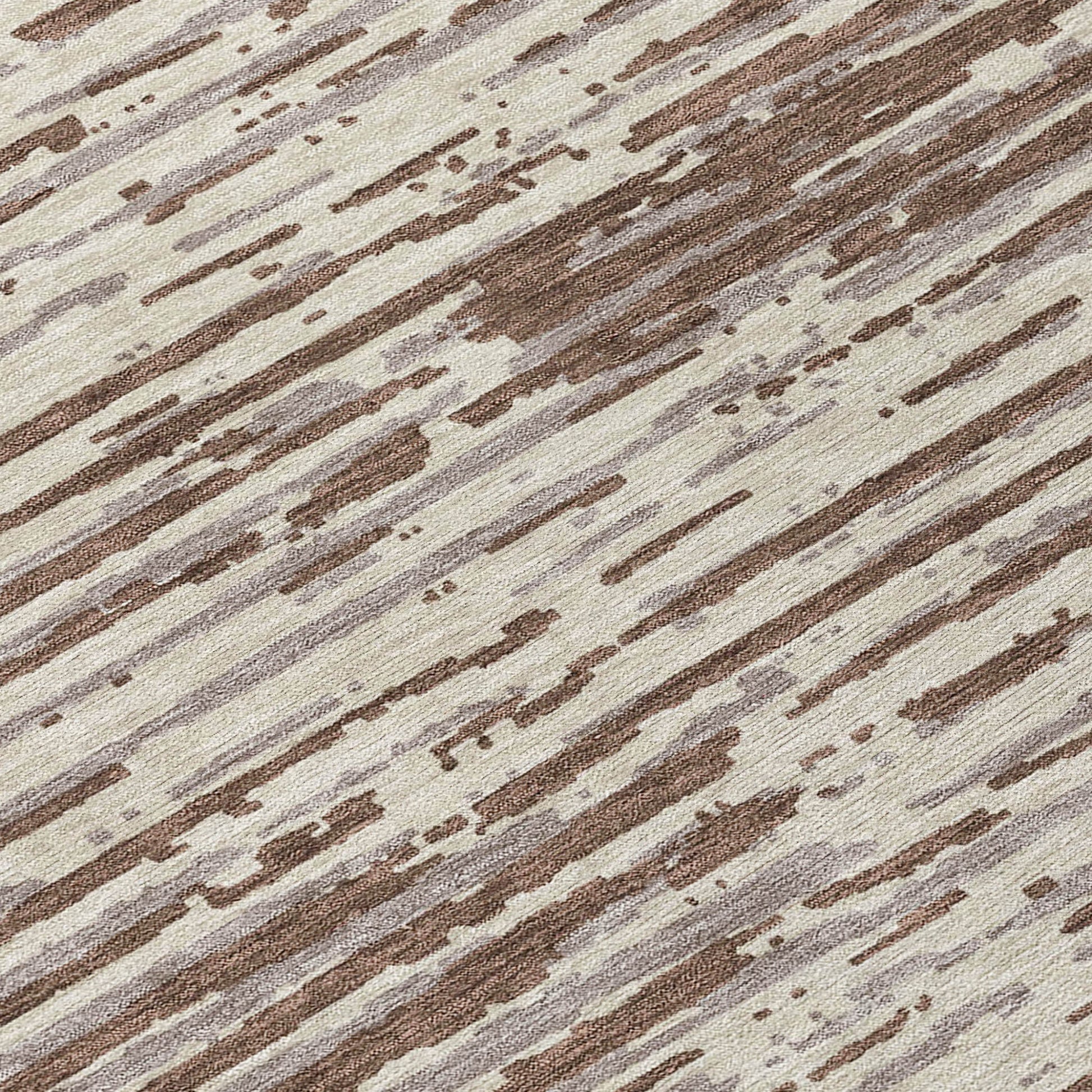 Add some artistry to your room with this 8-foot brown beige and ivory round striped washable indoor outdoor area rug. This geometric round shaped rug features a striped pattern in brown, beige, and ivory that combines a good looking print with a unique and updated shape. The mix of shape, color, and design gives this rug refreshing visual interest. Ideal for outdoor spaces or high traffic areas with kids and pets, this rug is made from heavy duty polyester that is stain resistant to help repel water, dirt, and stains. Versatile in use, durable, and easy to maintain, this rug is an ideal solution to add a decorative and inviting touch to your indoor or outdoor space. 96-inch h x 96-inch w x 0.19-inch d.