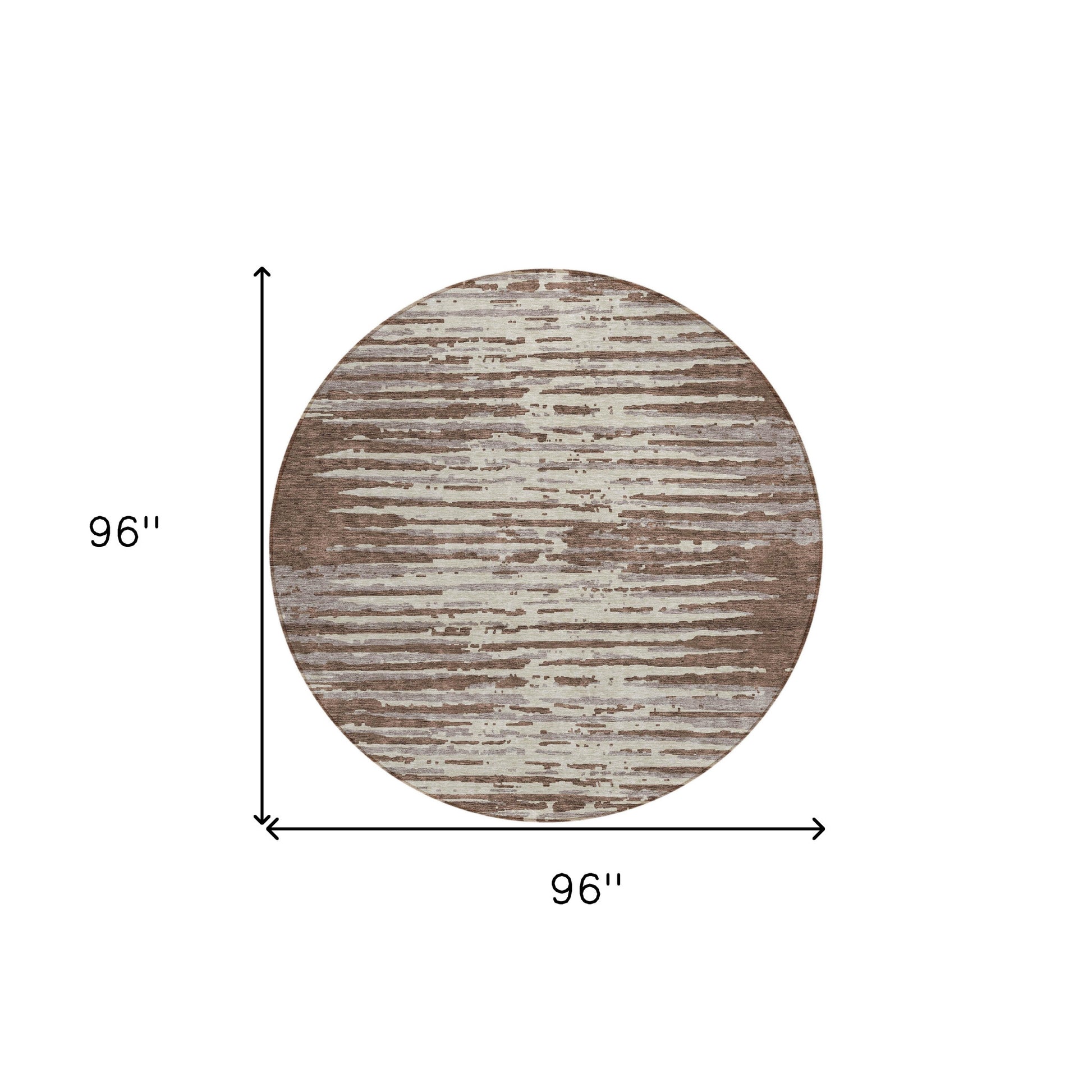 Tabselect Home Line 8' Brown Beige And Ivory Round Striped Washable Indoor Outdoor Area Rug