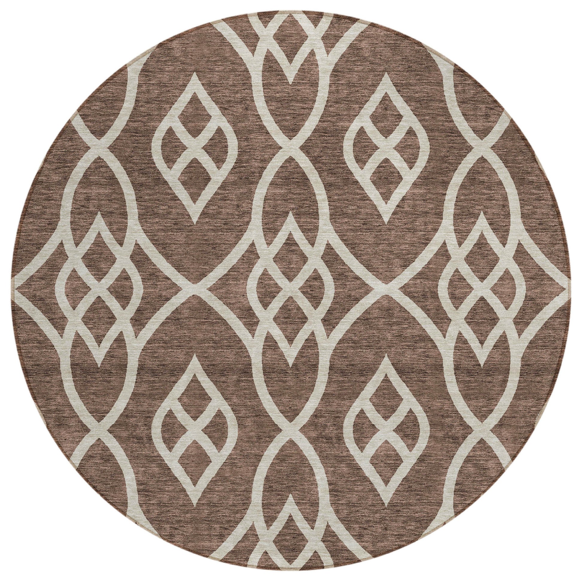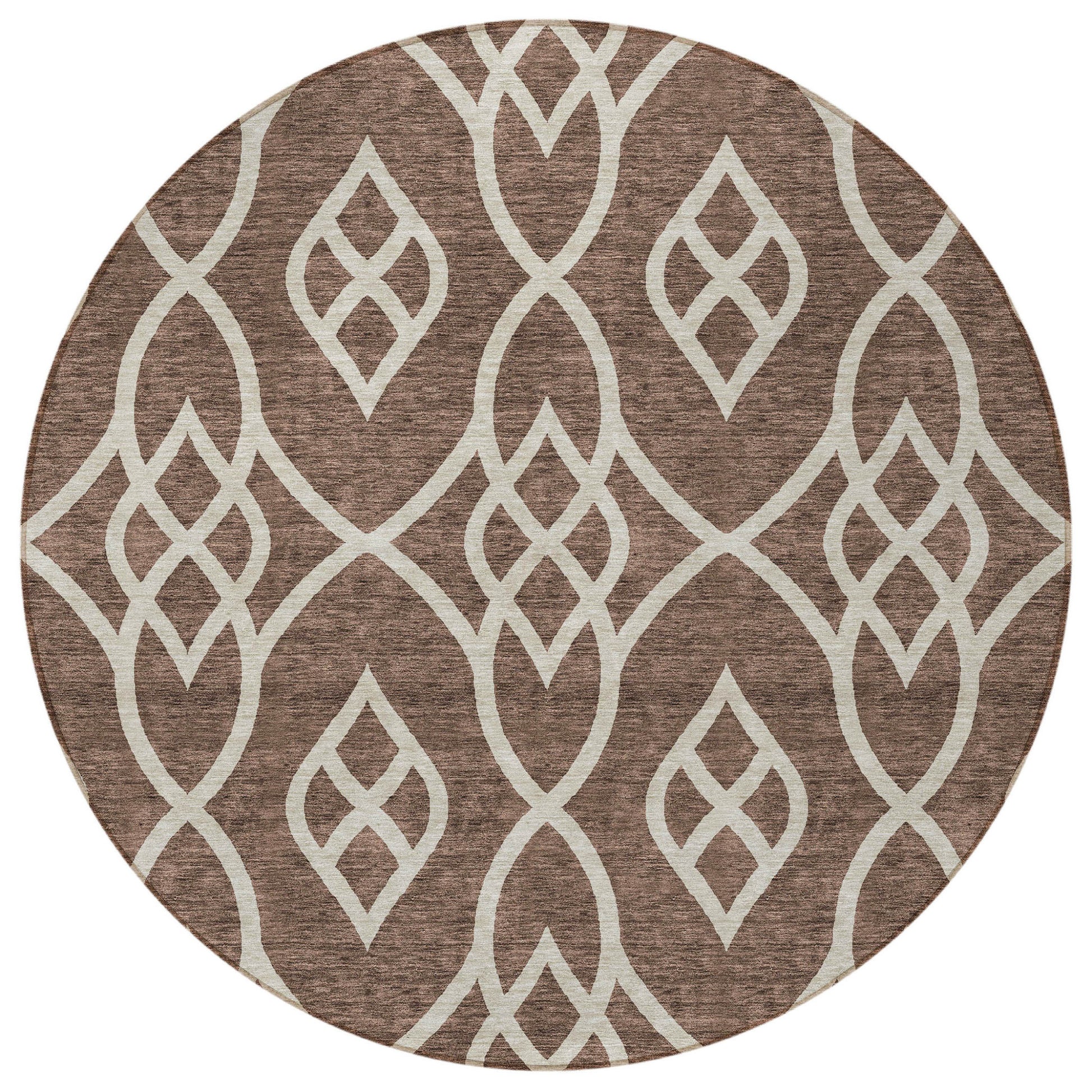 Add some artistry to your room with this 8-foot chocolate and ivory round trellis washable indoor outdoor area rug. This geometric round shaped rug features a trellis pattern in chocolate and ivory that combines a good looking print with a unique and updated shape. The mix of shape, color, and design gives this rug refreshing visual interest. Ideal for outdoor spaces or high traffic areas with kids and pets, this rug is made from heavy duty polyester that is stain resistant to help repel water, dirt, and stains. Makes a great way to dress up your patio, porch, or poolside, but also works well as a durable and easy to maintain option in the kitchen, family room, or mudroom. 96-inch h x 96-inch w x 0.19-inch d.