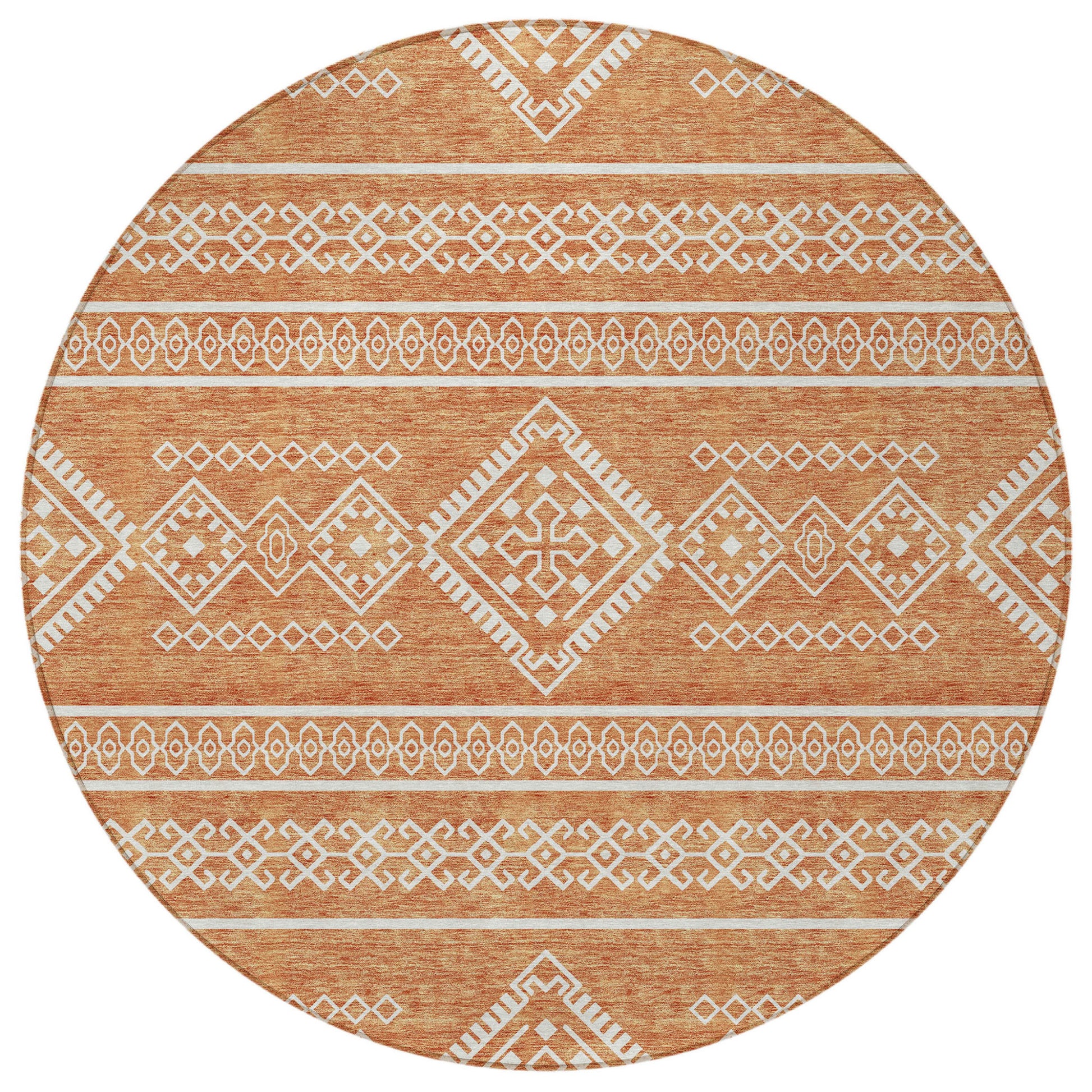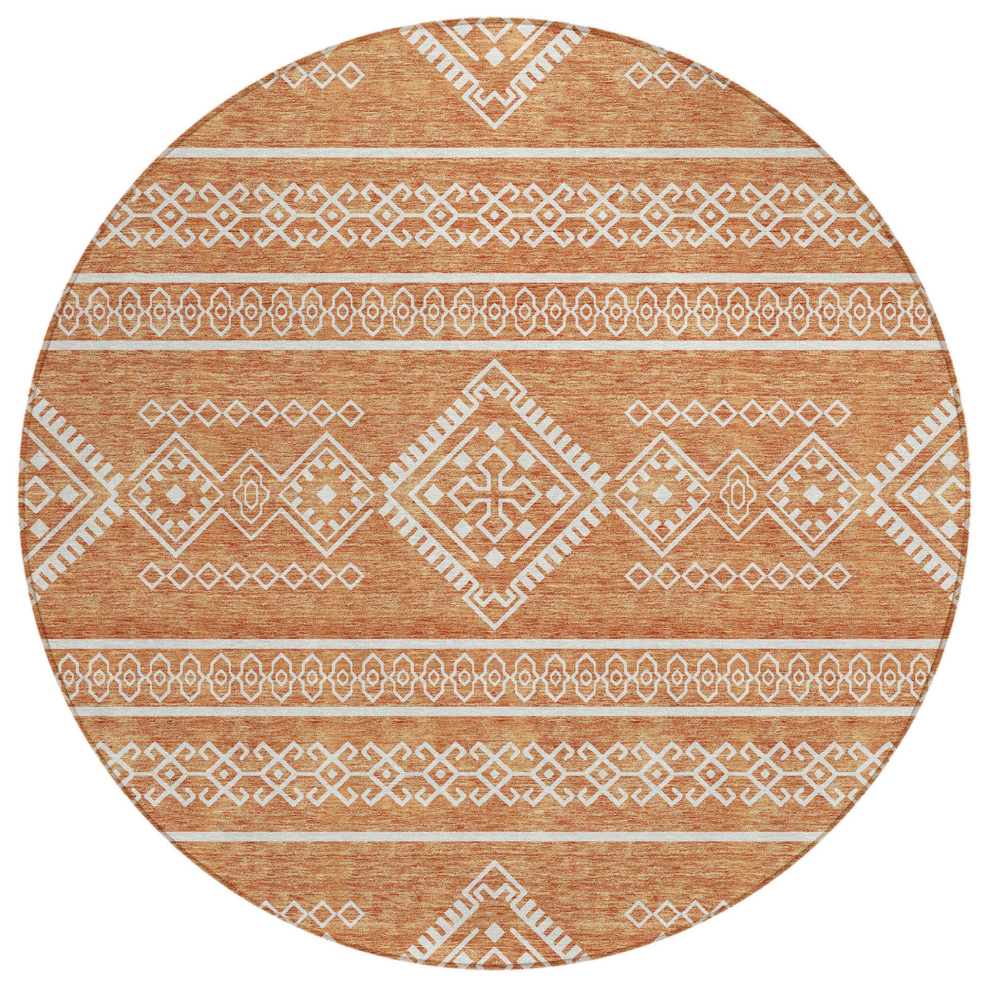 Tabselect Home Line 8' Copper And Ivory Round Southwestern Washable Indoor Outdoor Area Rug