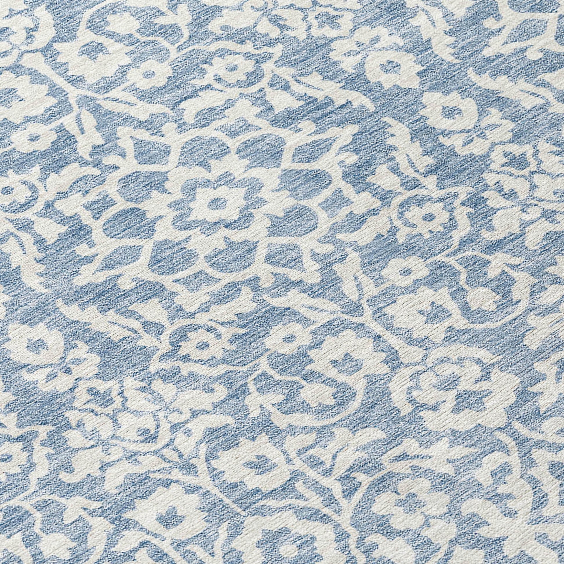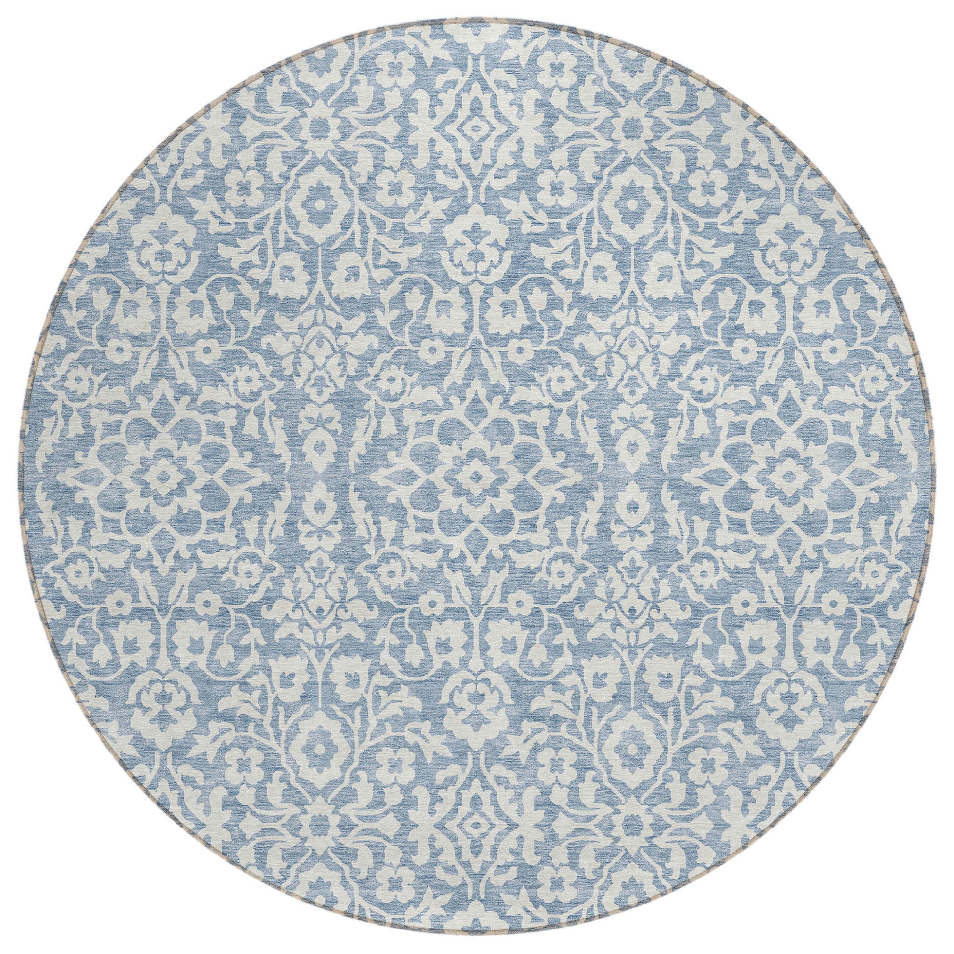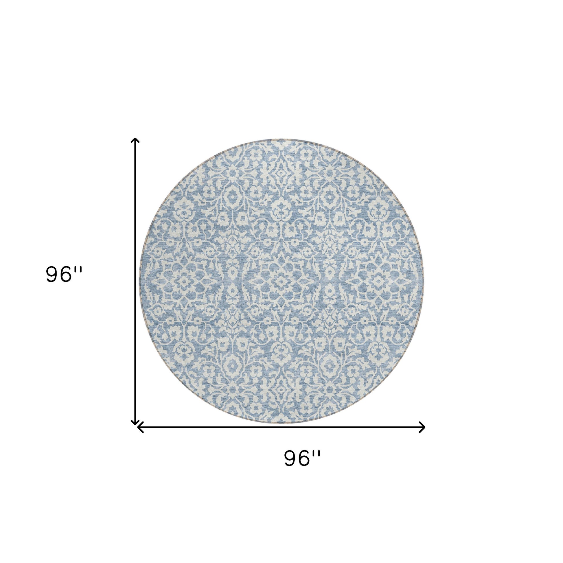 Tabselect Home Line 8' Denim Blue And Ivory Round Damask Washable Indoor Outdoor Area Rug