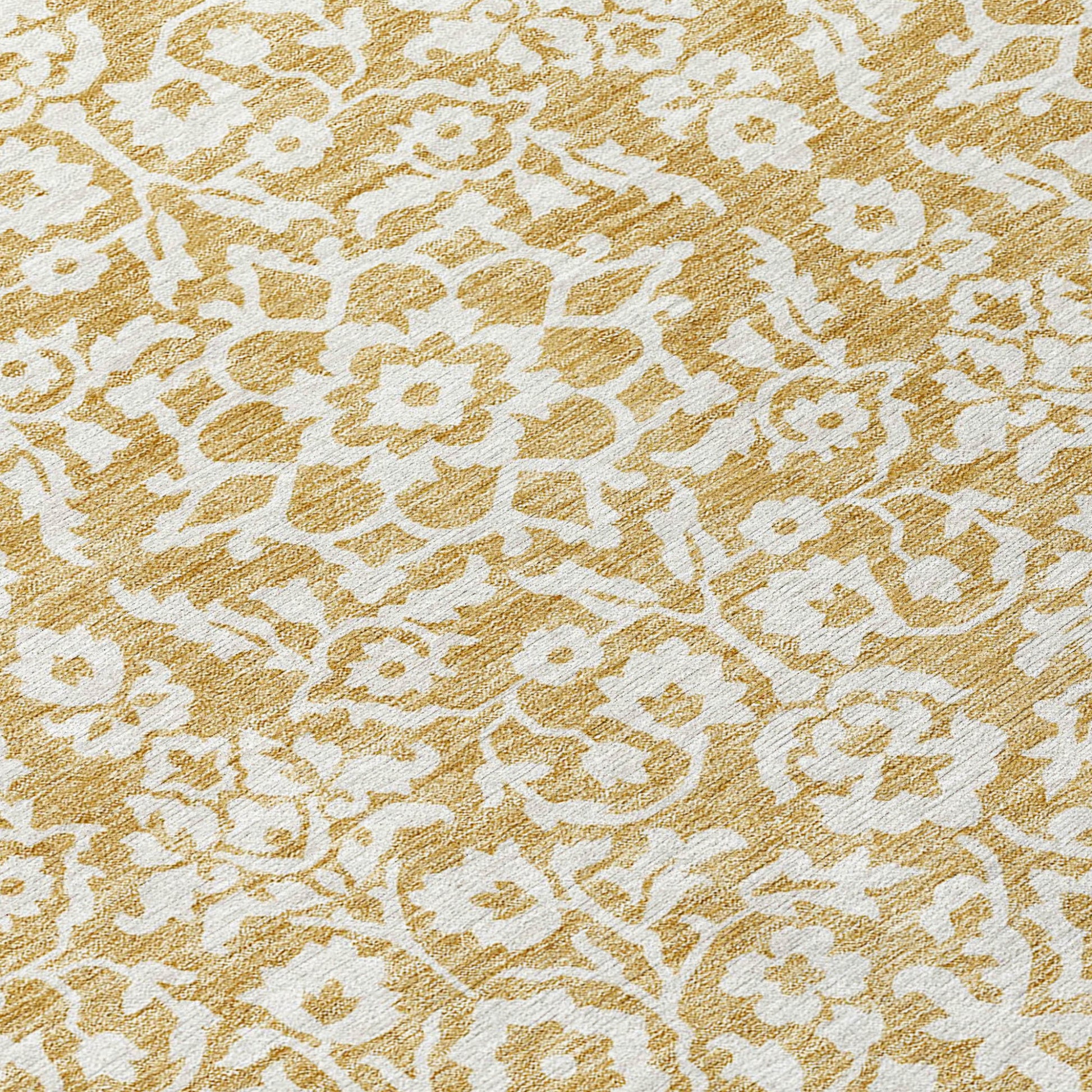 Tabselect Home Line 8' Gold And Beige Round Damask Washable Indoor Outdoor Area Rug