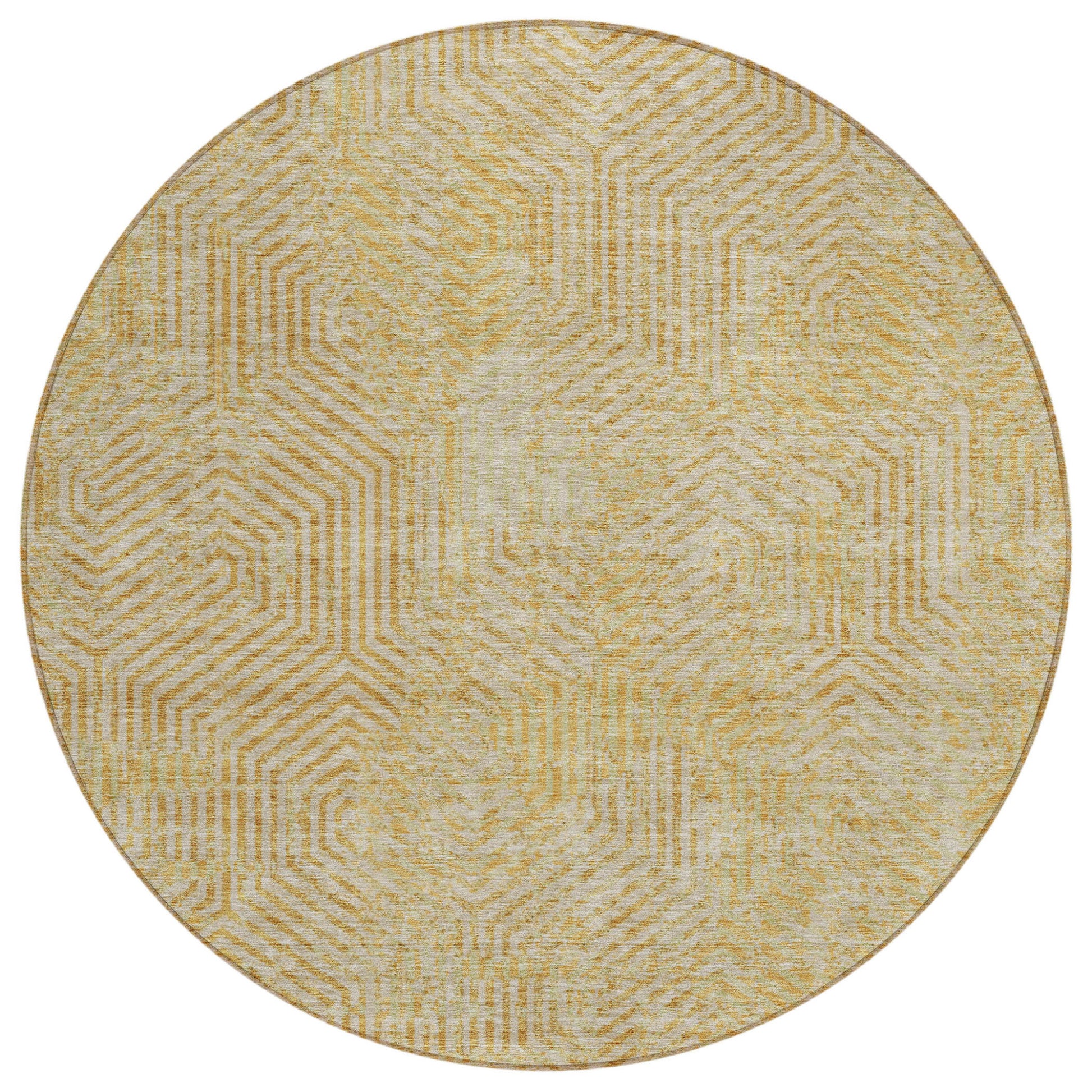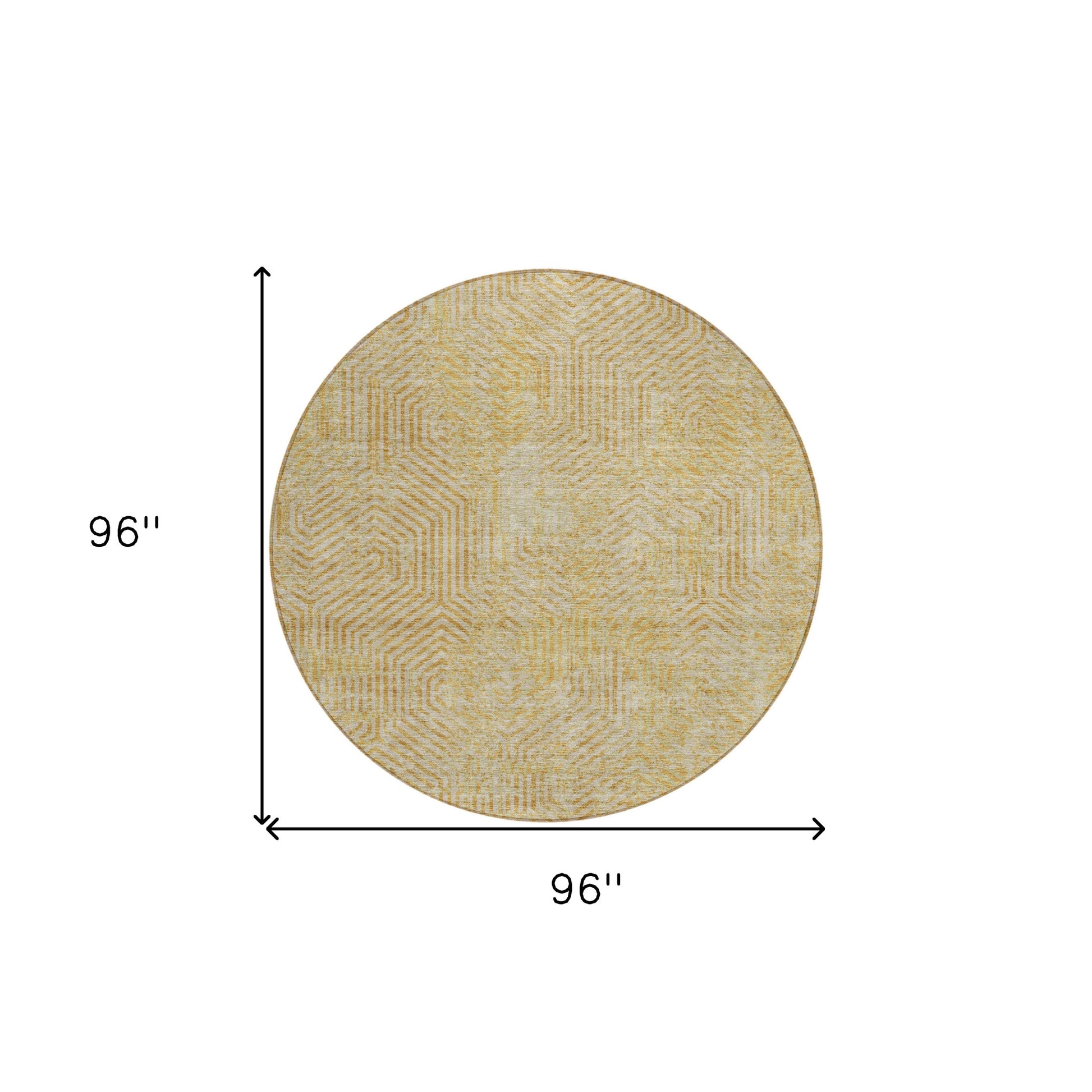 Tabselect Home Line 8' Gold And Beige Round Geometric Washable Indoor Outdoor Area Rug