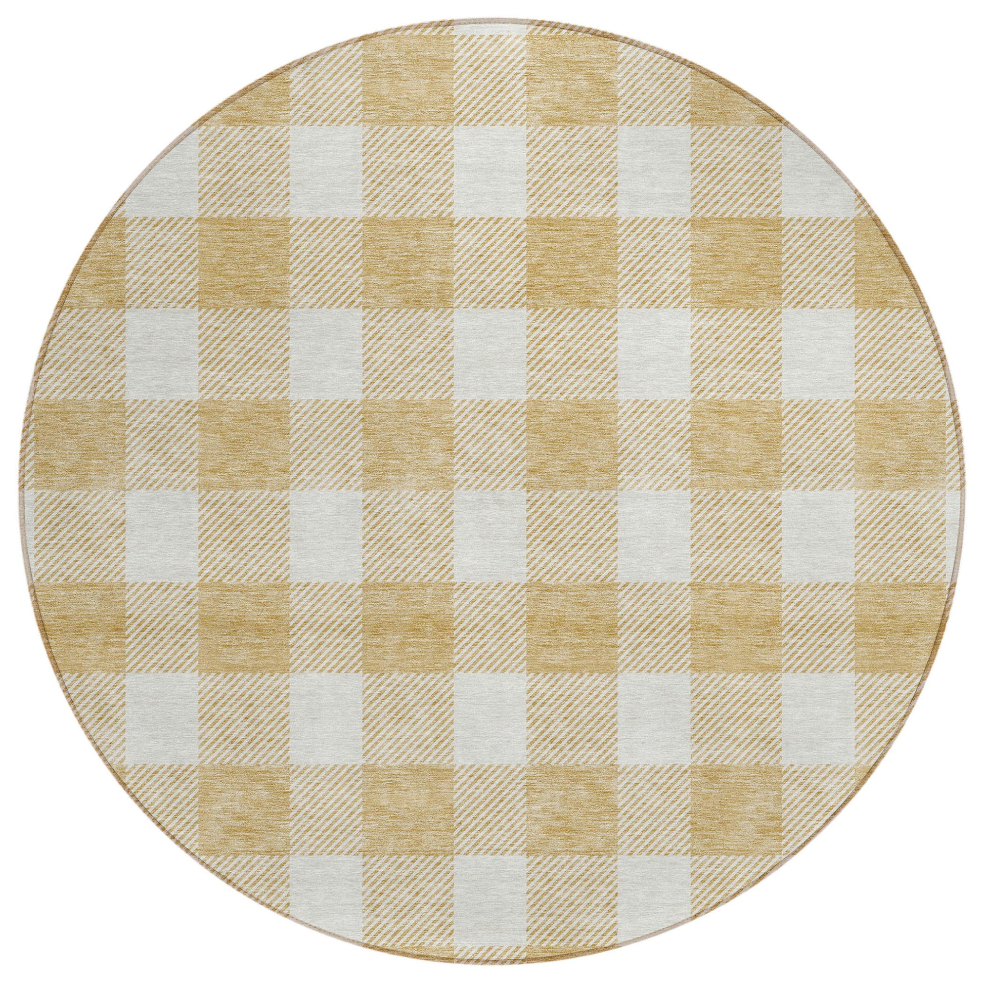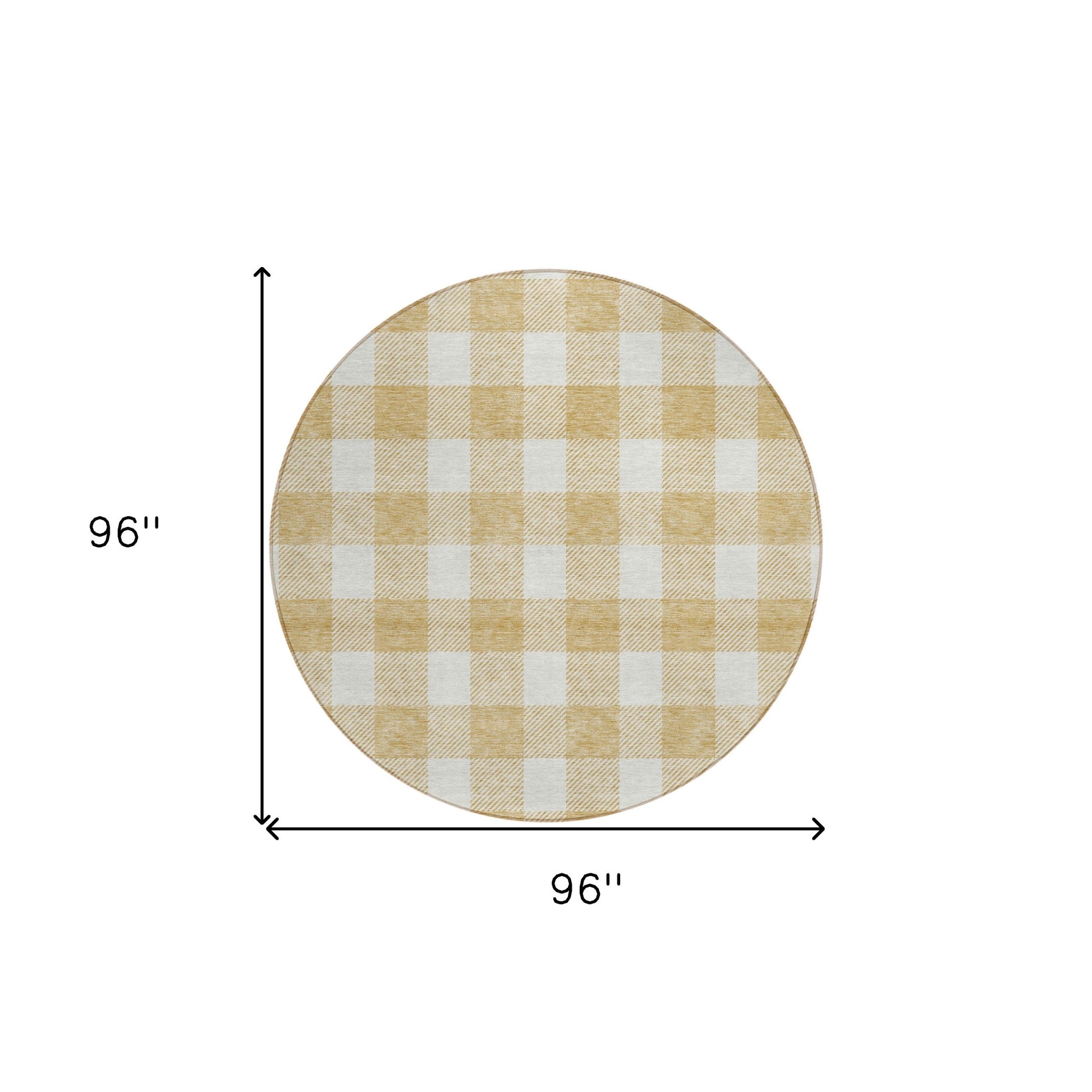 Tabselect Home Line 8' Gold And Beige Round Plaid Washable Indoor Outdoor Area Rug