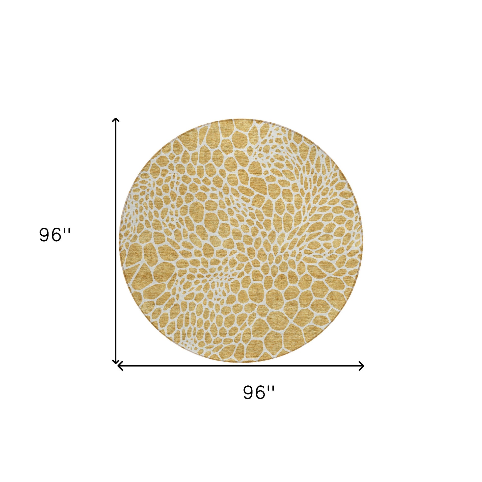Tabselect Home Line 8' Gold And Ivory Round Geometric Washable Indoor Outdoor Area Rug