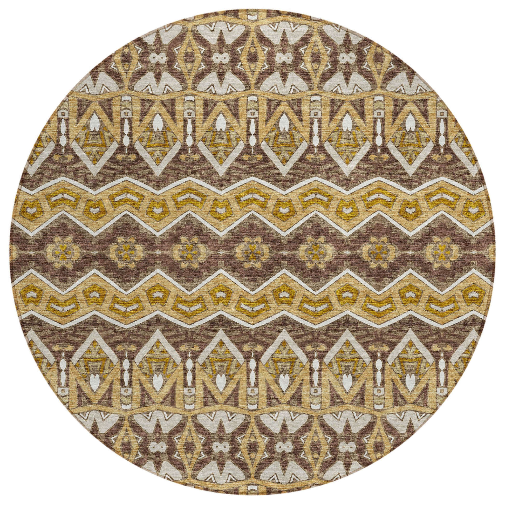 Tabselect Home Line 8' Gold Brown And Beige Round Moroccan Washable Indoor Outdoor Area Rug