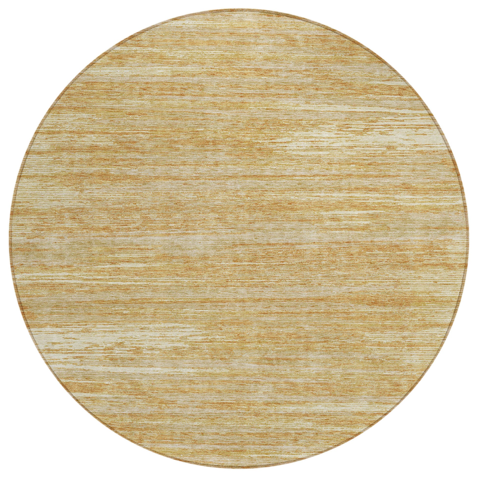 Tabselect Home Line 8' Gold Gray And Ivory Round Striped Washable Indoor Outdoor Area Rug