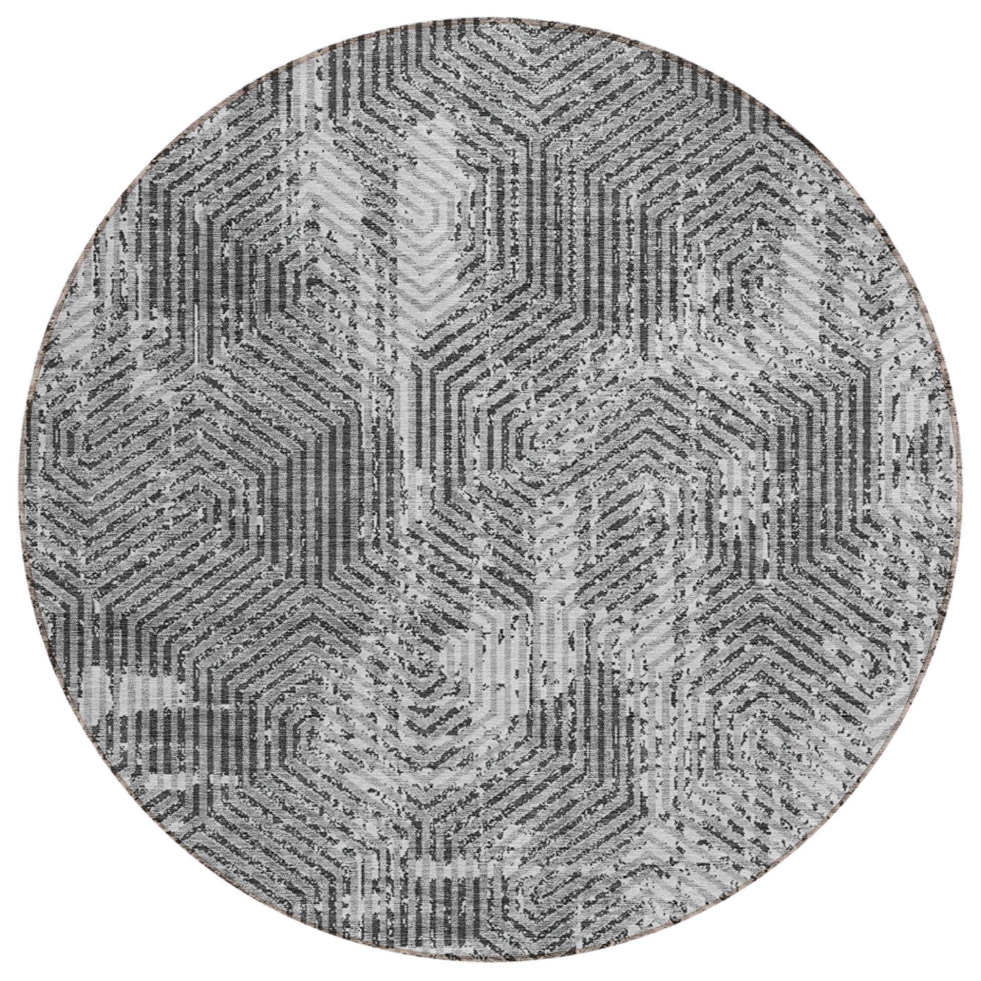 Tabselect Home Line 8' Gray And Charcoal Round Geometric Washable Indoor Outdoor Area Rug