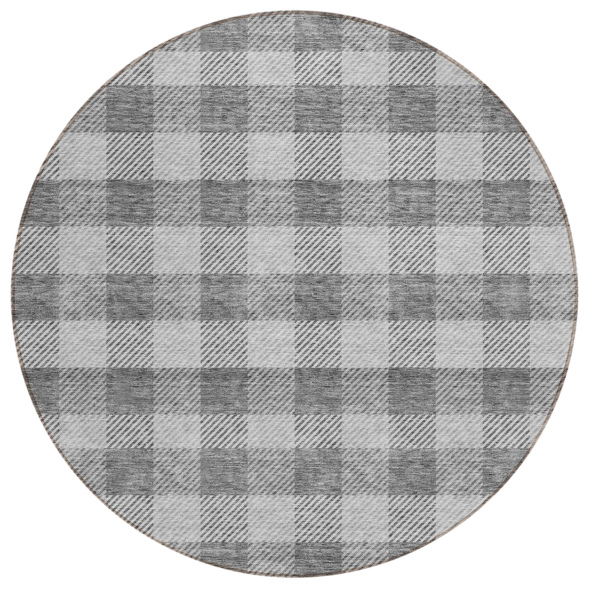 Tabselect Home Line 8' Gray And Charcoal Round Plaid Washable Indoor Outdoor Area Rug