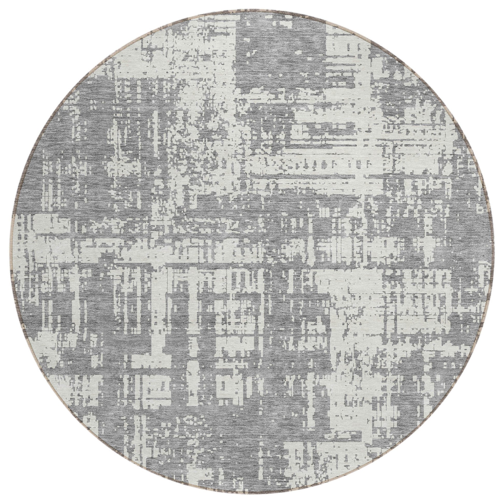 Tabselect Home Line 8' Gray And Ivory Round Abstract Washable Indoor Outdoor Area Rug