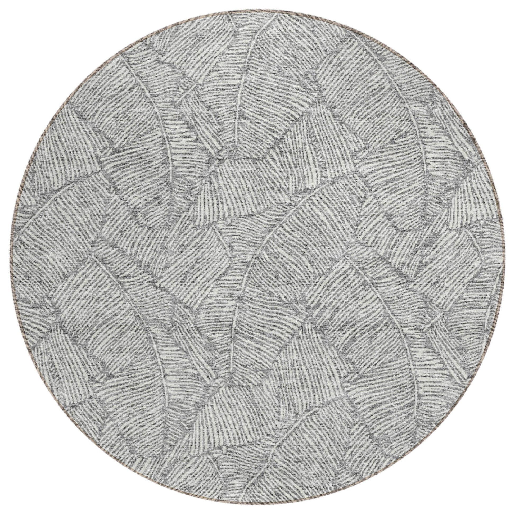 Tabselect Home Line 8' Gray And Ivory Round Floral Washable Indoor Outdoor Area Rug