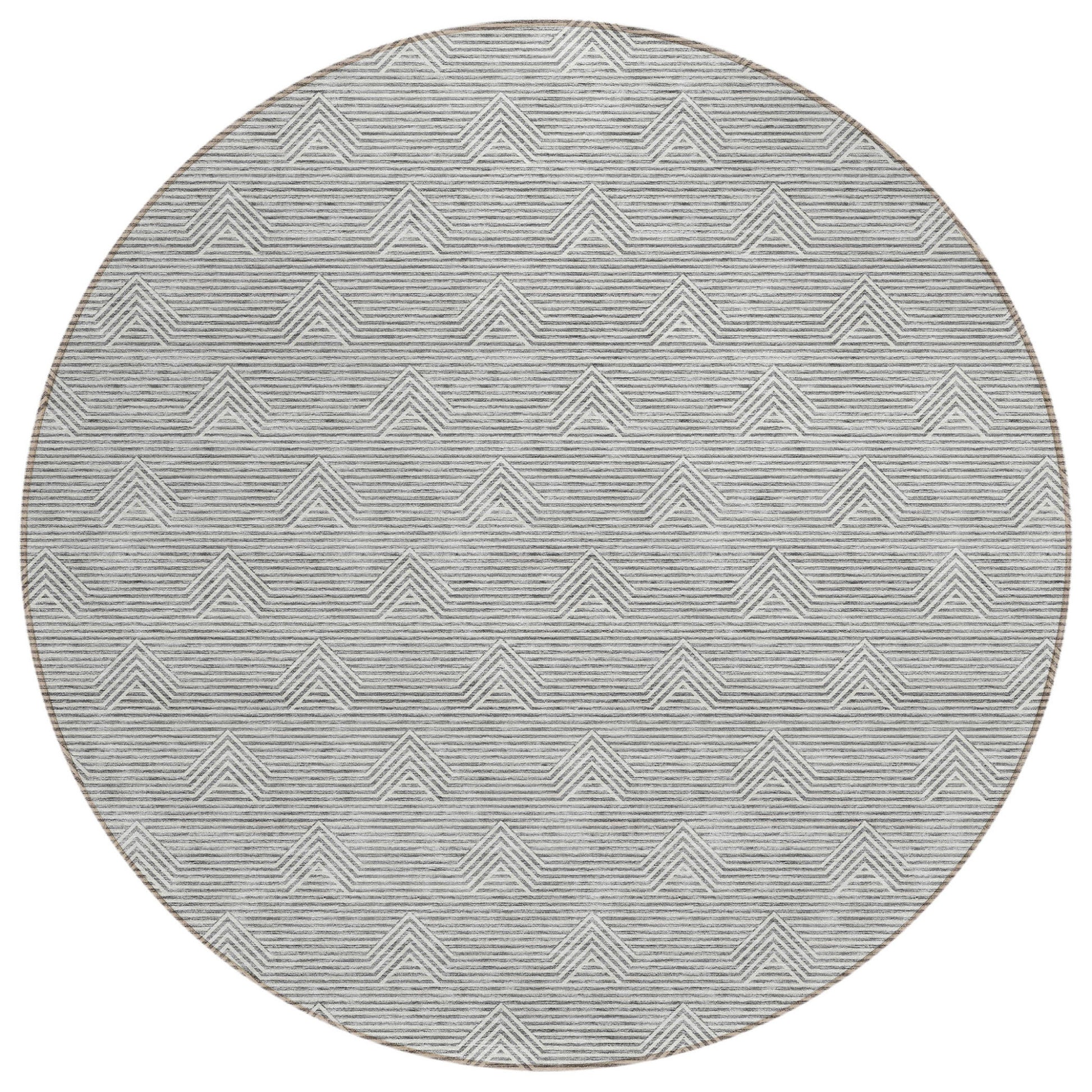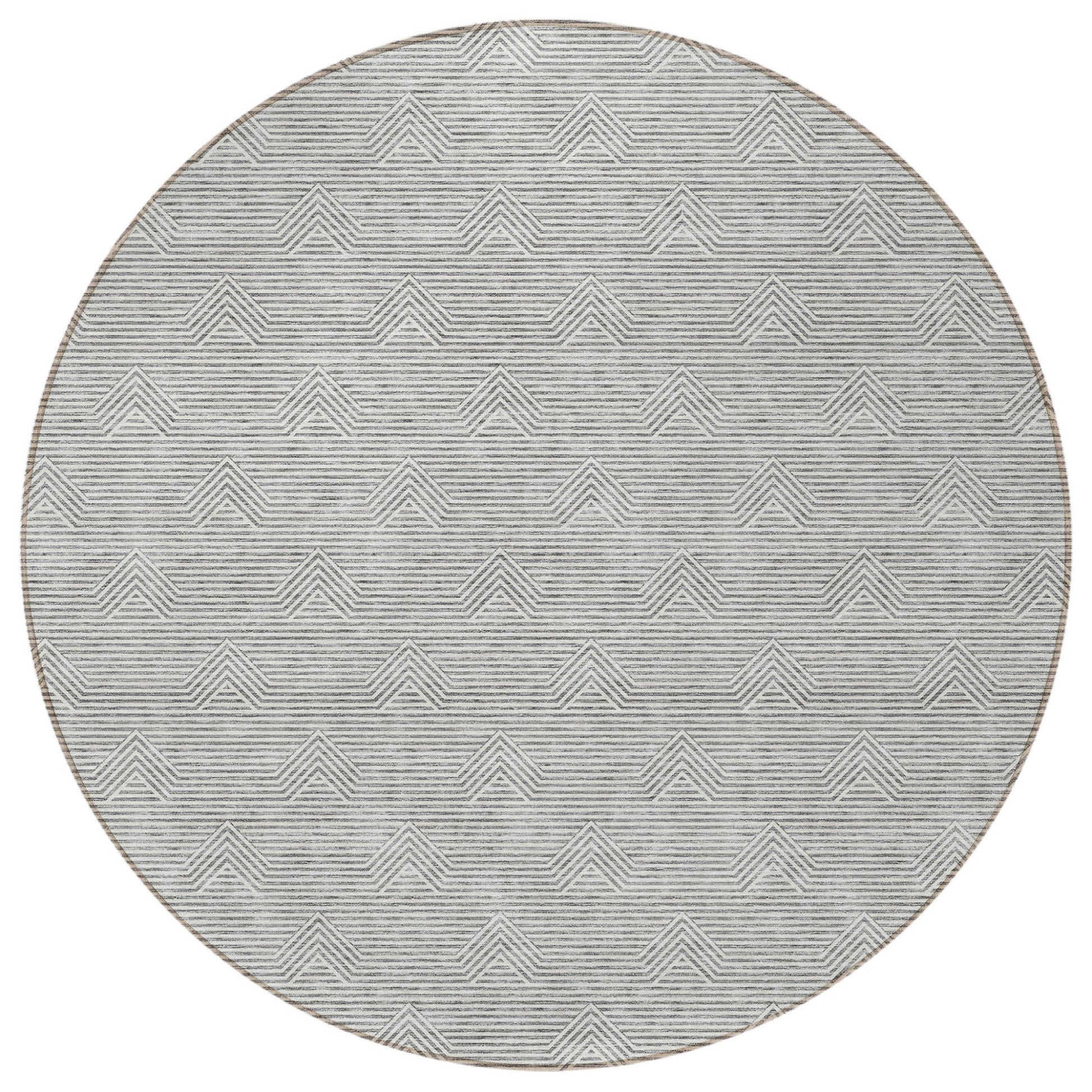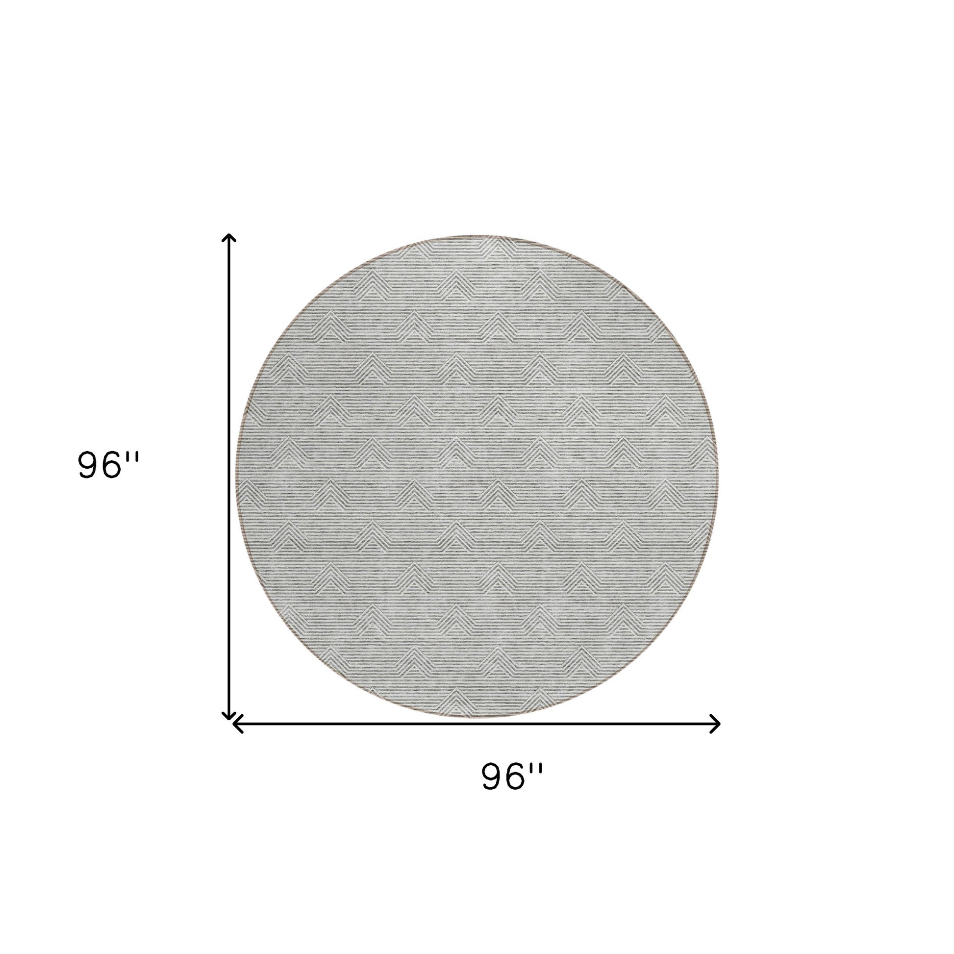 Tabselect Home Line 8' Gray And Ivory Round Geometric Washable Indoor Outdoor Area Rug