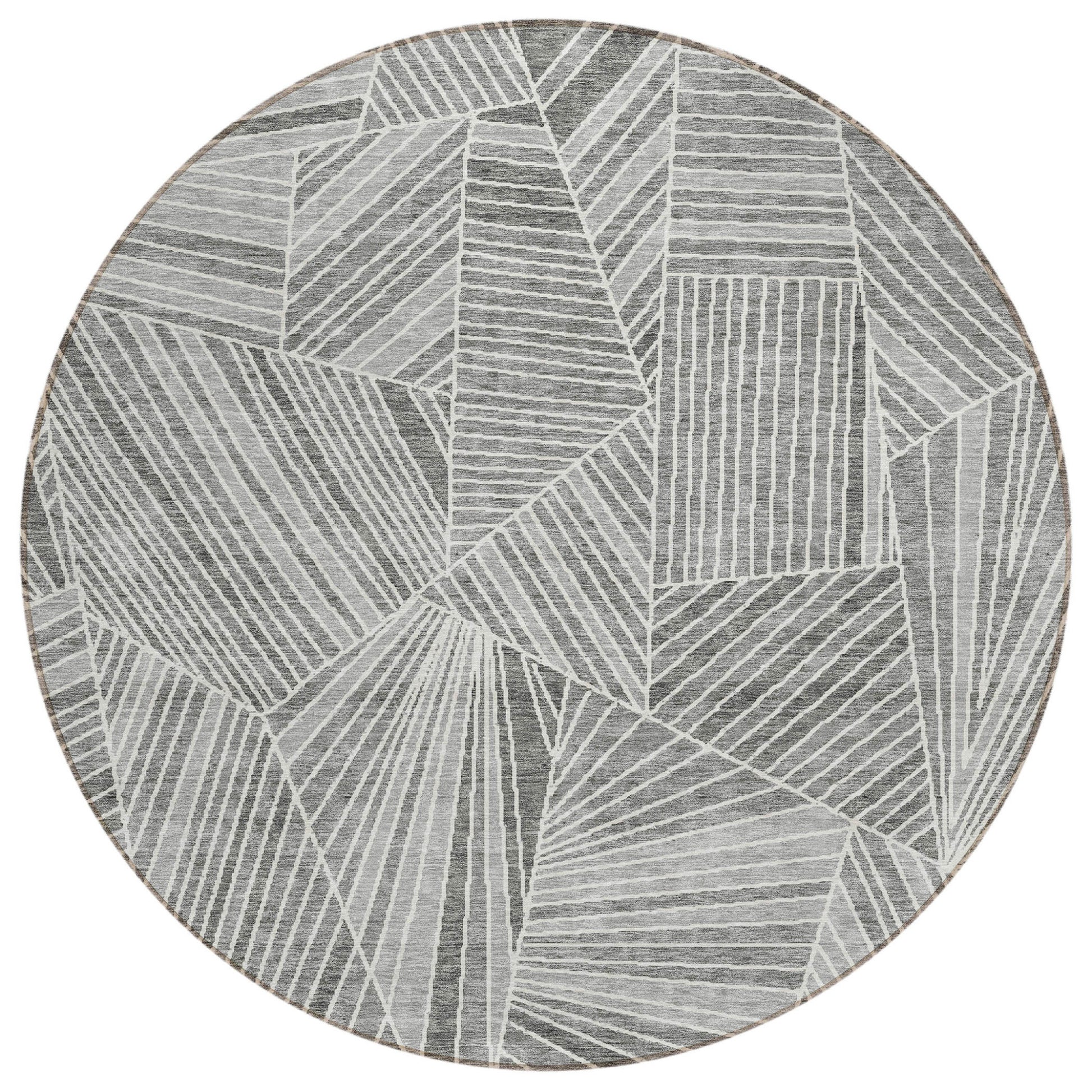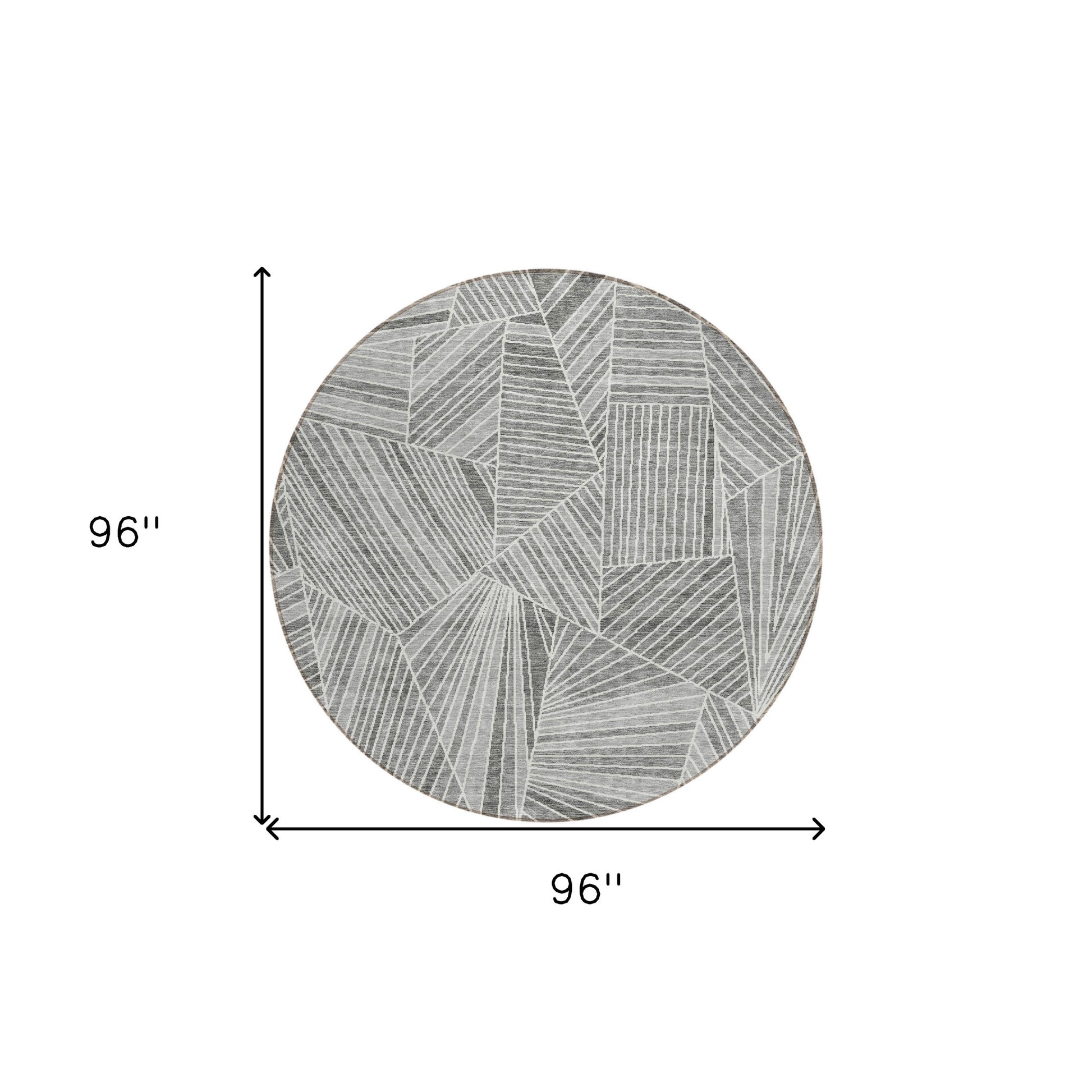Tabselect Home Line 8' Gray And Ivory Round Geometric Washable Indoor Outdoor Area Rug