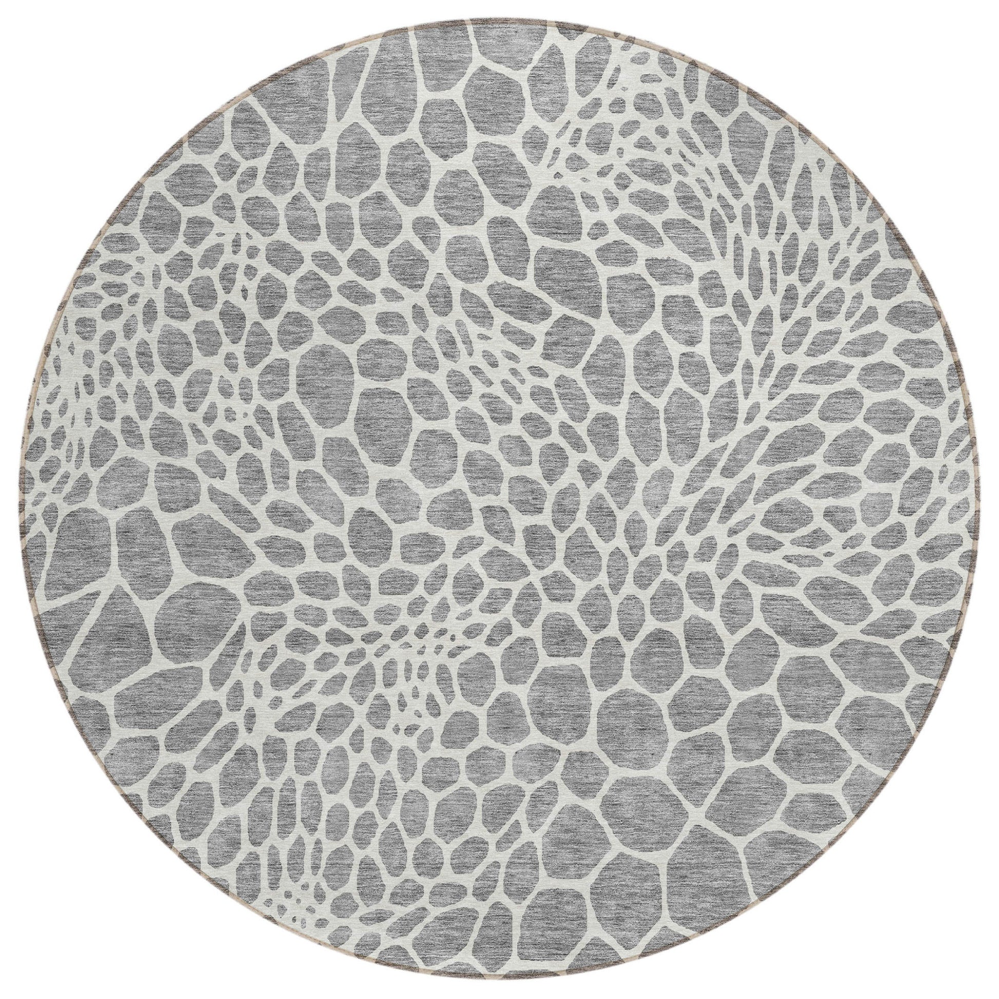 Tabselect Home Line 8' Gray And Ivory Round Geometric Washable Indoor Outdoor Area Rug