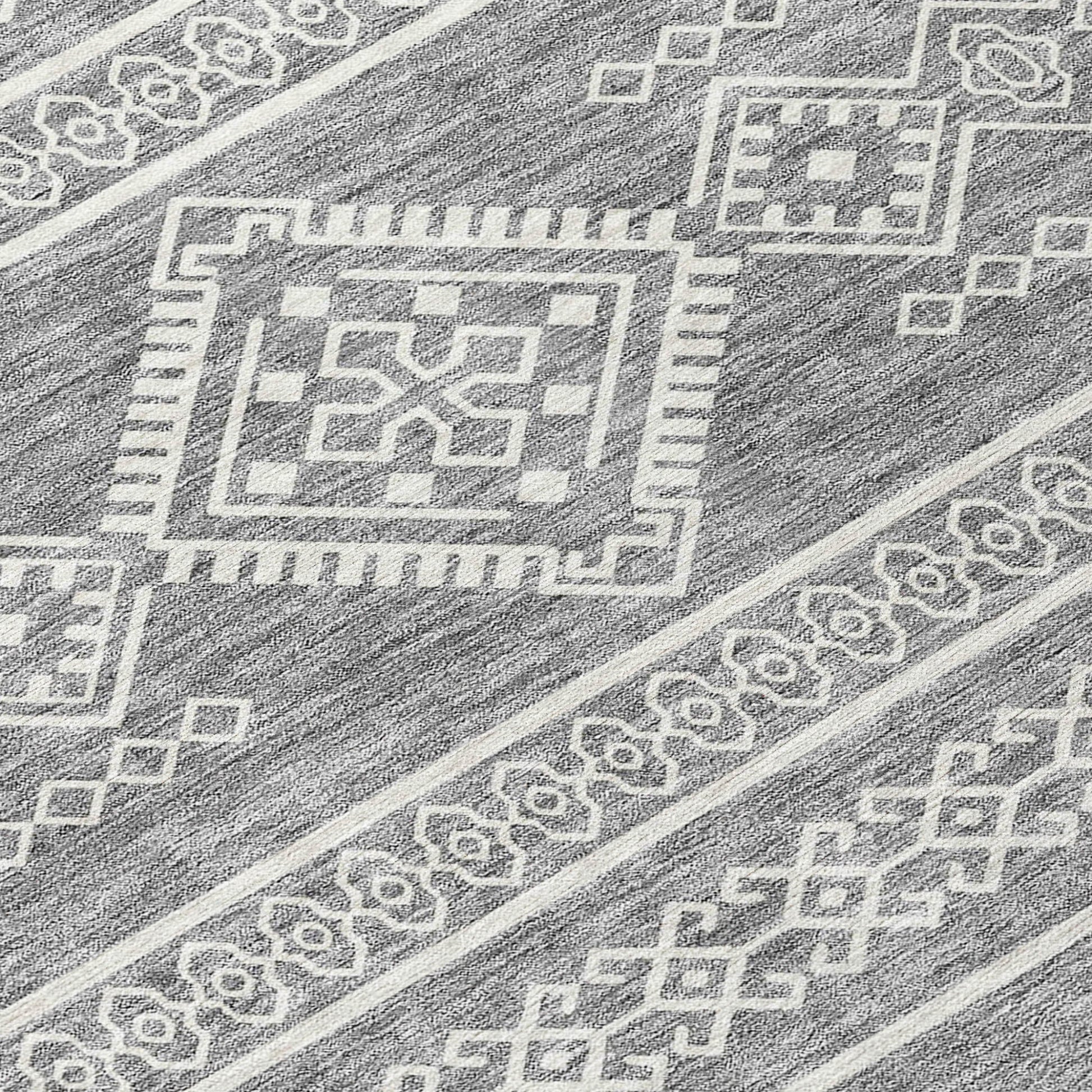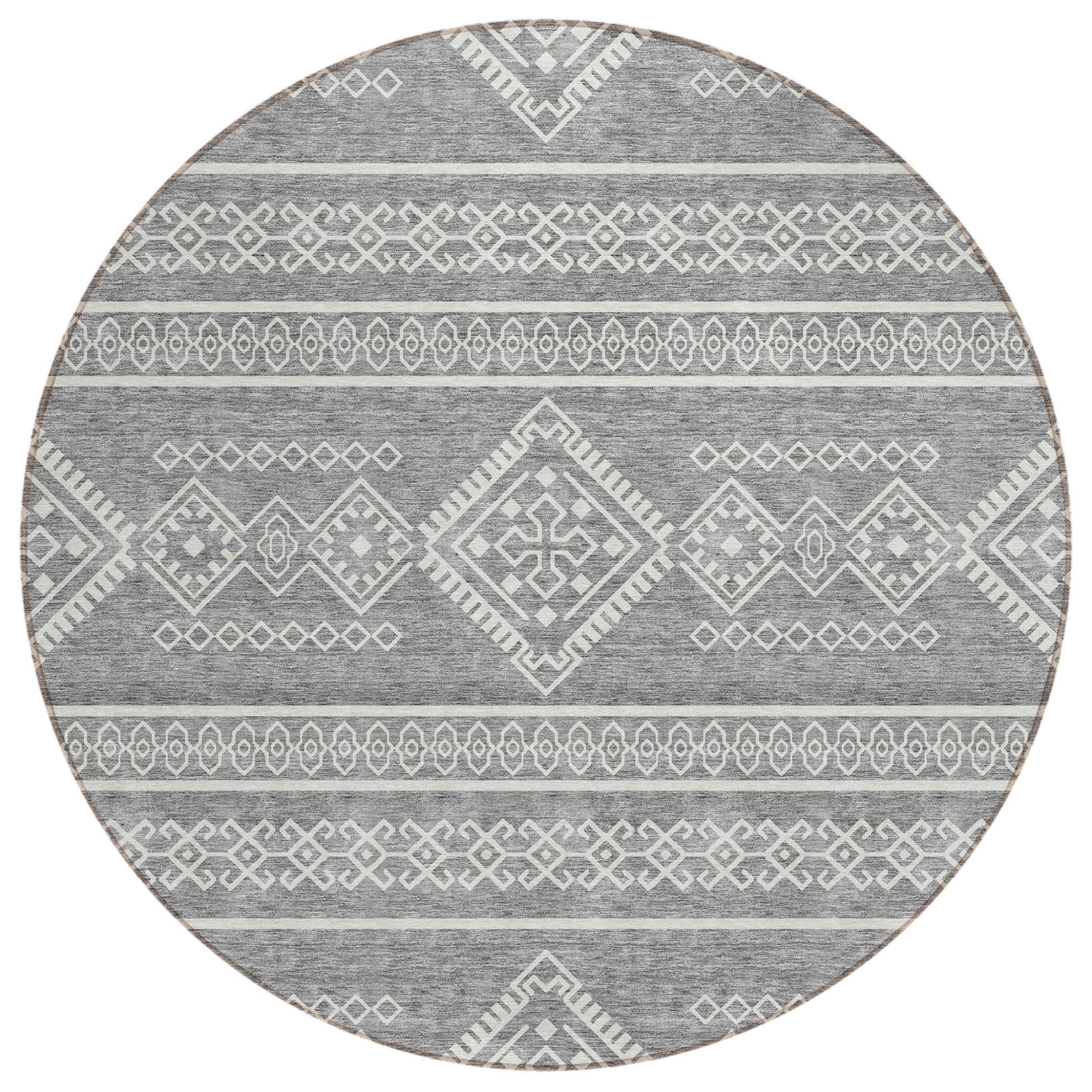 Tabselect Home Line 8' Gray And Ivory Round Southwestern Washable Indoor Outdoor Area Rug