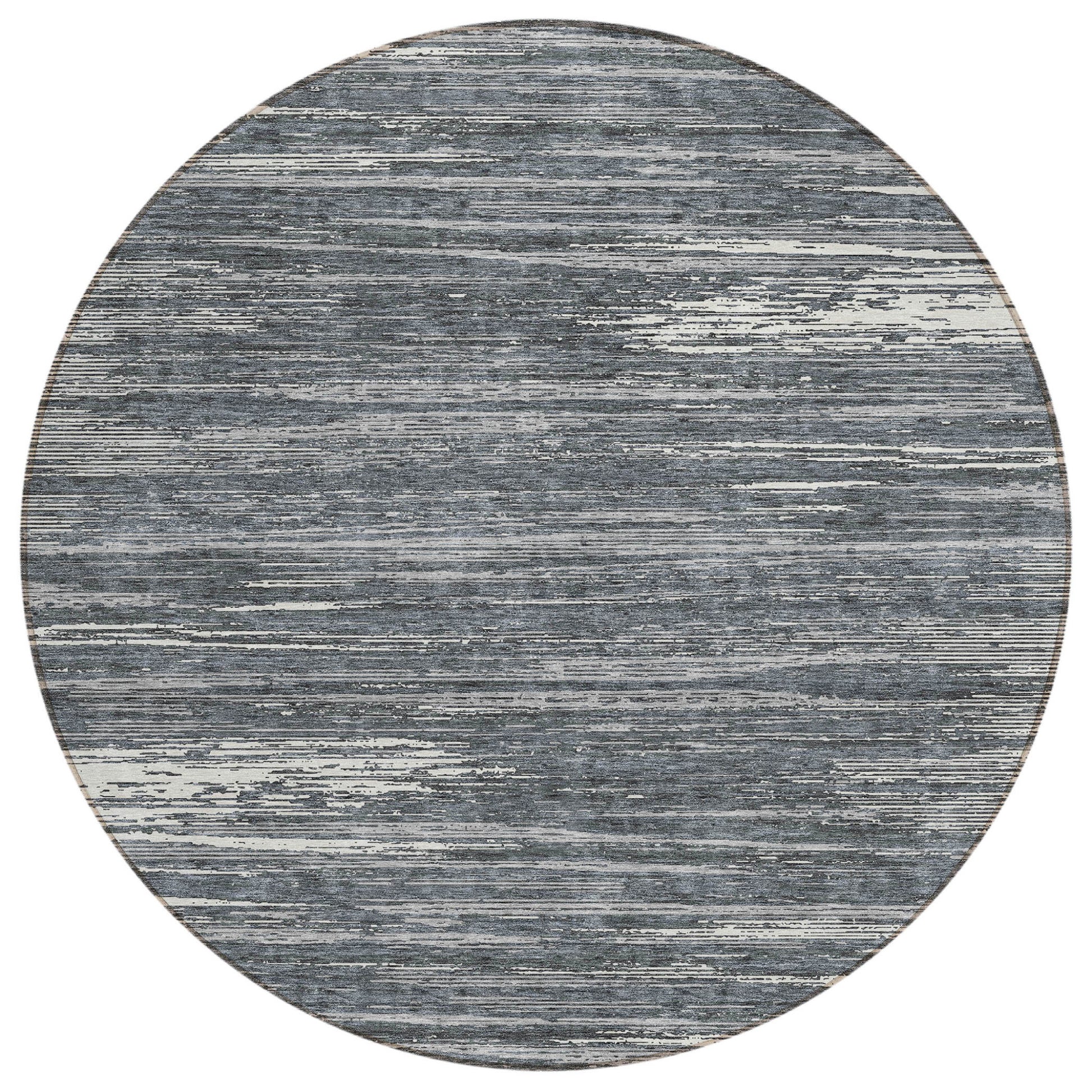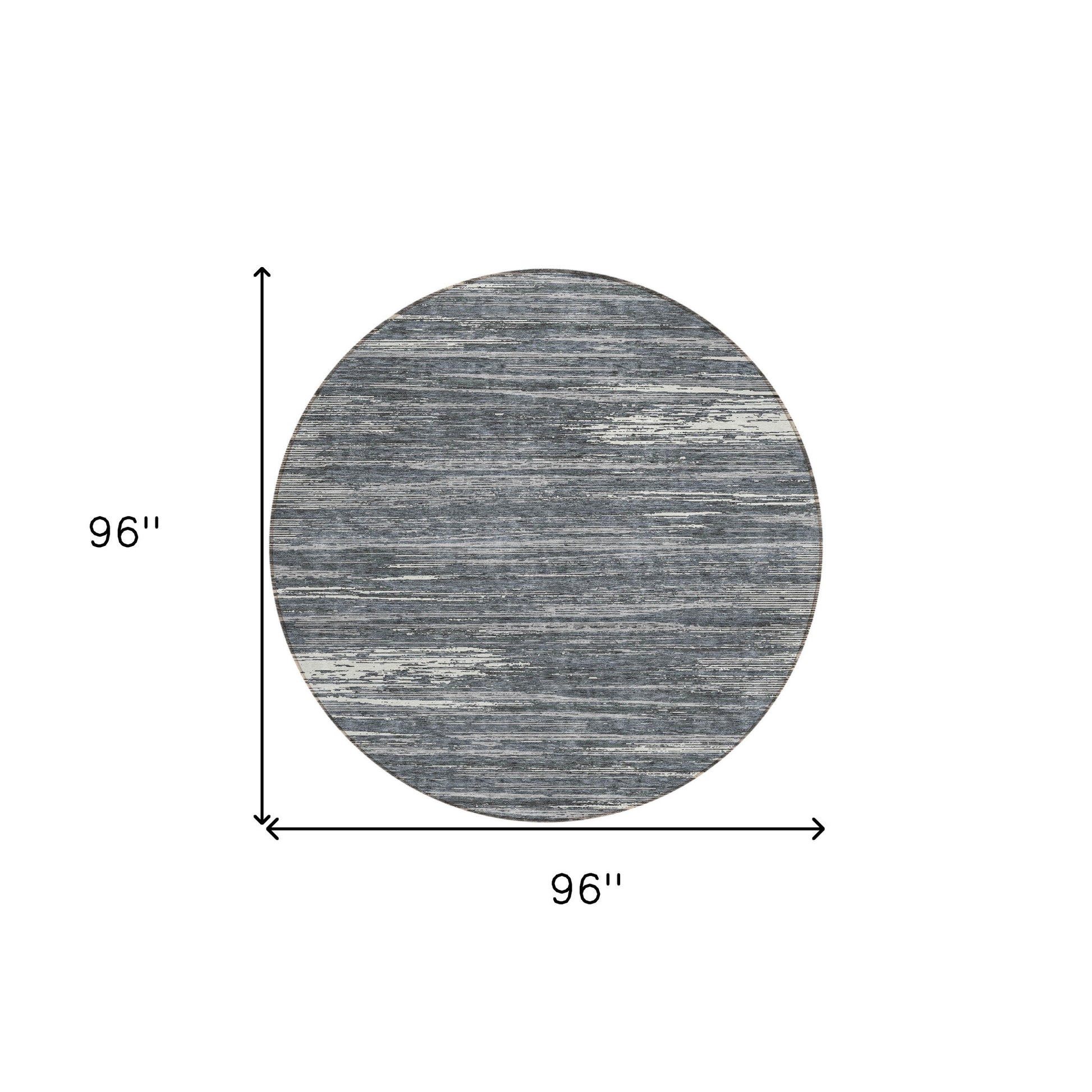 Tabselect Home Line 8' Gray And Ivory Round Striped Washable Indoor Outdoor Area Rug