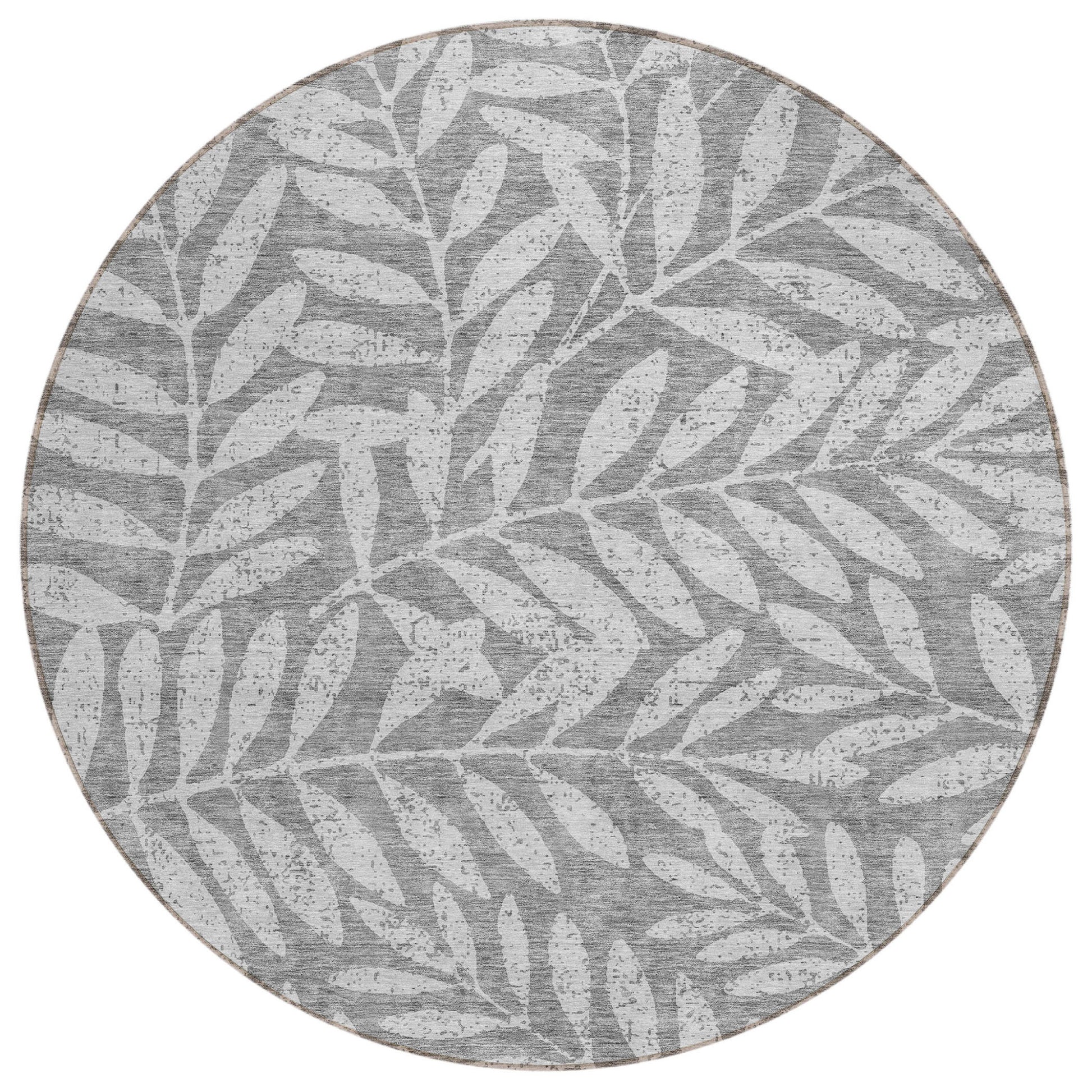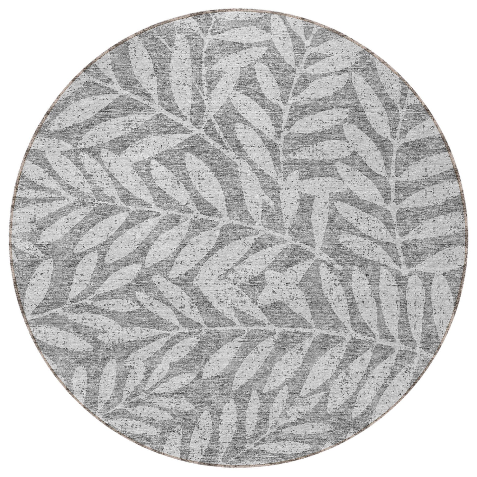 Tabselect Home Line 8' Gray And Light Gray Round Floral Washable Indoor Outdoor Area Rug