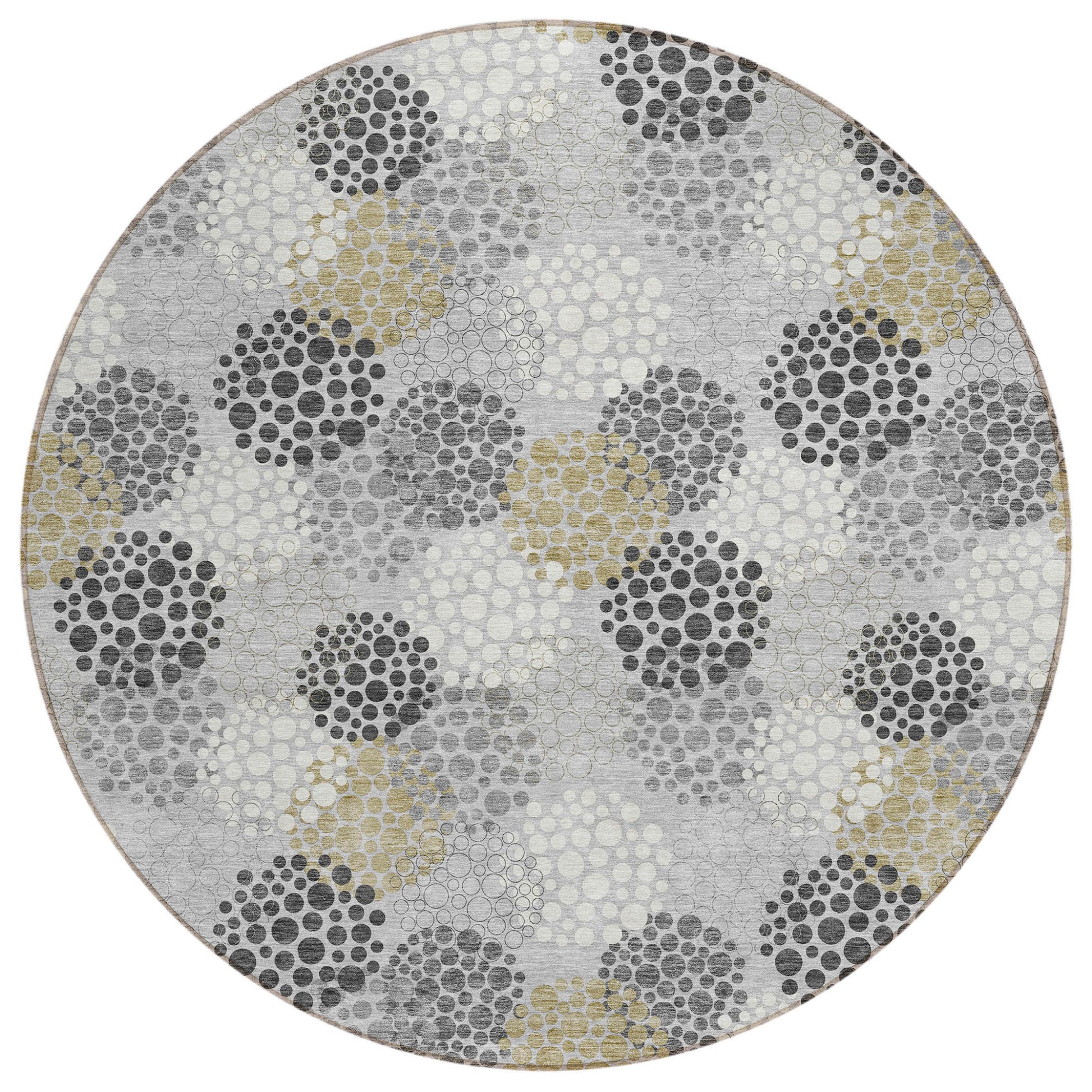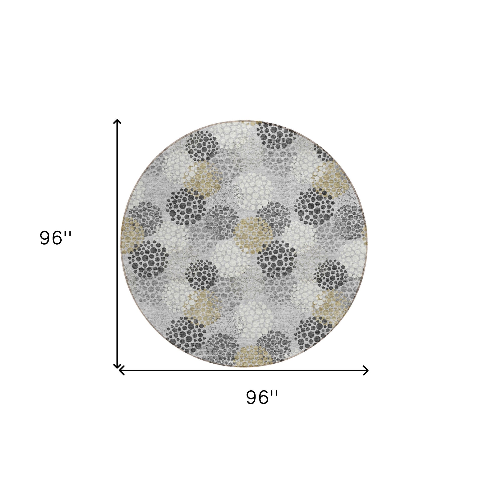 Tabselect Home Line 8' Gray Silver And Ivory Round Polka Dot Washable Indoor Outdoor Area Rug