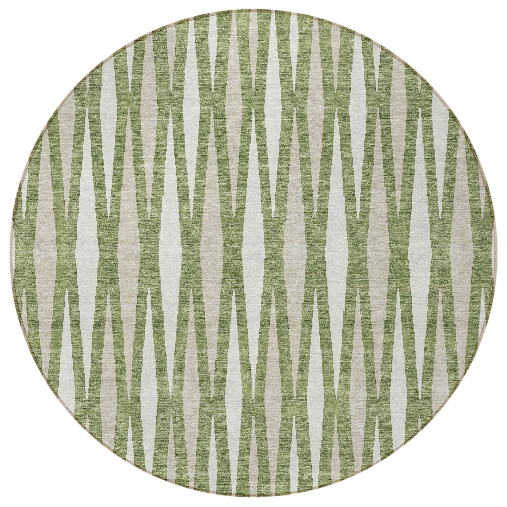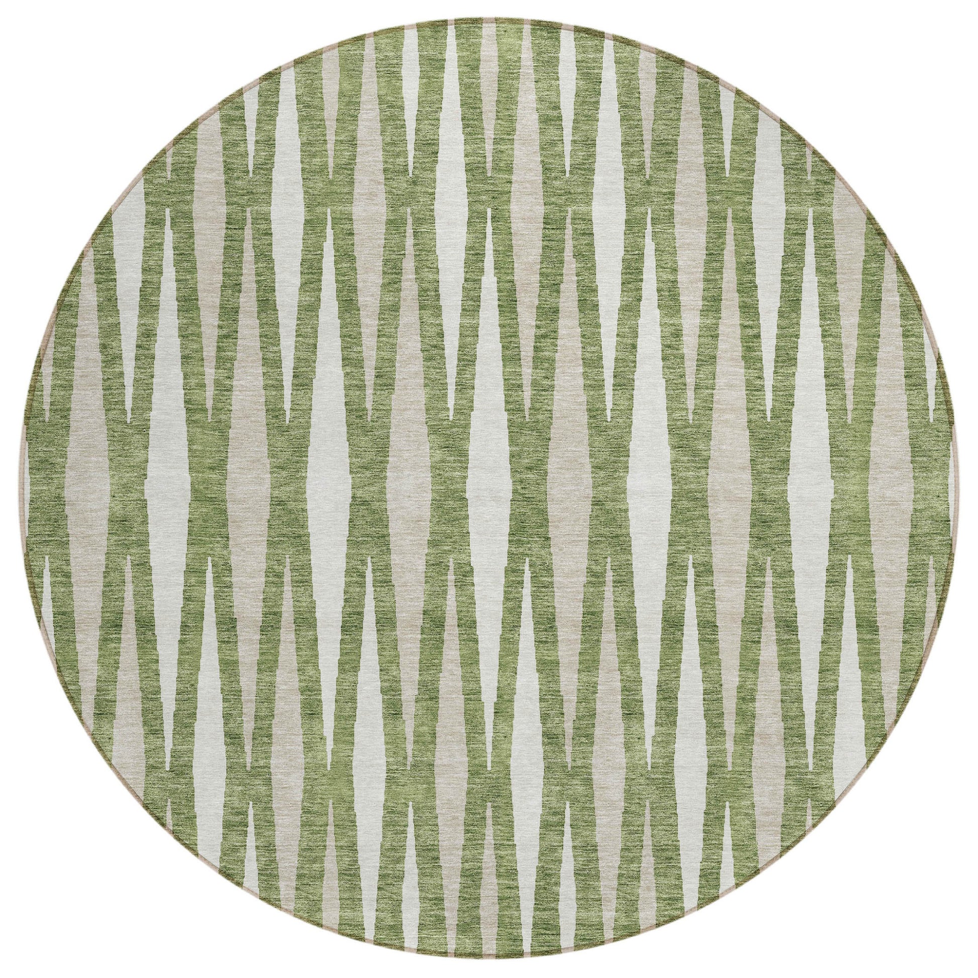 Tabselect Home Line 8' Green And Ivory Round Geometric Washable Indoor Outdoor Area Rug