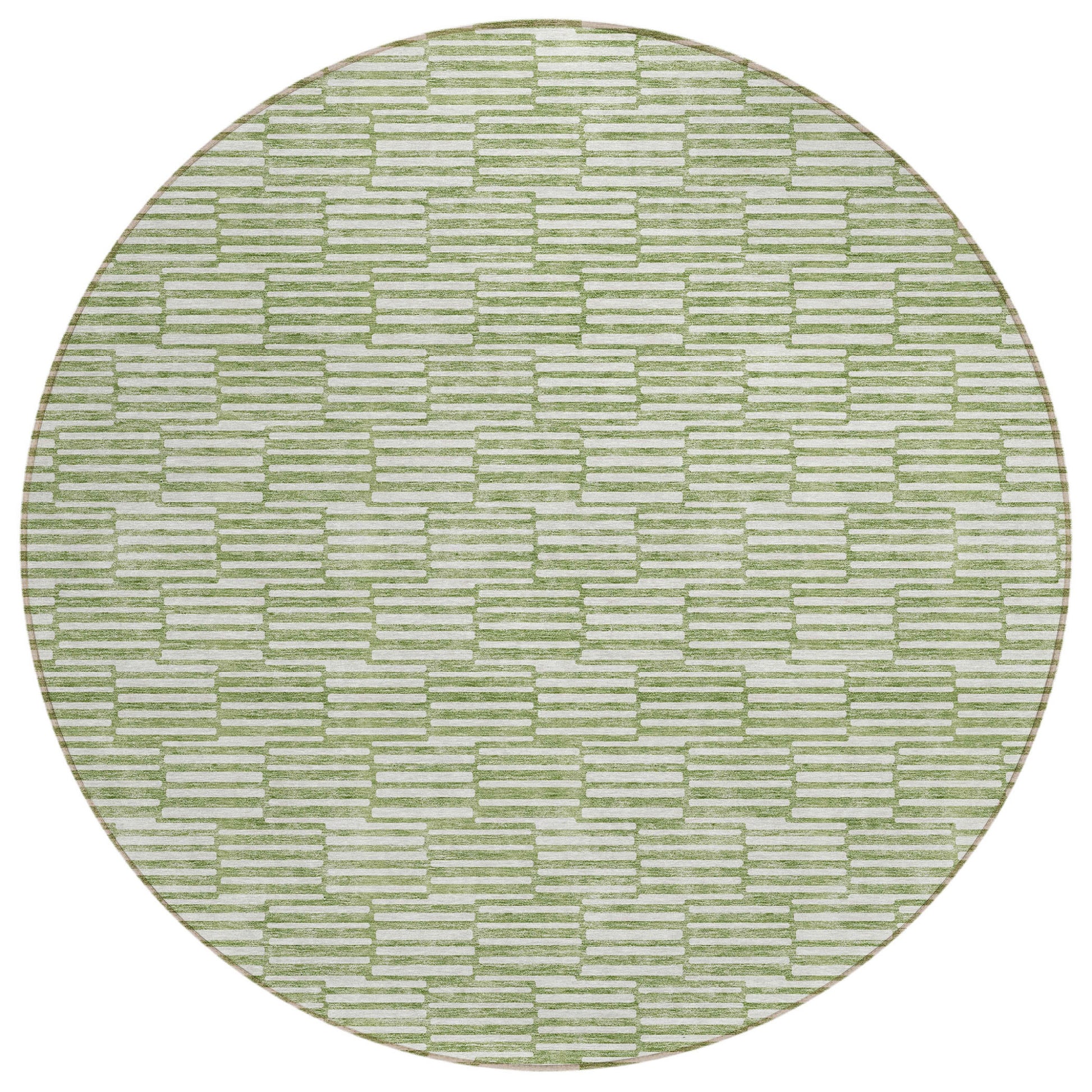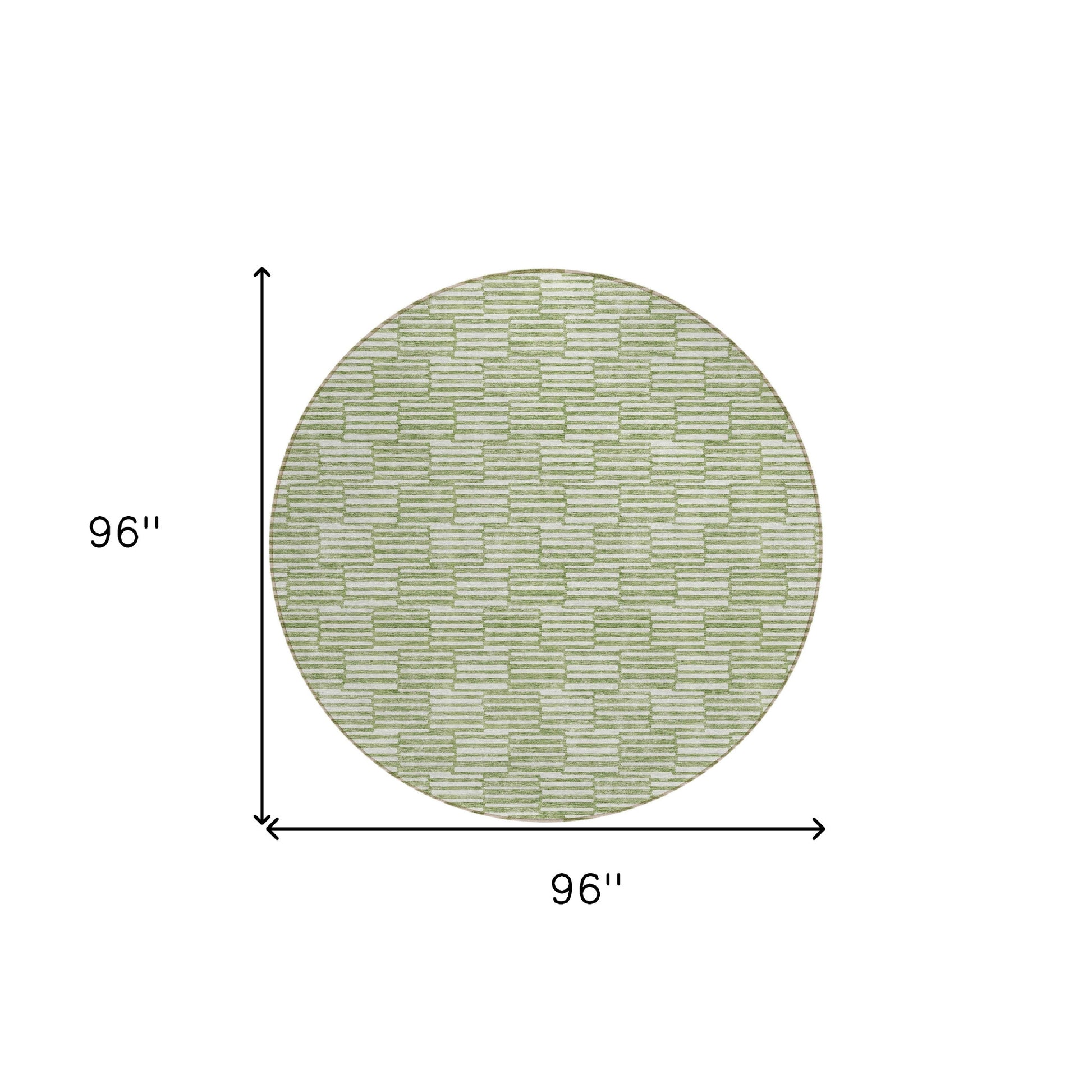 Tabselect Home Line 8' Green And Ivory Round Geometric Washable Indoor Outdoor Area Rug