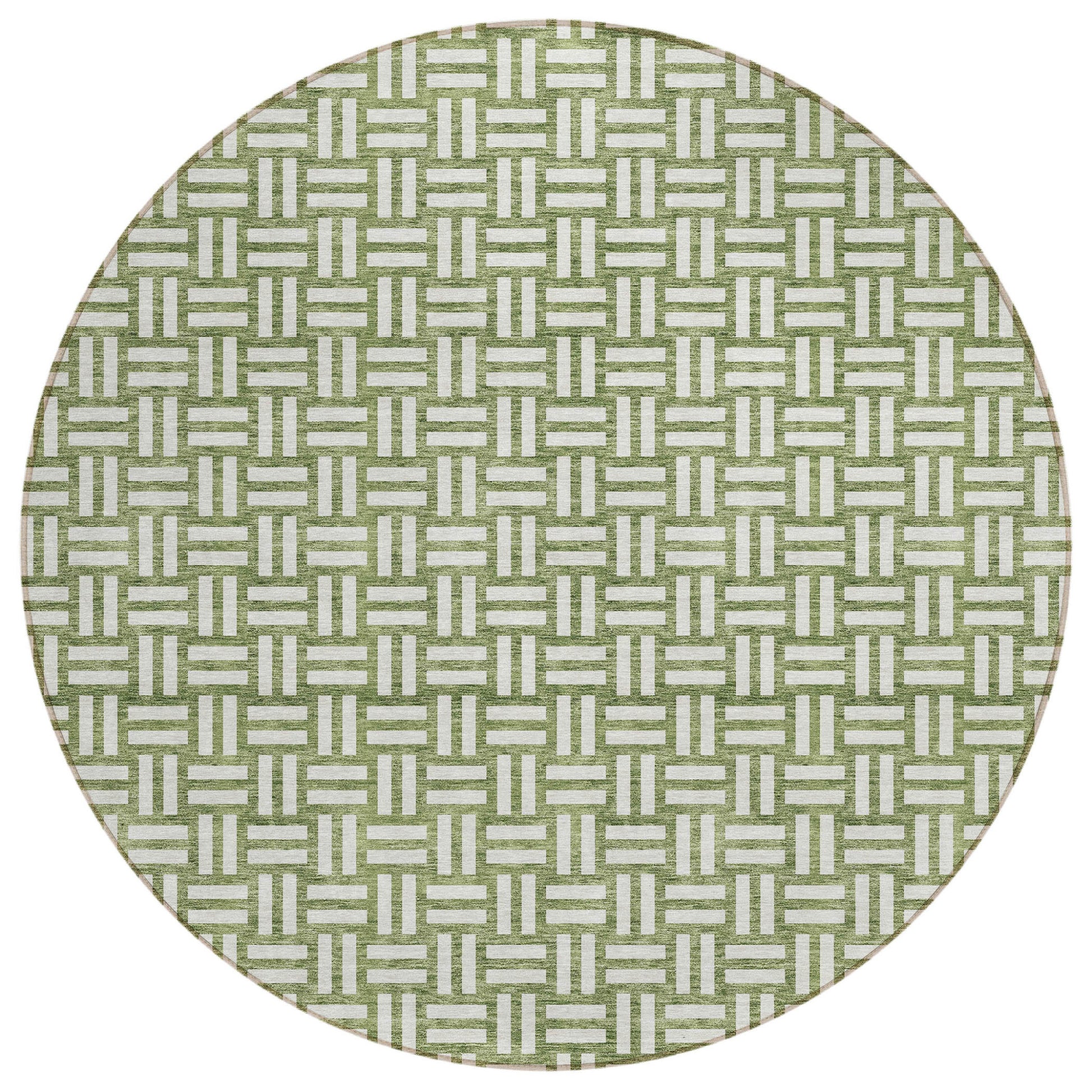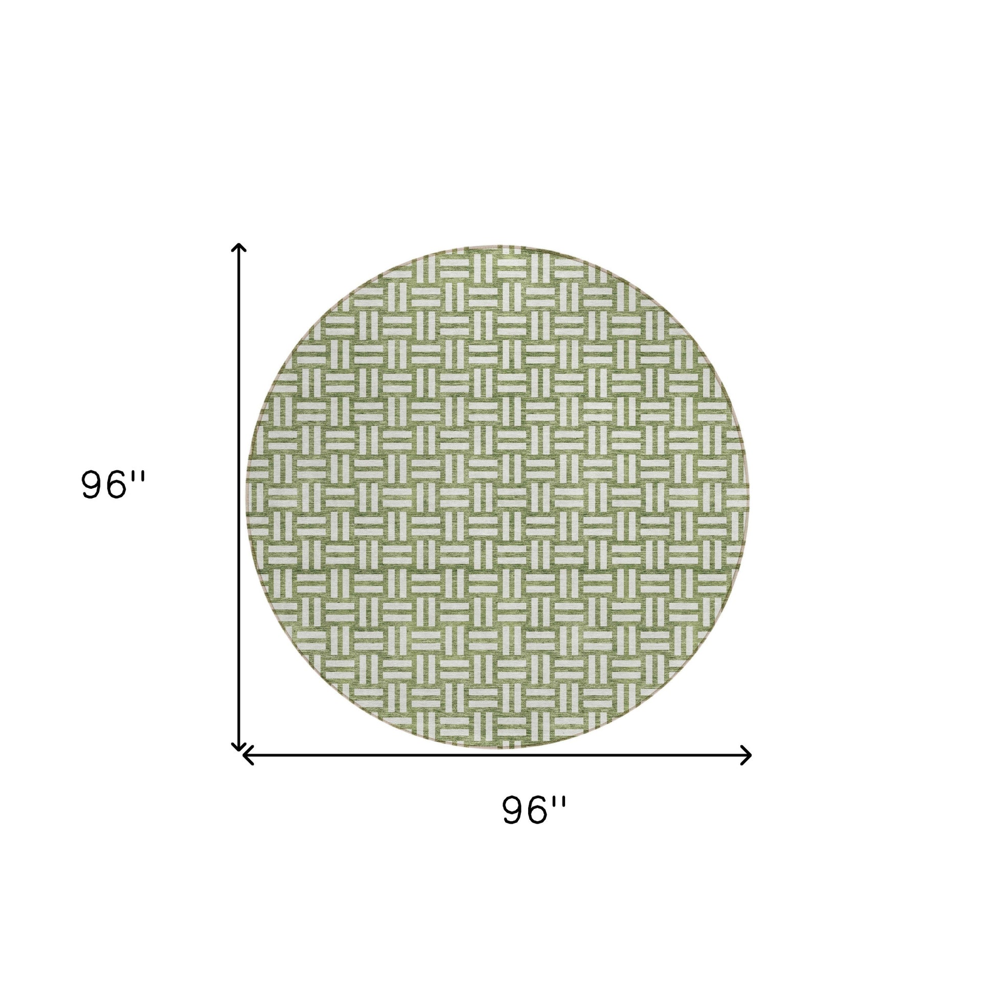 Tabselect Home Line 8' Green And Ivory Round Geometric Washable Indoor Outdoor Area Rug