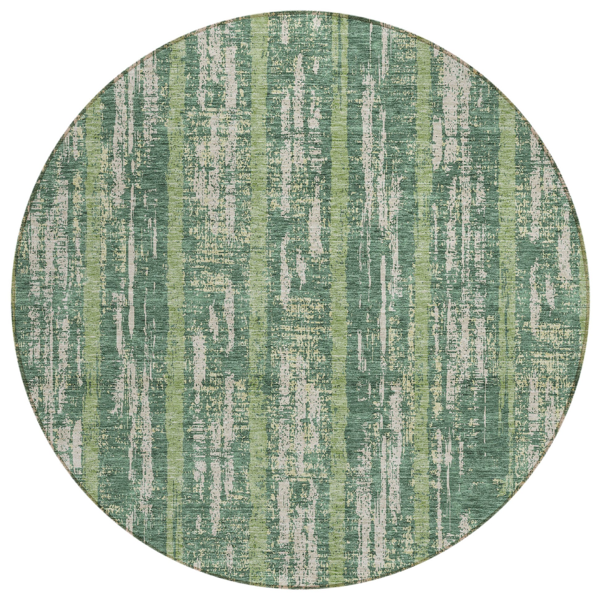 Tabselect Home Line 8' Green And Ivory Round Striped Washable Indoor Outdoor Area Rug