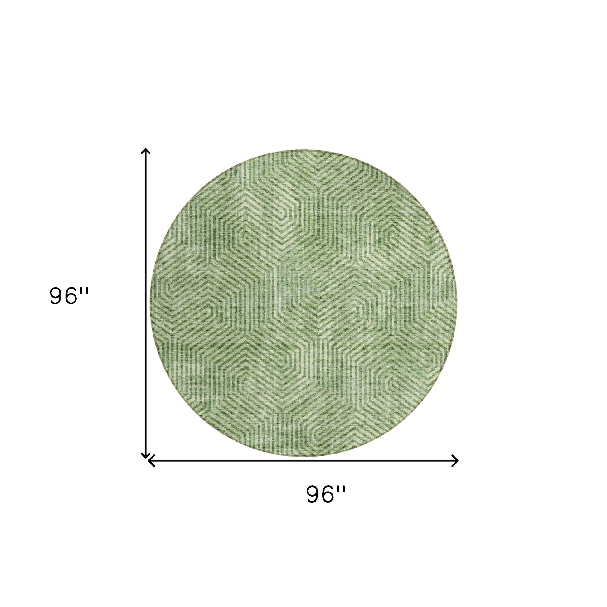 Tabselect Home Line 8' Green And Light Green Round Geometric Washable Indoor Outdoor Area Rug