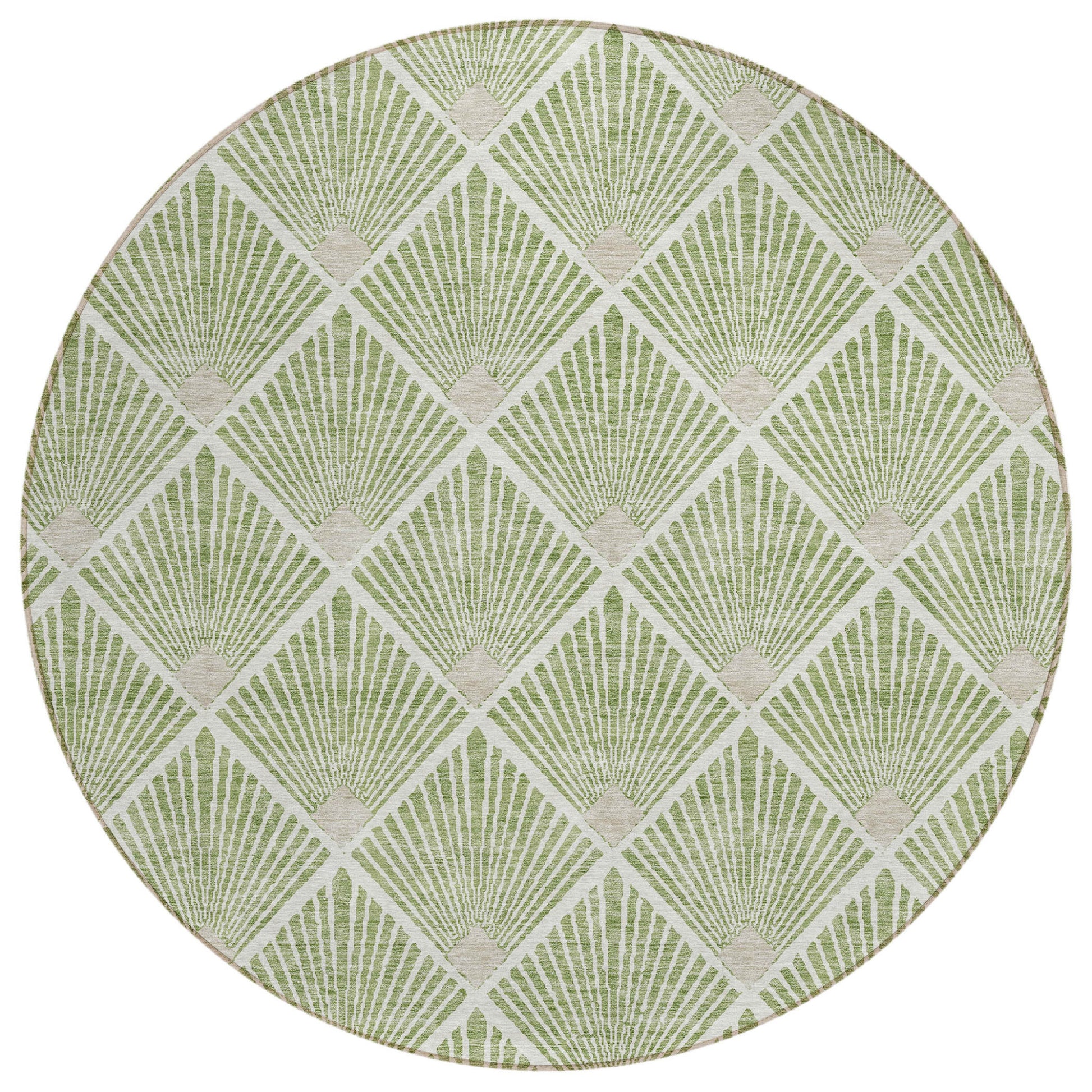 Tabselect Home Line 8' Green Beige And Ivory Round Geometric Washable Indoor Outdoor Area Rug