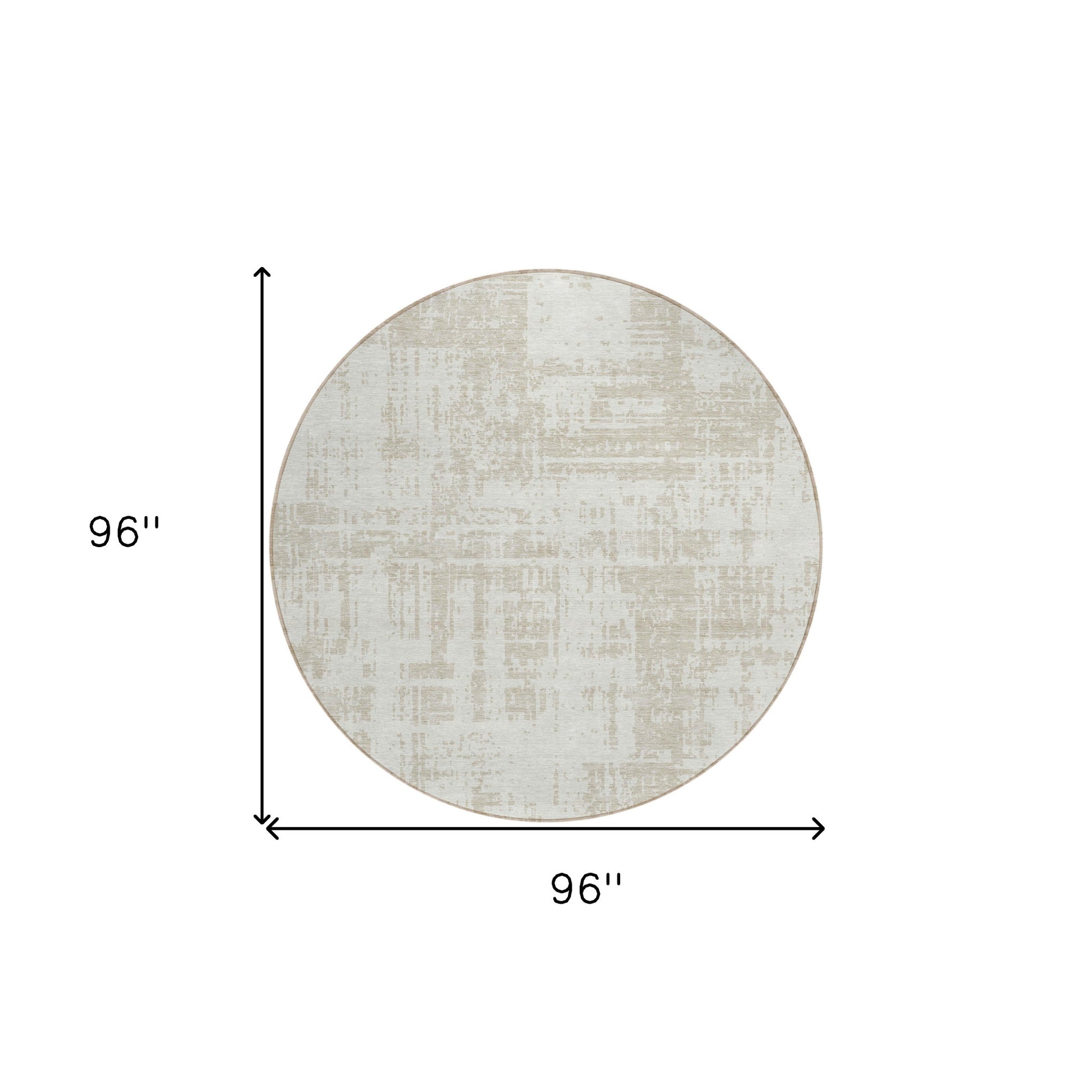 Tabselect Home Line 8' Ivory And Beige Round Abstract Washable Indoor Outdoor Area Rug