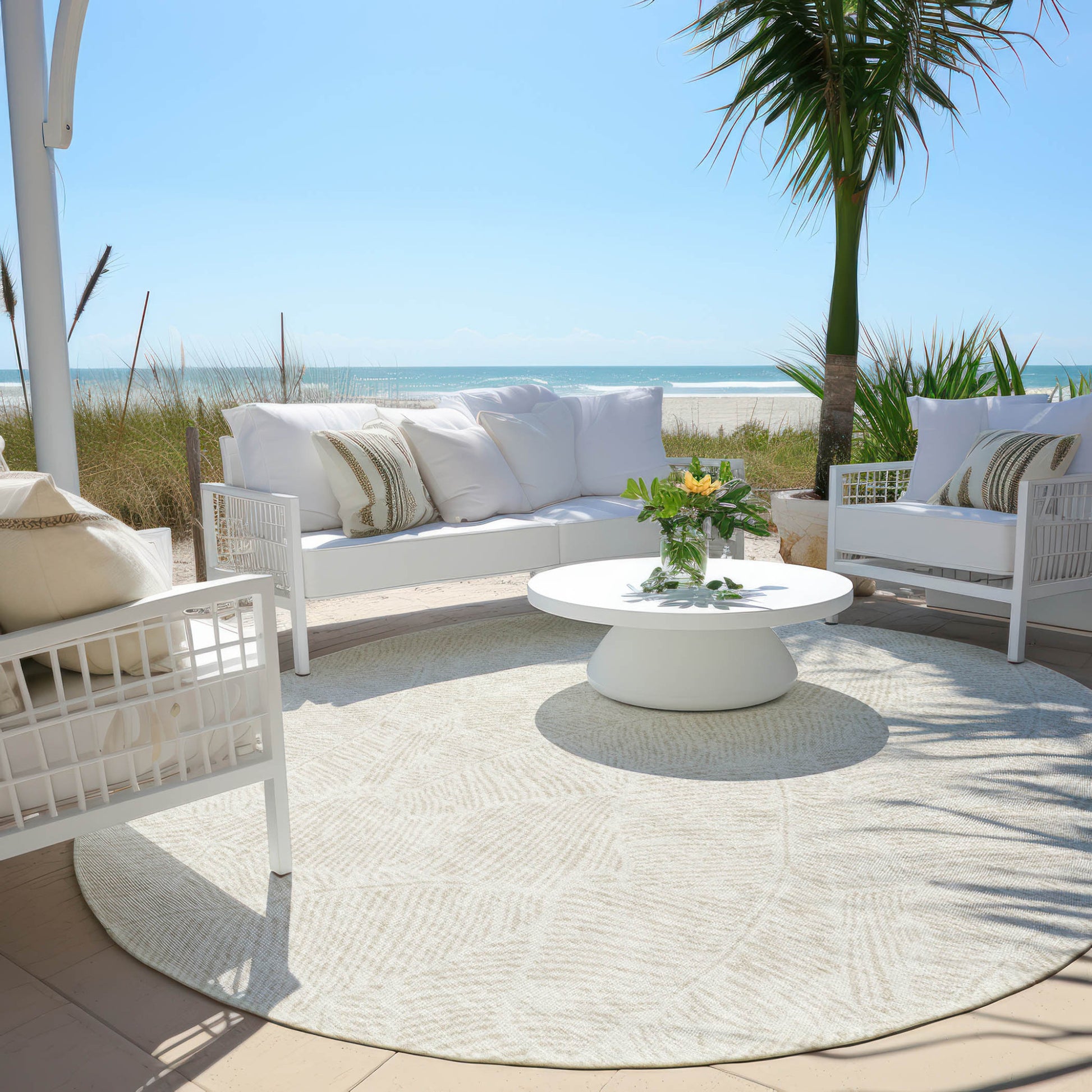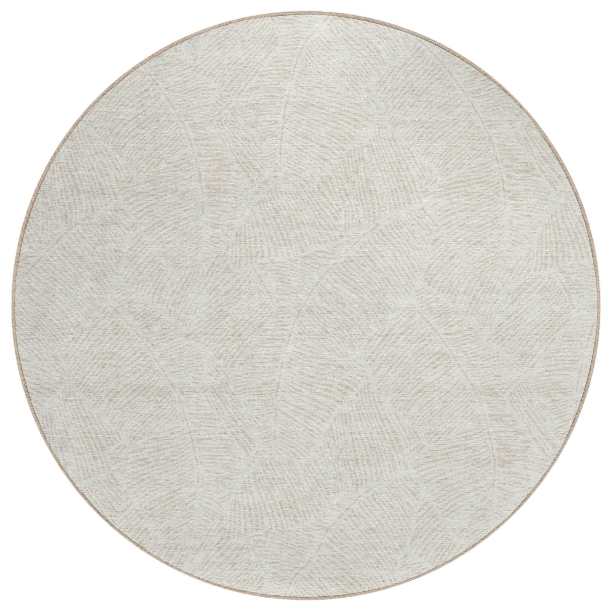Tabselect Home Line 8' Ivory And Beige Round Floral Washable Indoor Outdoor Area Rug