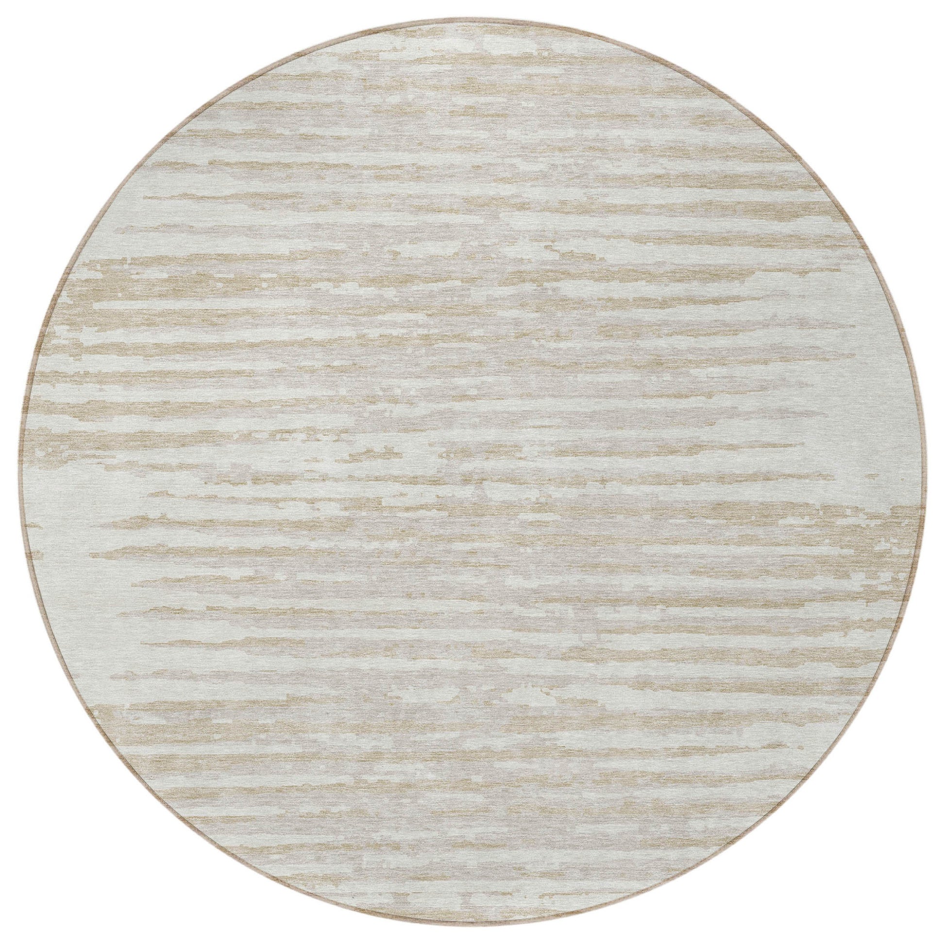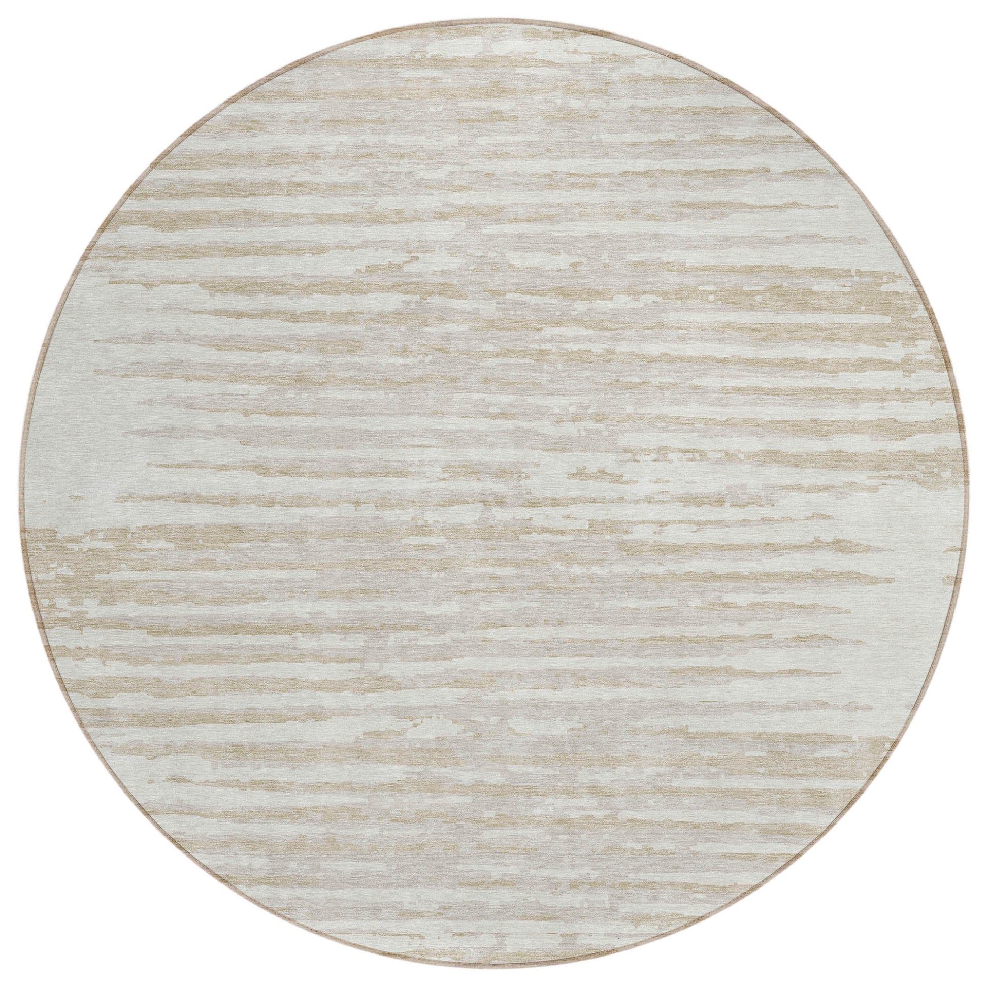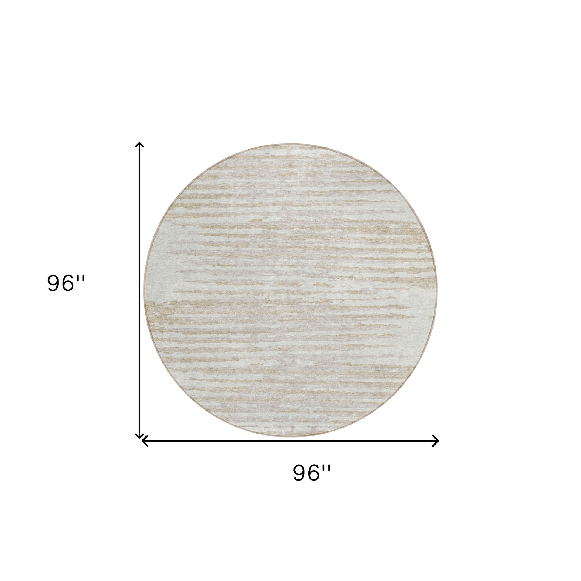 Tabselect Home Line 8' Ivory And Beige Round Striped Washable Indoor Outdoor Area Rug